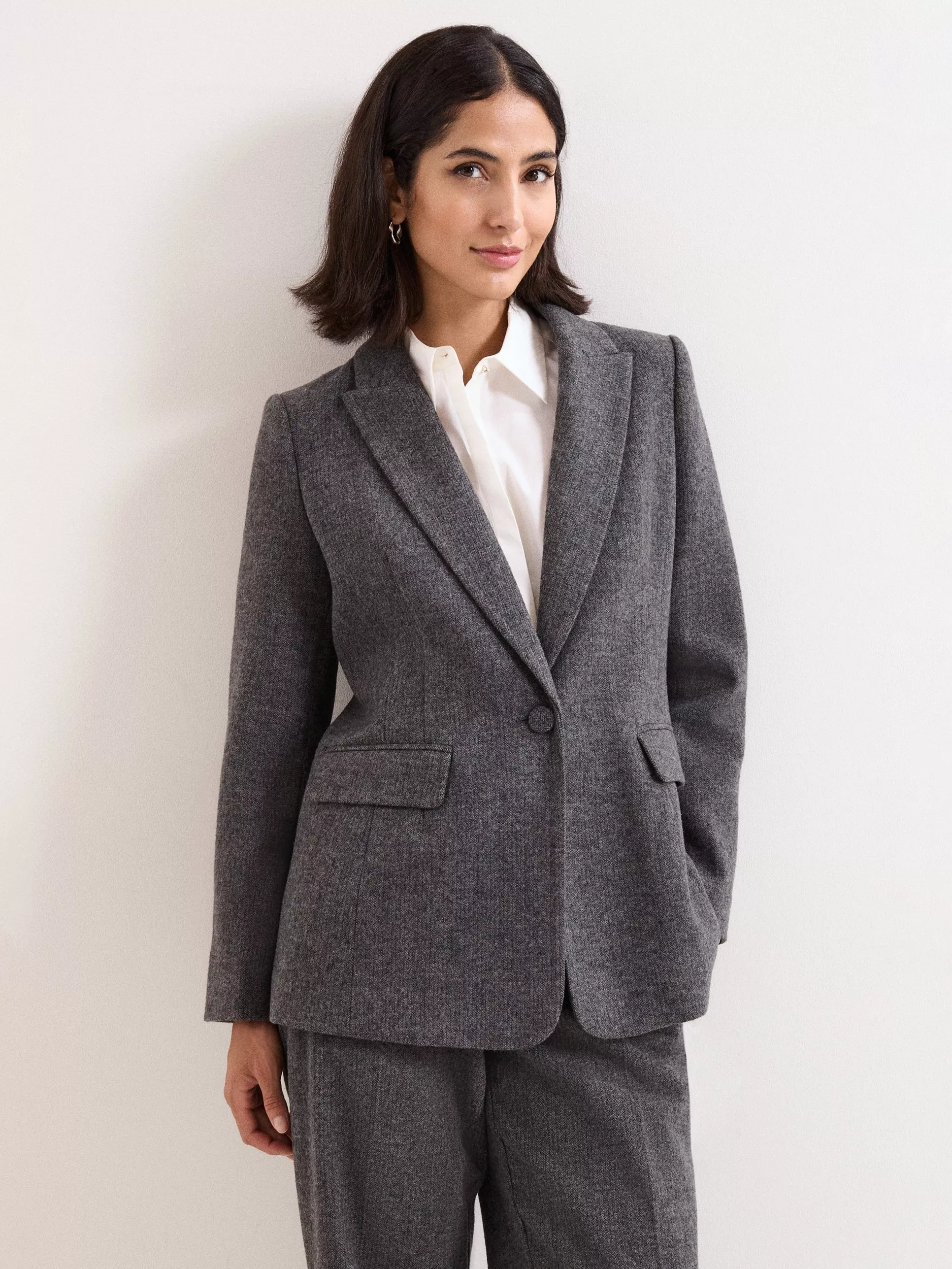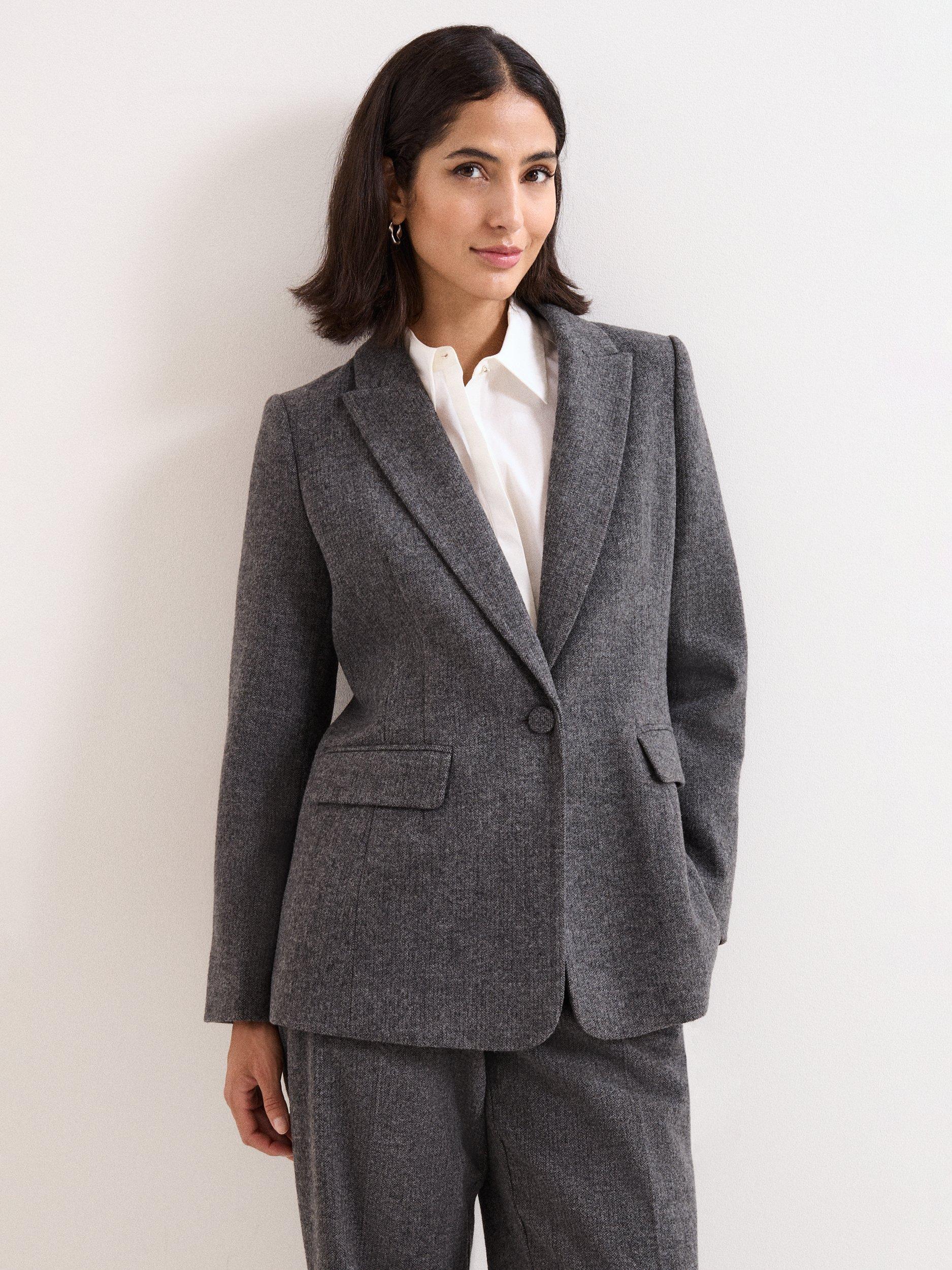 The definition of contemporary tailoring, this classic suit jacket is a wardrobe essential for the modern woman. Designed in a single-breasted silhouette with notched lapels and flap pockets.