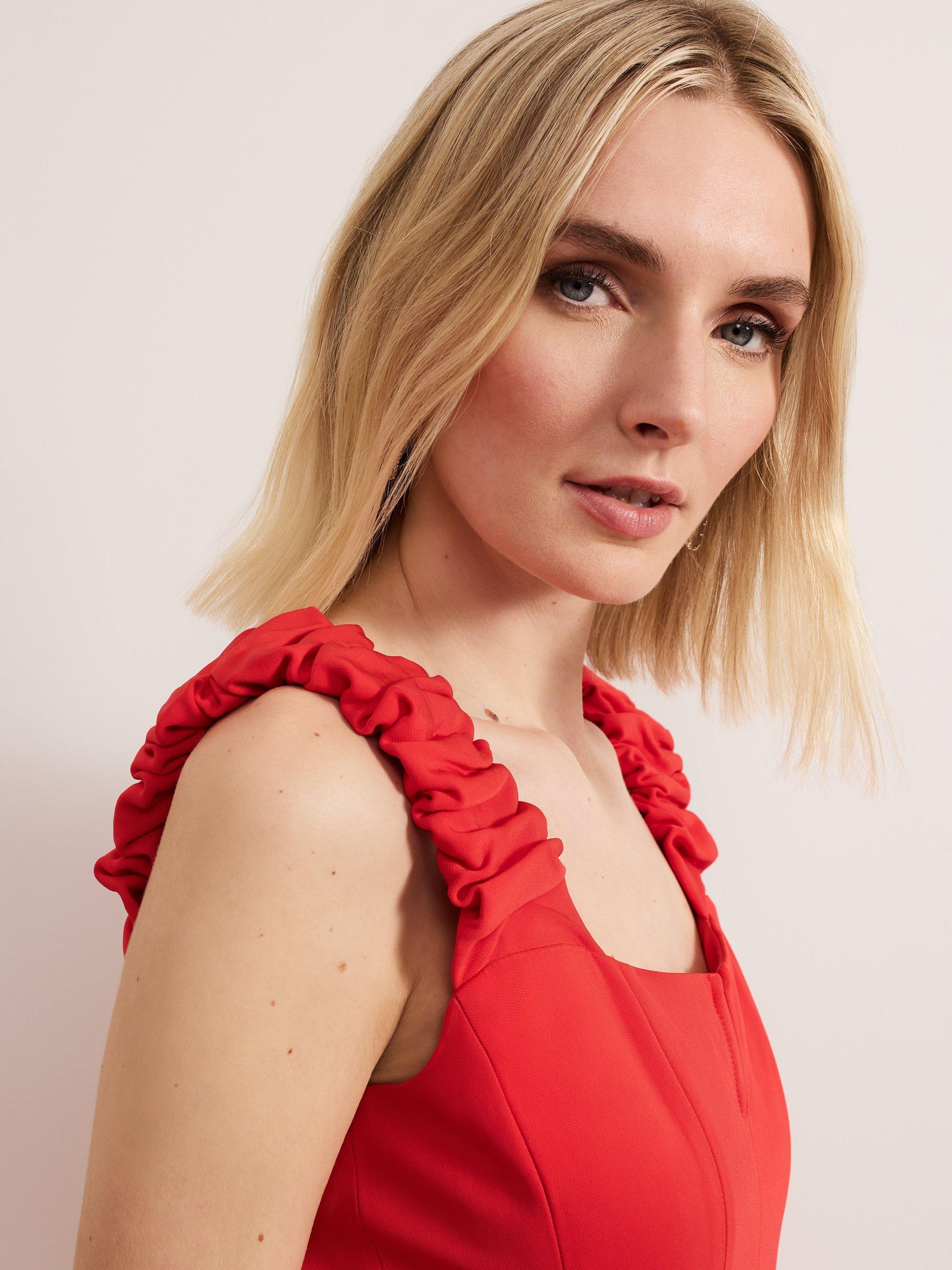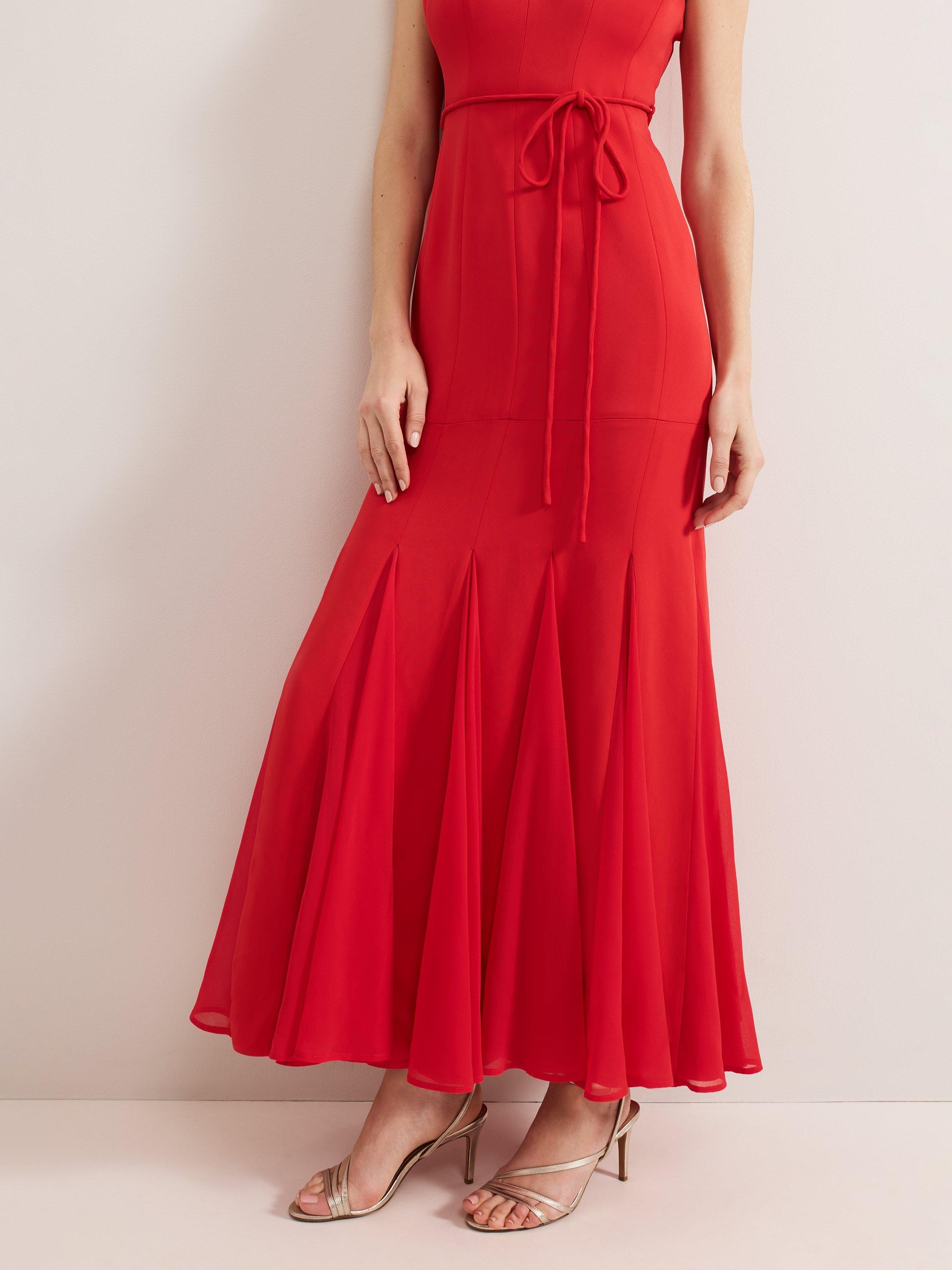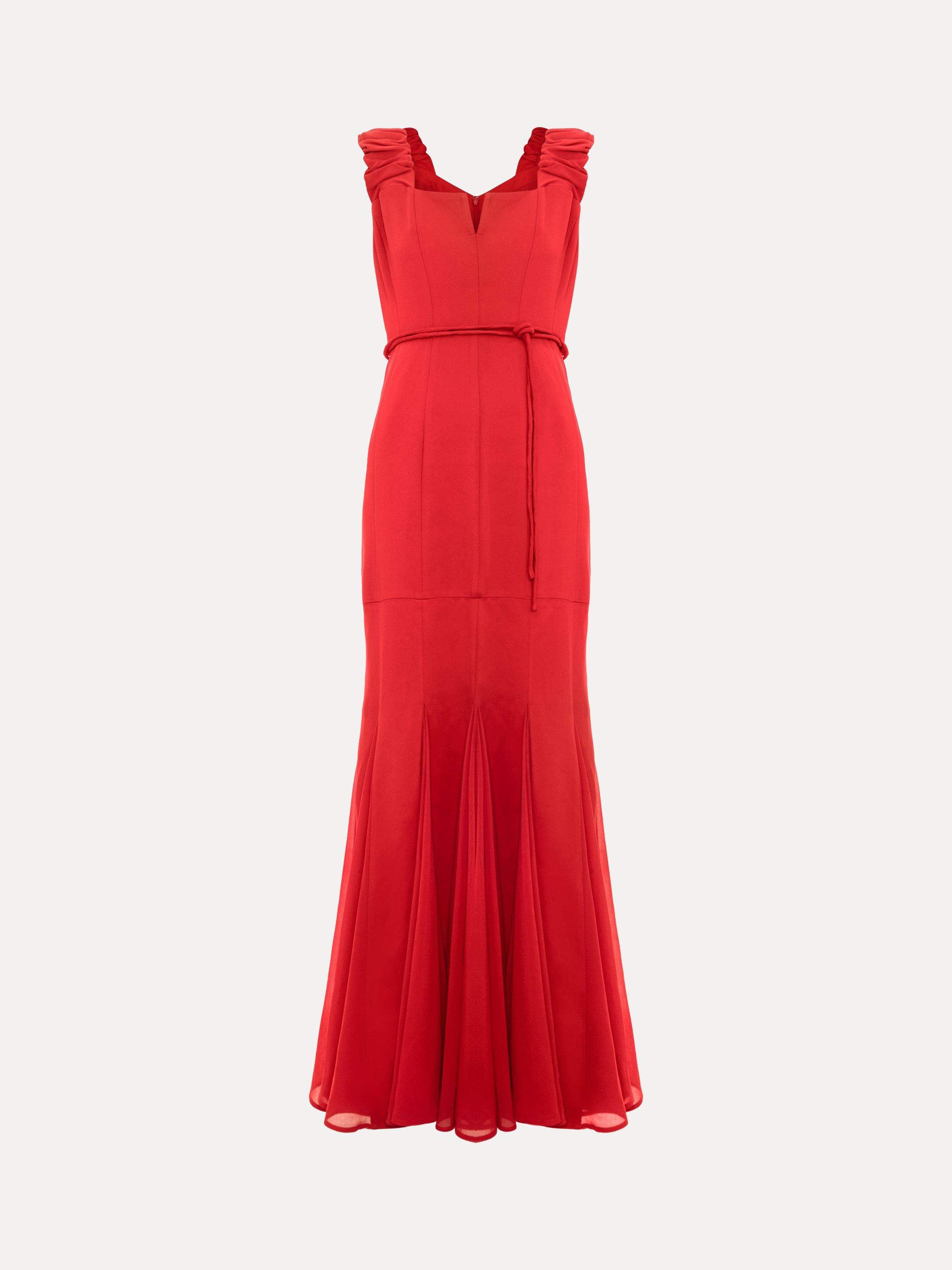 In a flattering fit that accentuates the waist, this floor-length dress from Phase Eight is blended with viscose for a weightless feel. With a square neckline, ruffle detailed wide straps and box pleats through the hem, this sleeveless style is minimally detailed for endless wearability whatever the occasion.