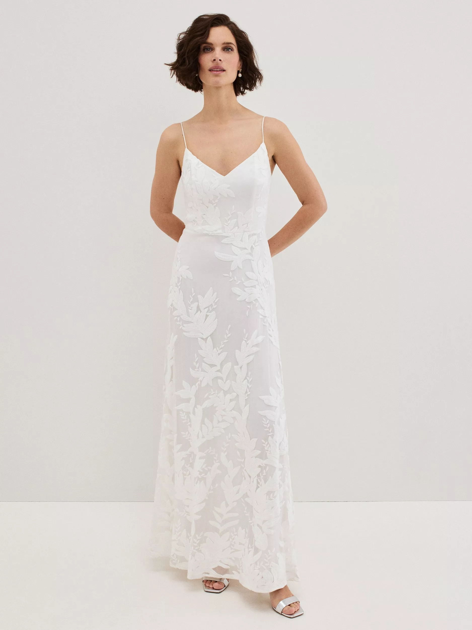 The Arabella wedding dress is a true showstopper. Crafted with luxurious silk, this dress features a feminine V-neckline and delicate straps. Finished with embroidered floral detailing for a vintage inspired effect it is an understated yet glamorous bridal choice.