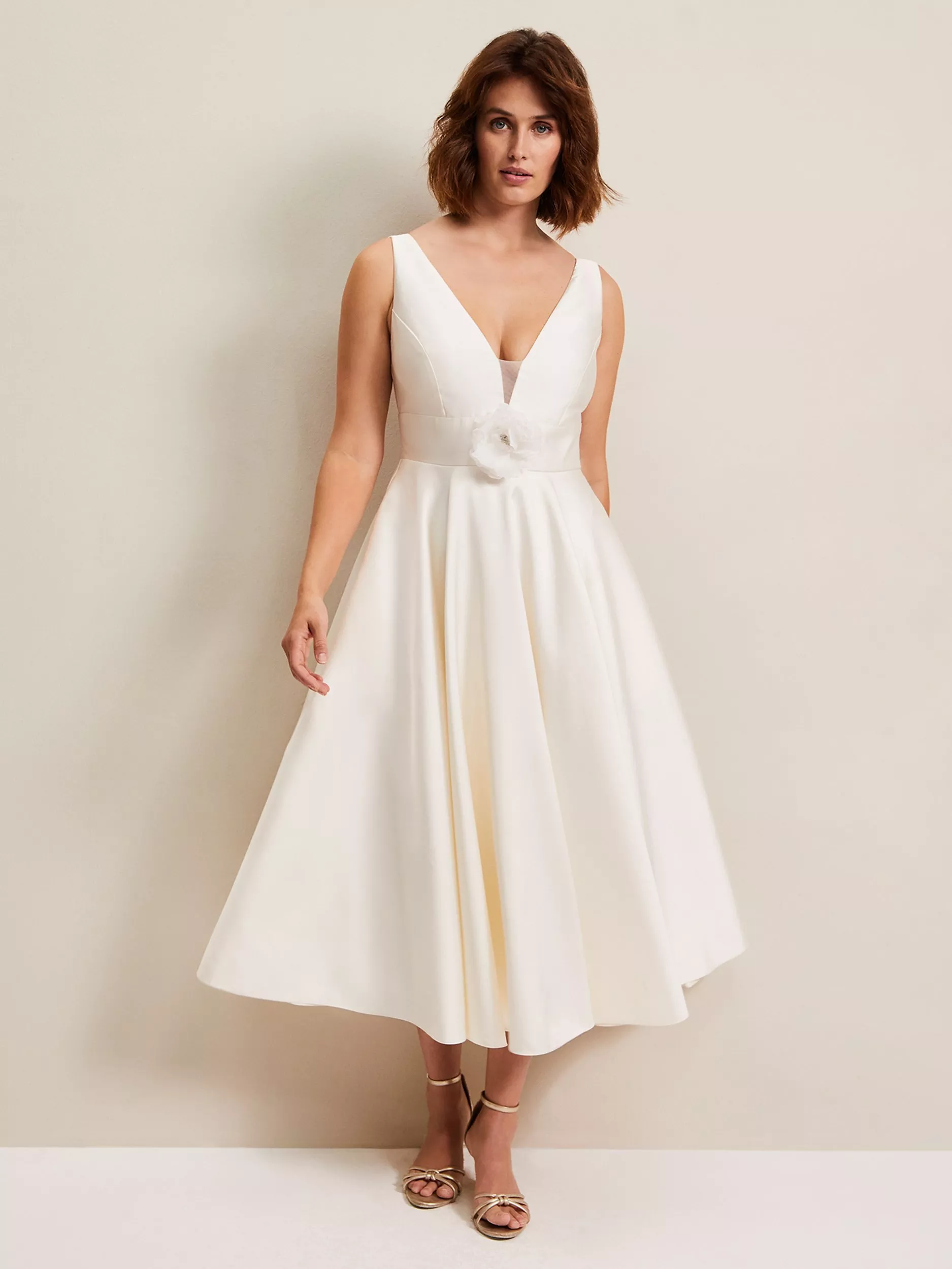 Constructed with a nipped in waist and flared hem, this mid-length dress from Phase Eight is made using a synthetic fabric. Fashioned with a deep plunging neckline, this sleeveless style needs no prints or accents to hold the spotlight.