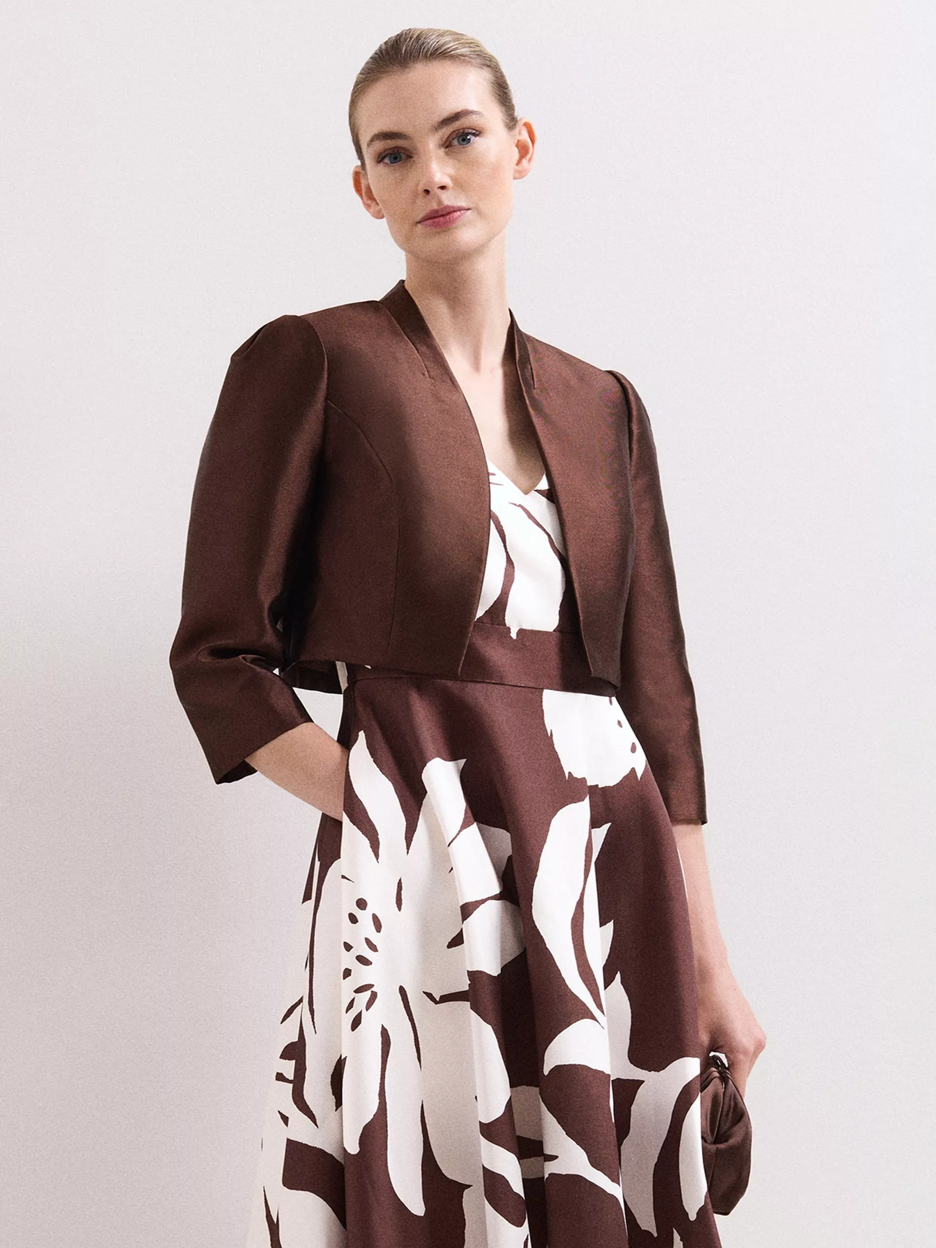 A satin twill jacket by Phase Eight - the perfect finishing touch to your occasion looks. The open neck and three quarter sleeves add a smart touch, making it a go-to layer for transforming your outfit with ease and comfort.