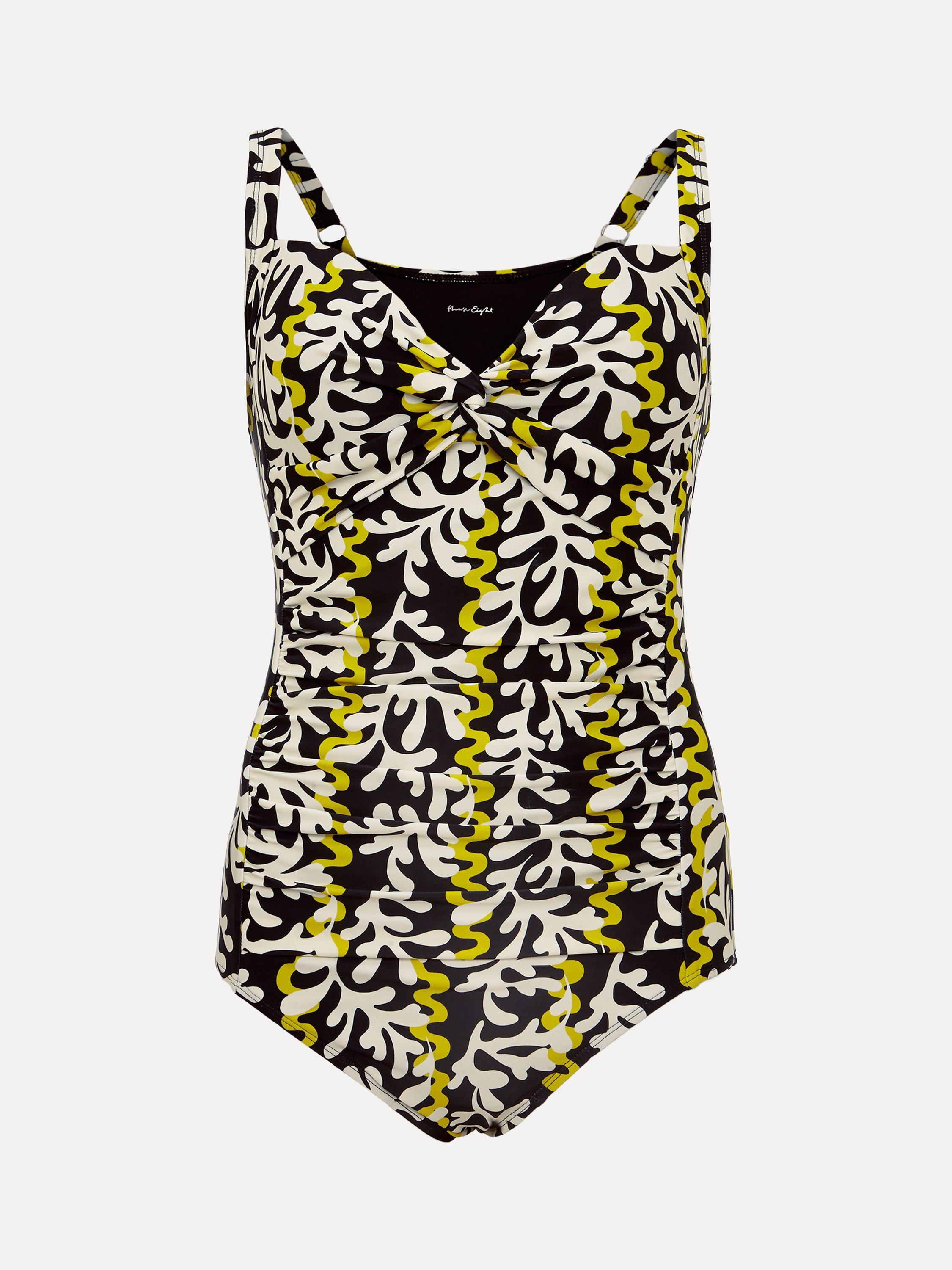 Cloaked in an abstract print that really shakes things up, this swimming costume from Phase Eight is shaped with a sweetheart neckline, moulded cups and square back.