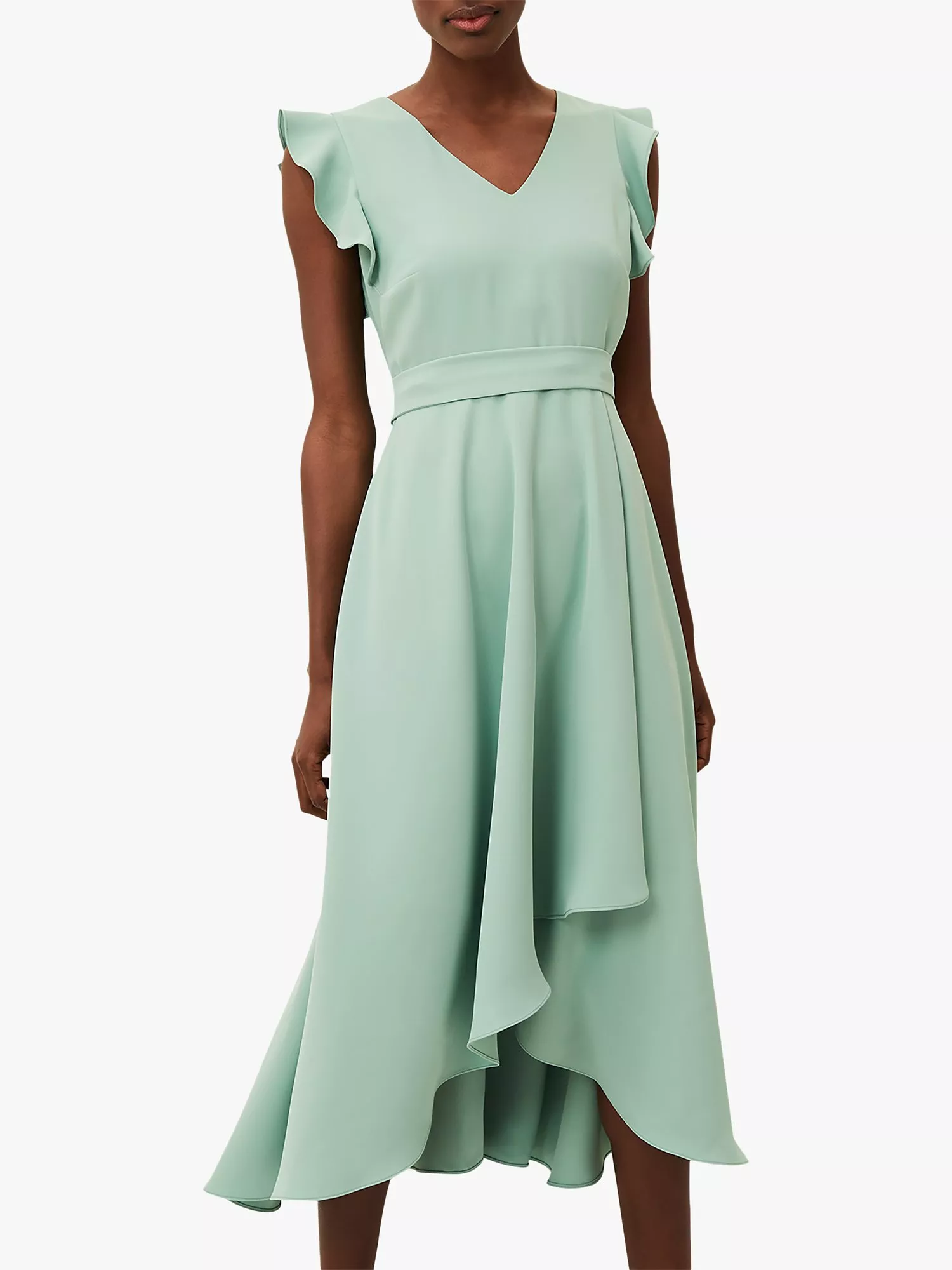 Cinching your shape with an empire waistline and dipped hem, this knee-length dress from Phase Eight complements patterned accessories with its plain design.