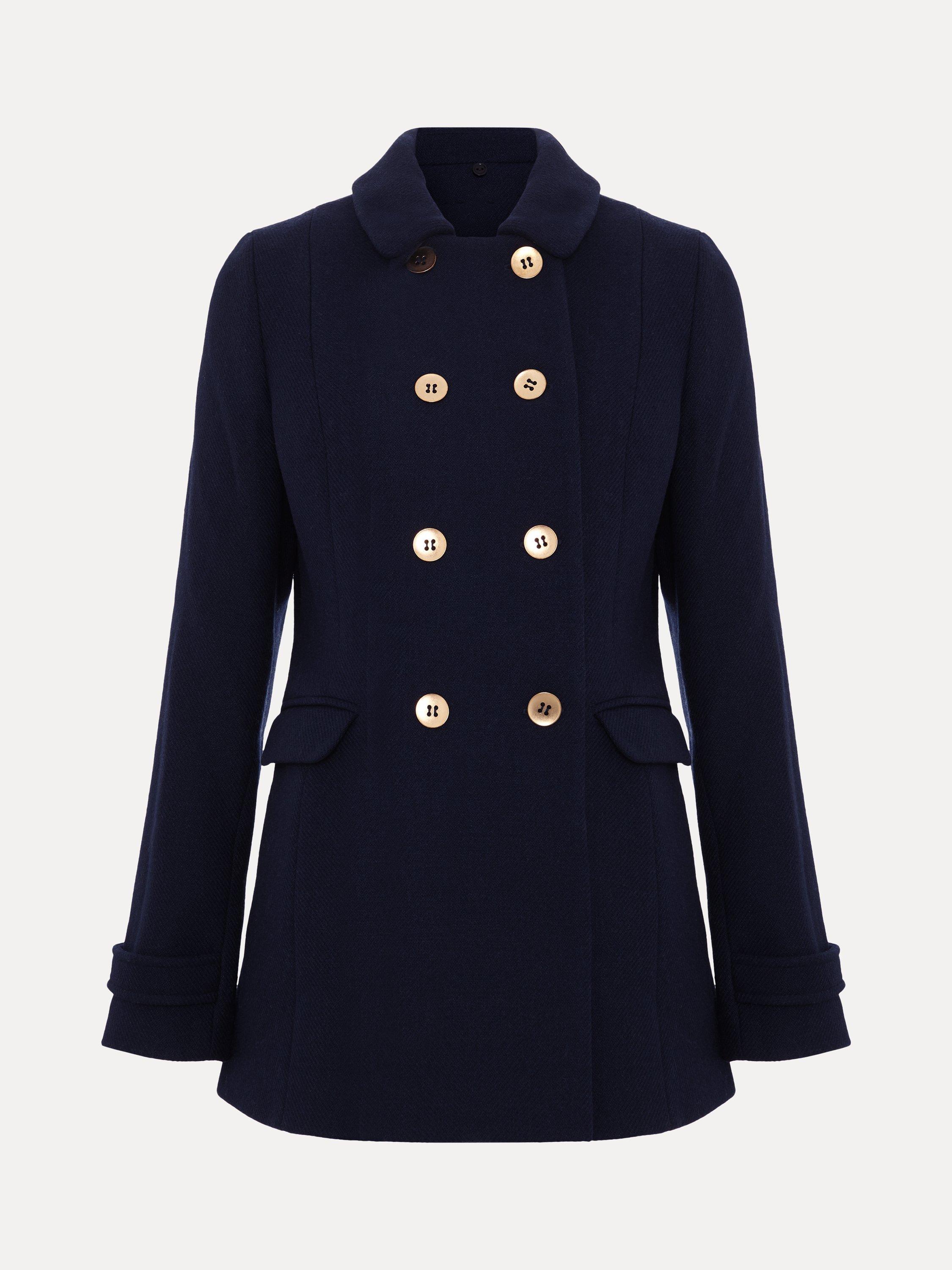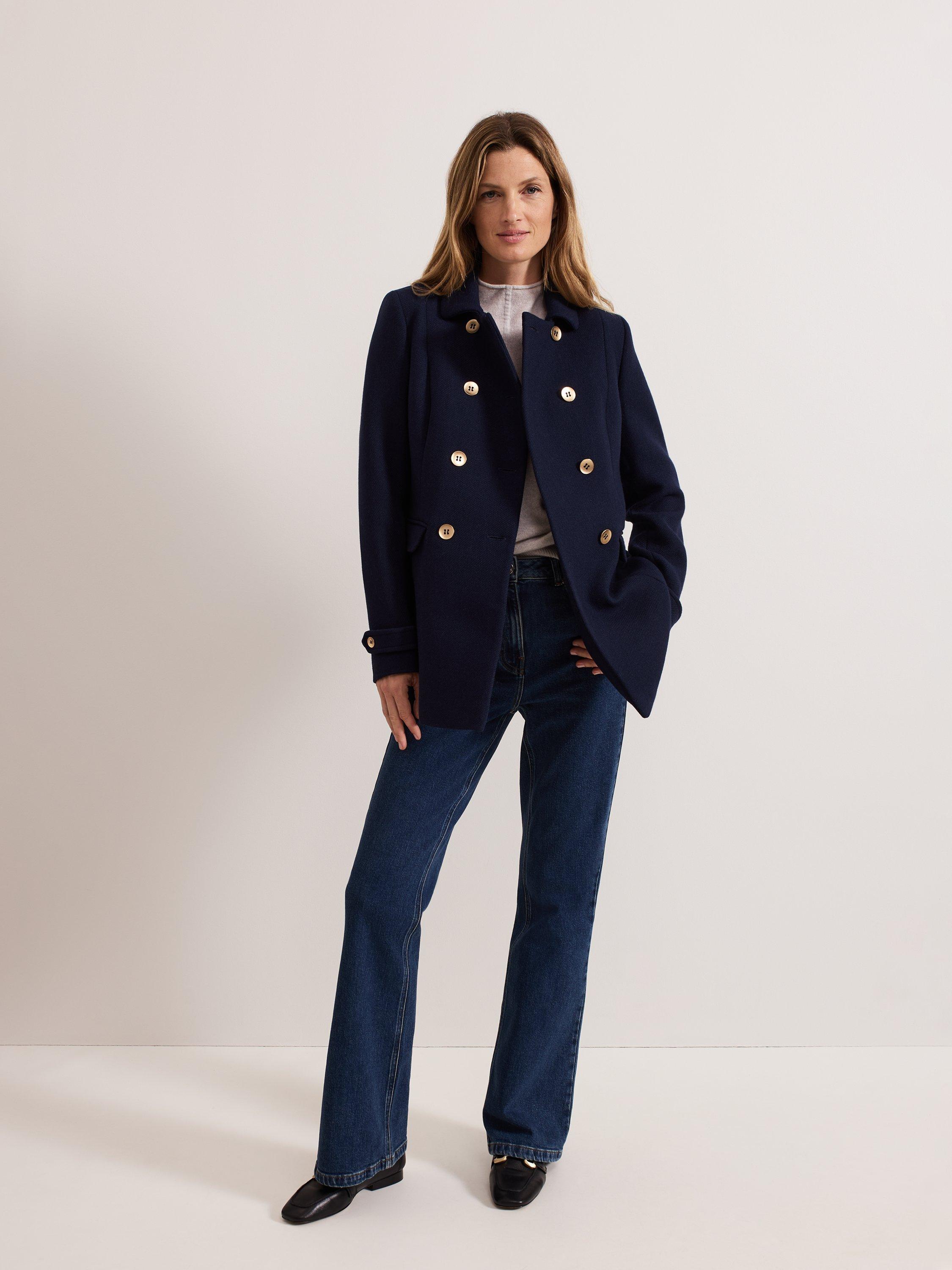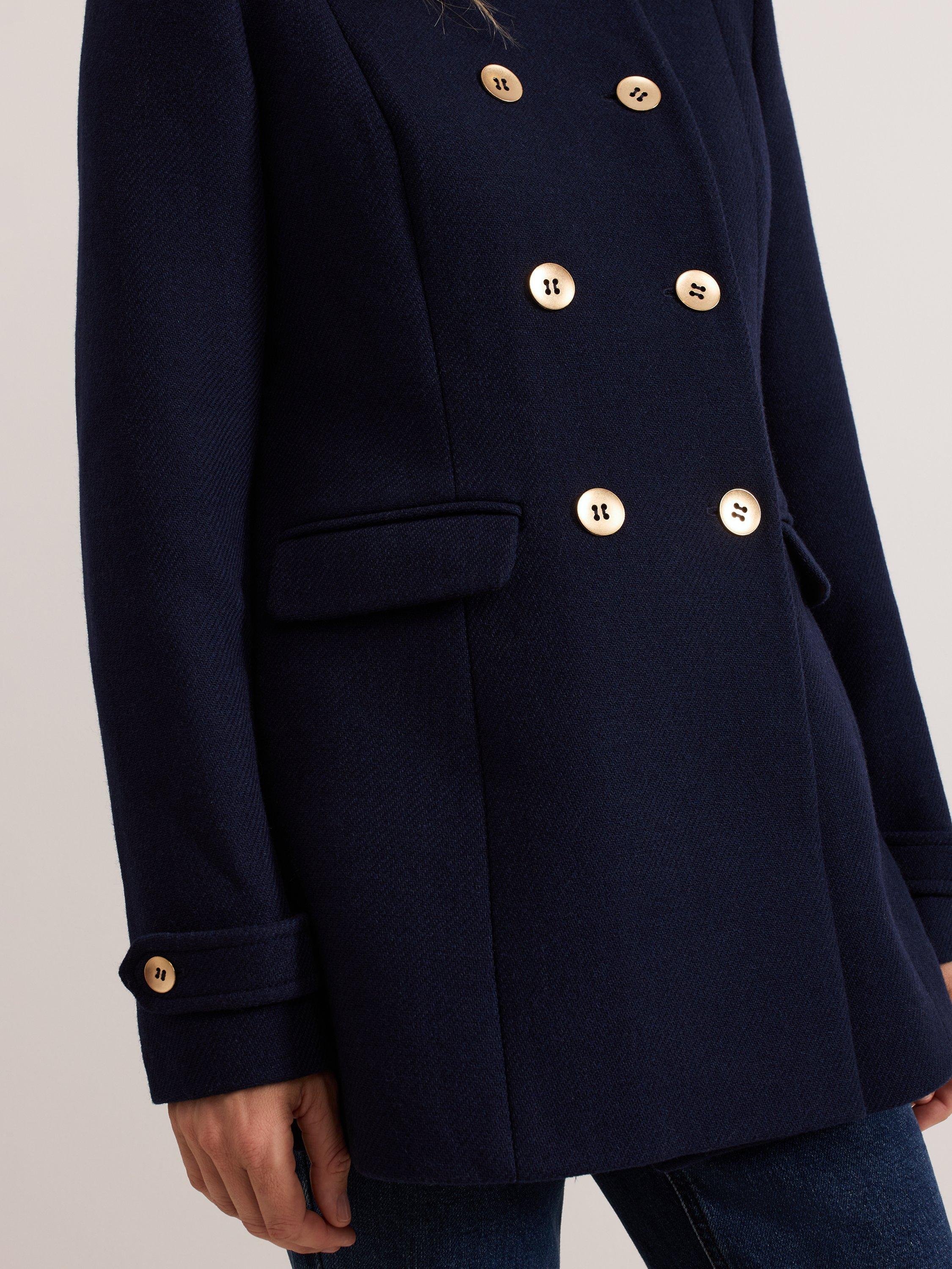 The Aurelie peacoat is a classic style that is always in. The coat is designed so it's slim through the waist to compliment your silhouette and features double breasted gold button detailing, a smart collar and is finished with flap pockets.