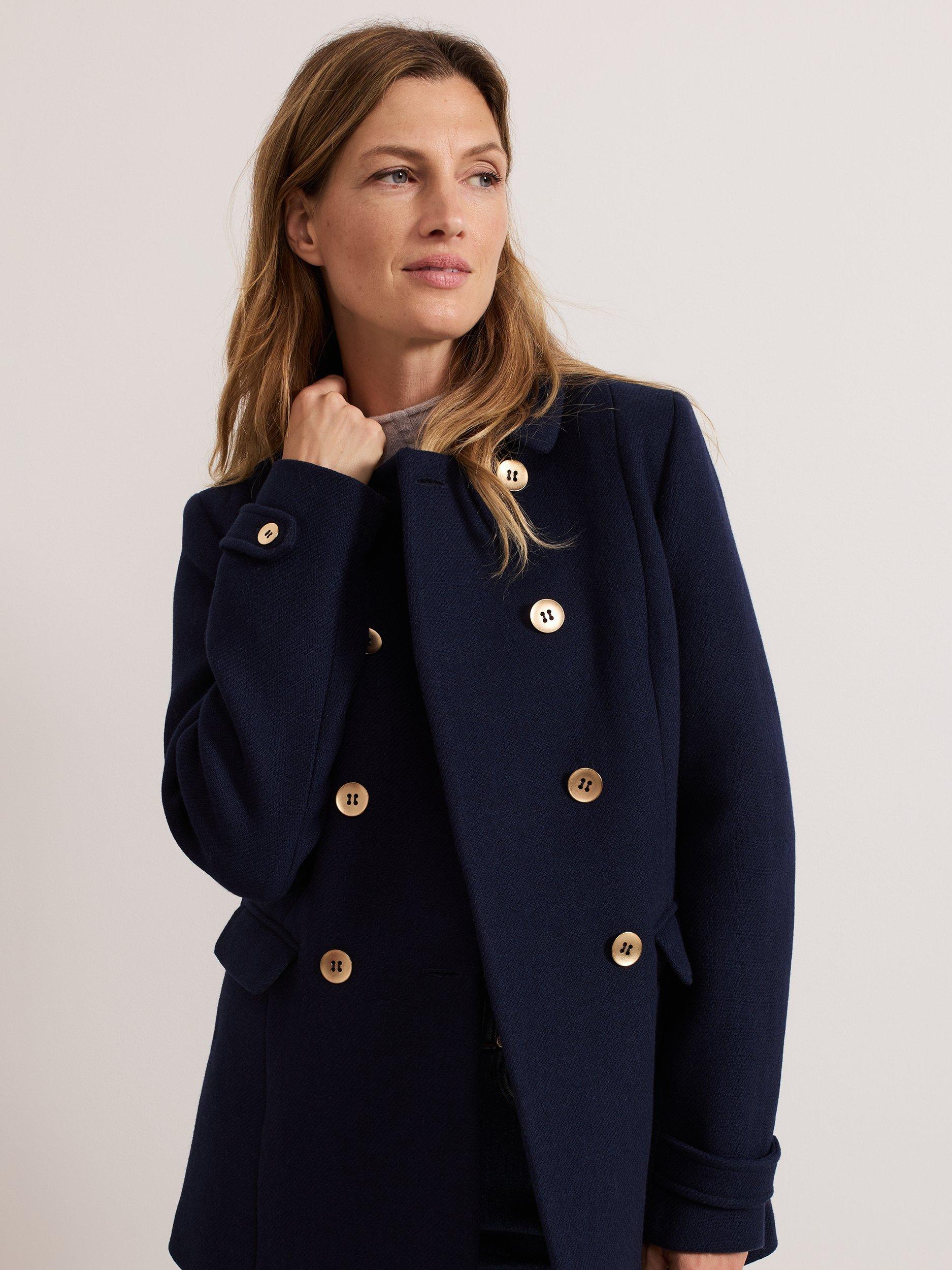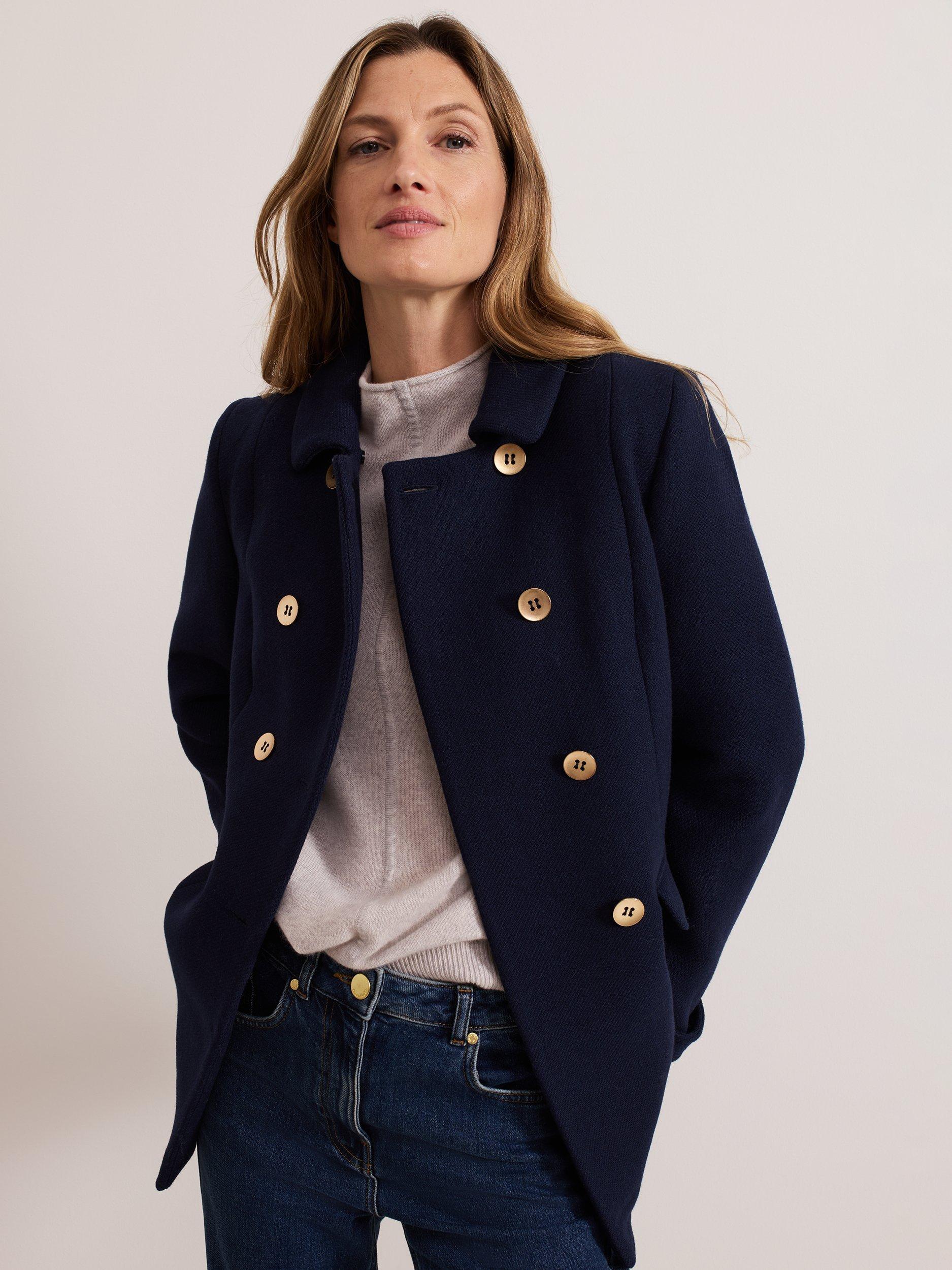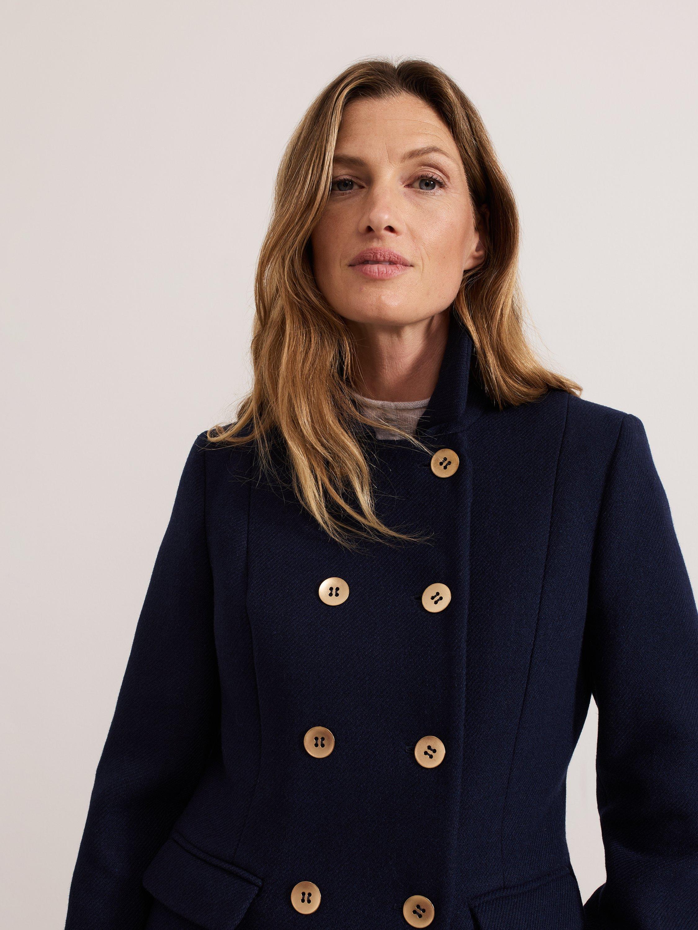 The Aurelie peacoat is a classic style that is always in. The coat is designed so it's slim through the waist to compliment your silhouette and features double breasted gold button detailing, a smart collar and is finished with flap pockets.