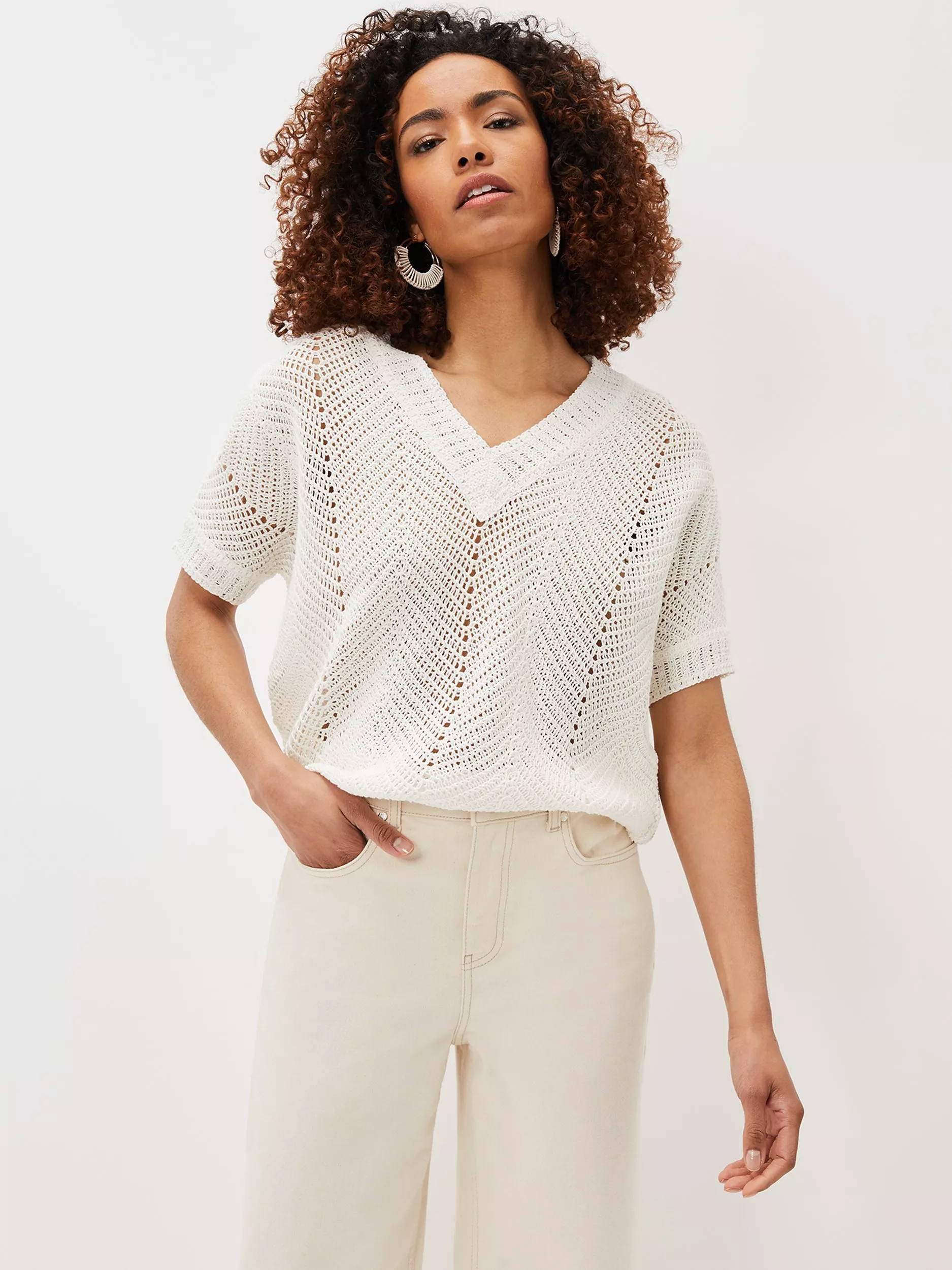 Featuring a traditional v-neckline, this jumper by Phase Eight has a crochet textured design for tactile appeal and is cut from a cotton blend for breathable wear.