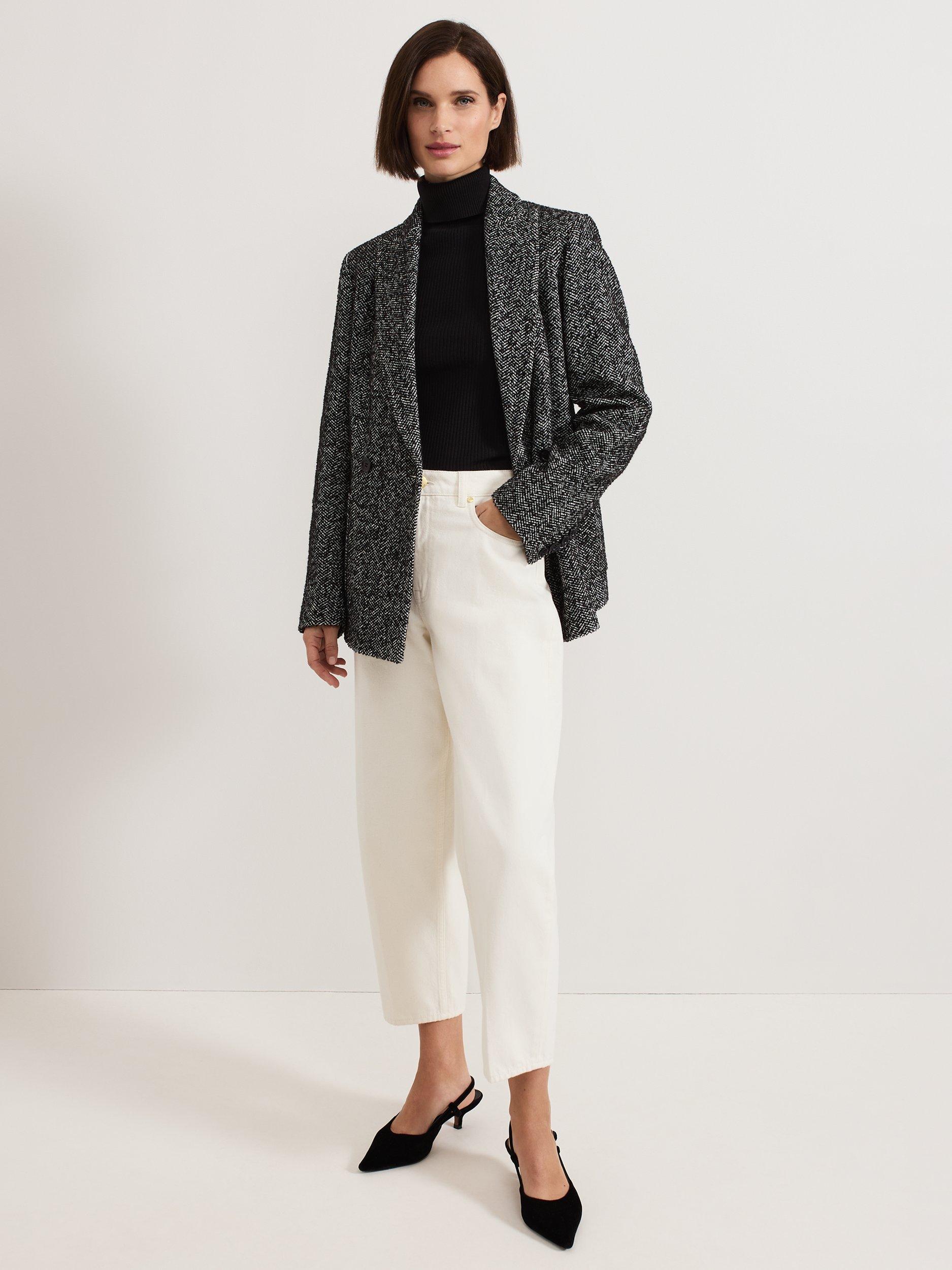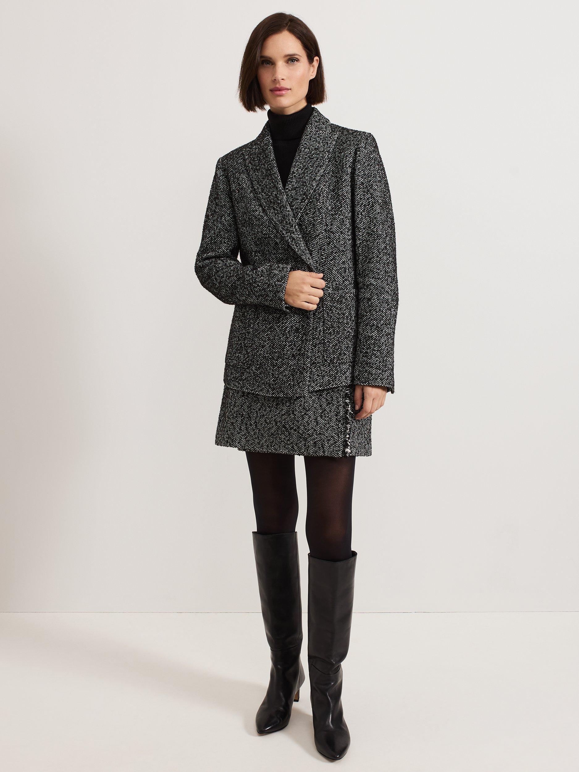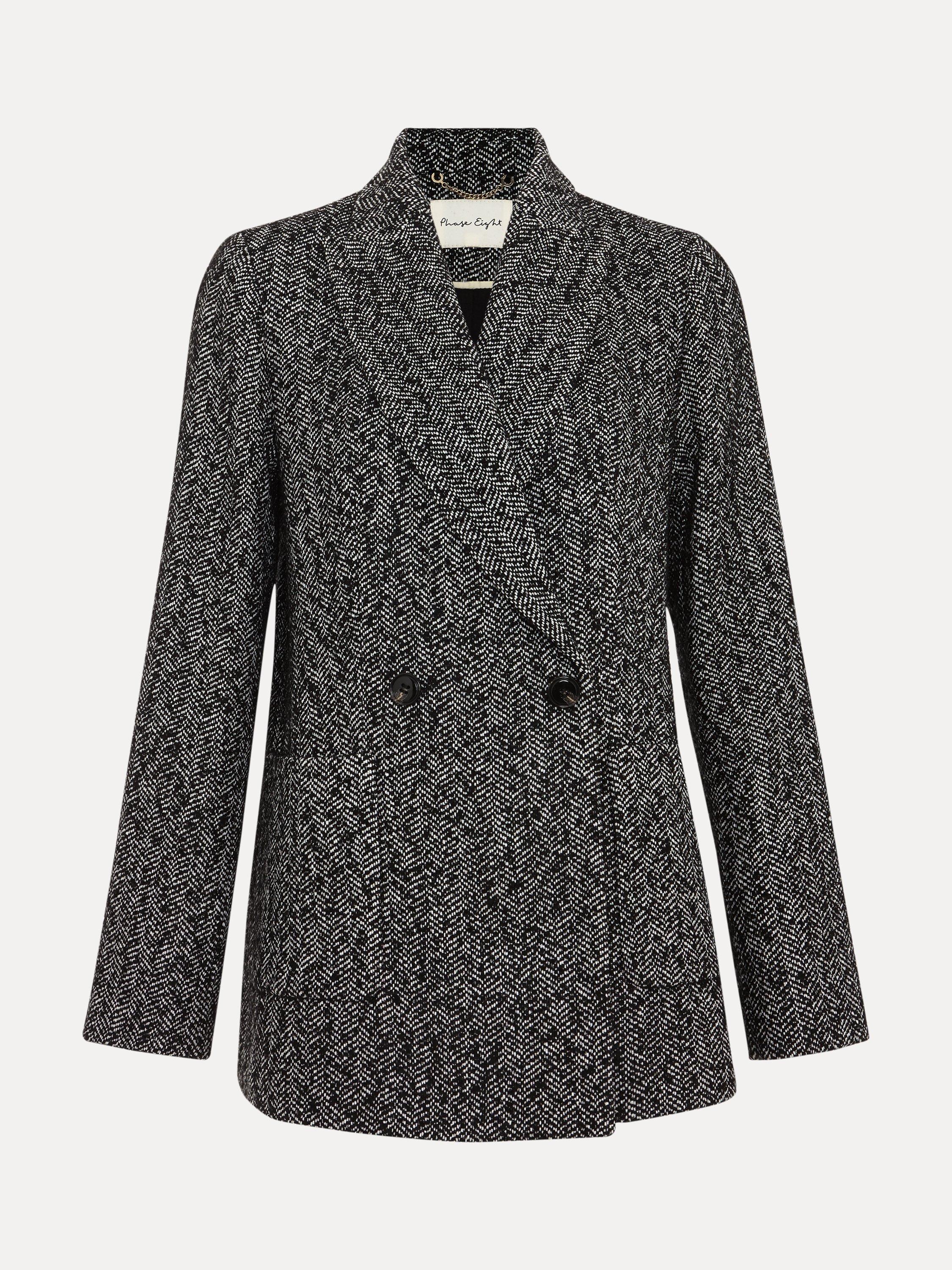 A smart outerwear piece that will pull any look together, this double-breasted blazer from Phase Eight boasts a textured herringbone check print.