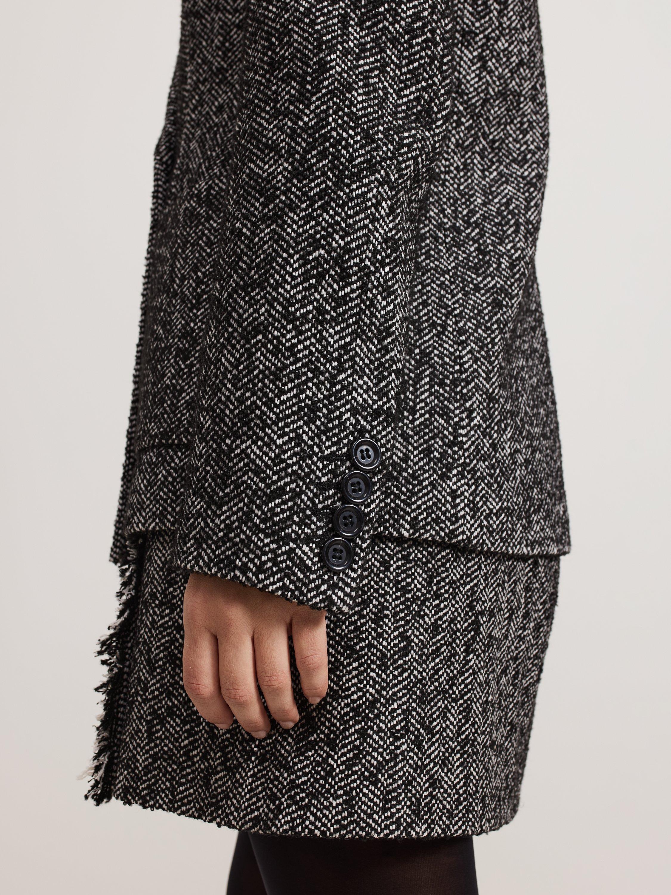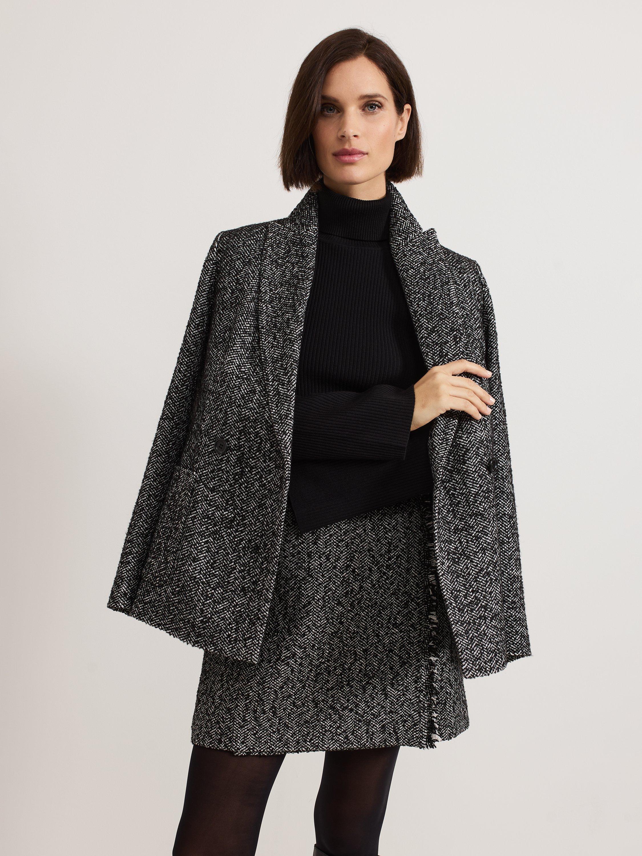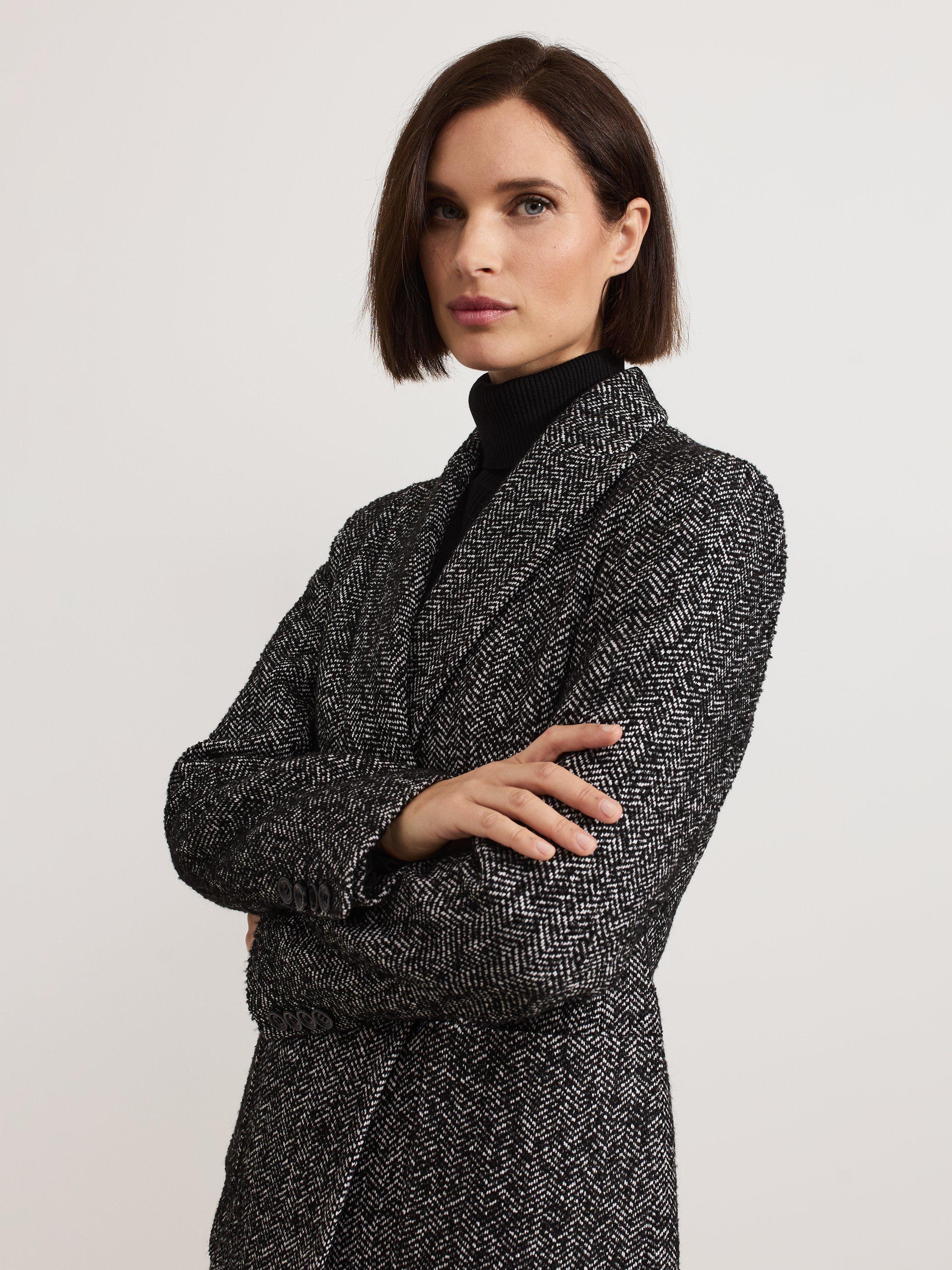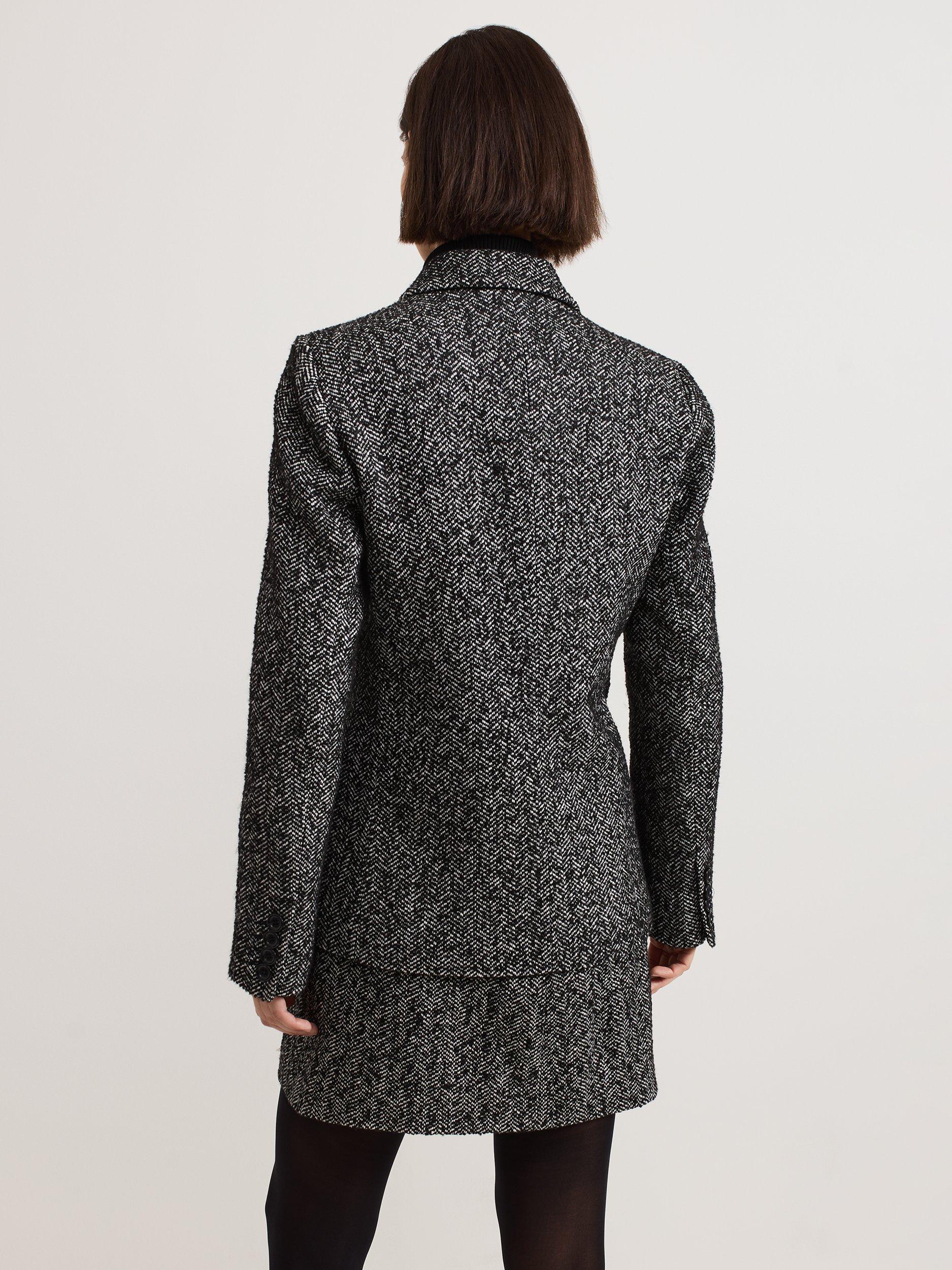 A smart outerwear piece that will pull any look together, this double-breasted blazer from Phase Eight boasts a textured herringbone check print.
