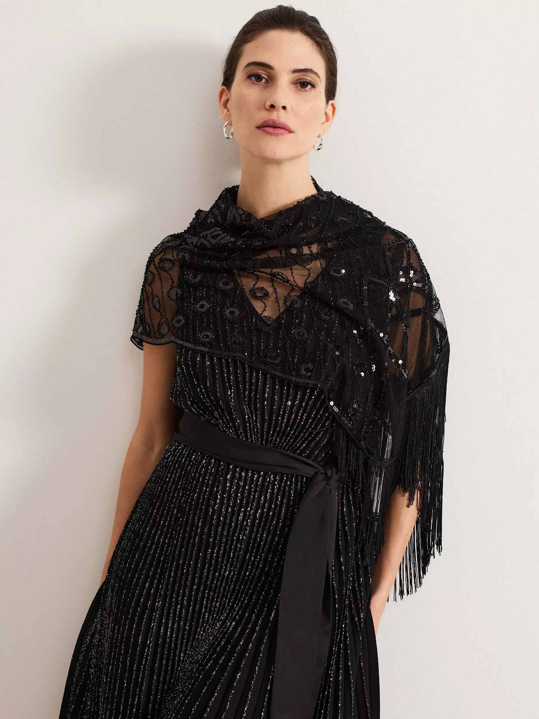 Finish all your favourite event looks with this beaded scarf. Featuring tassel detailing, this fully beaded scarf is the perfect timeless accessory to pair with any style.