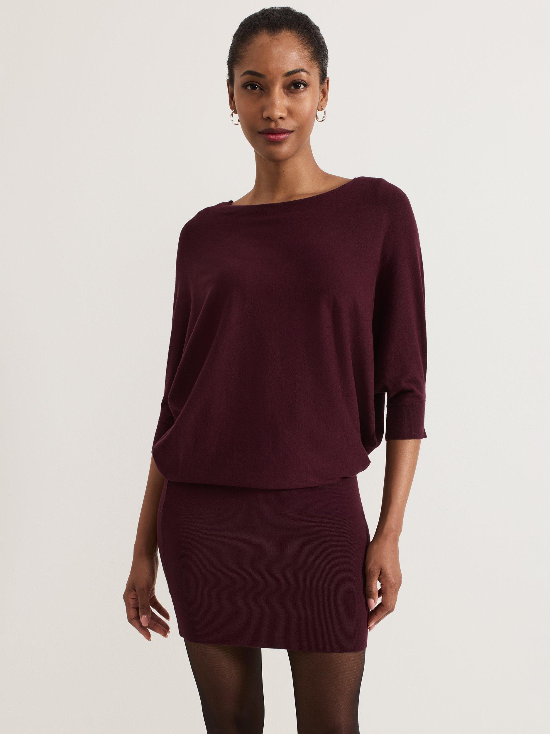 In a shape that skims close to your figure, this mini dress from Phase Eight is blended with viscose for a weightless feel. Defined with a conventional round neckline and batwing sleeves, this style is minimally detailed for endless wearability.
