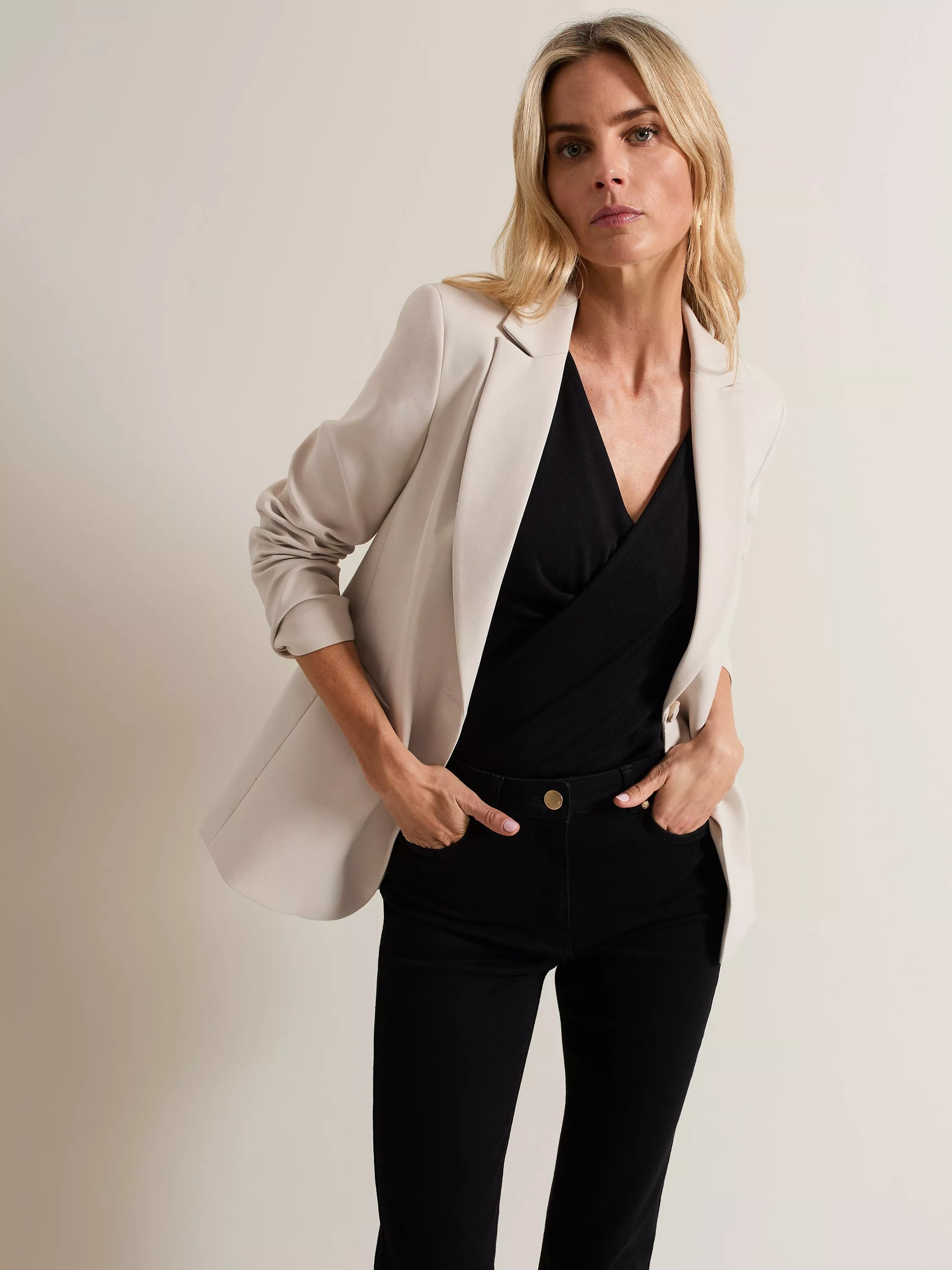 Carefully sketched to a sharp silhouette, this single-breasted blazer from Phase Eight provides instant smartness and comfortable wear with its smooth blended composition.