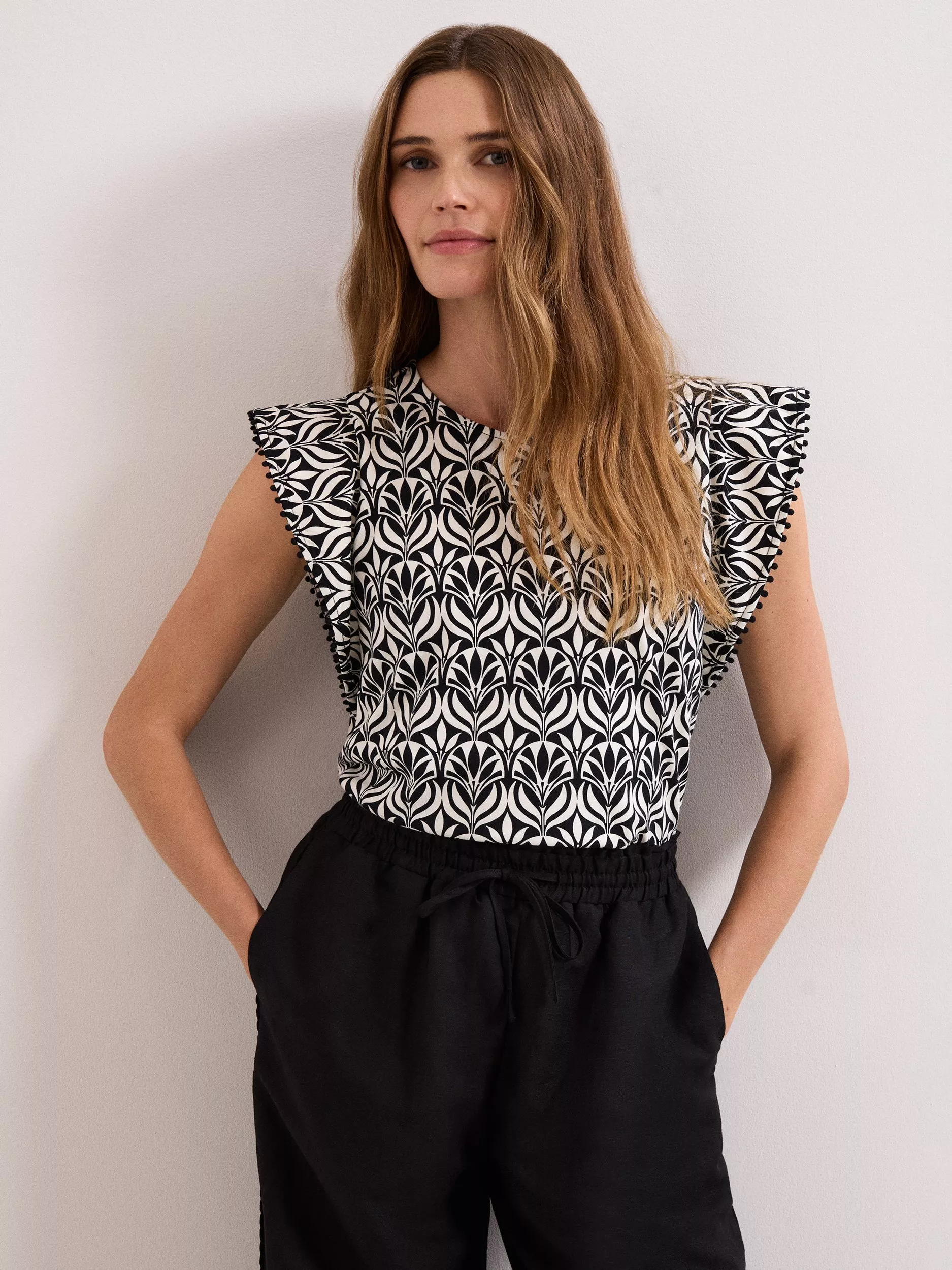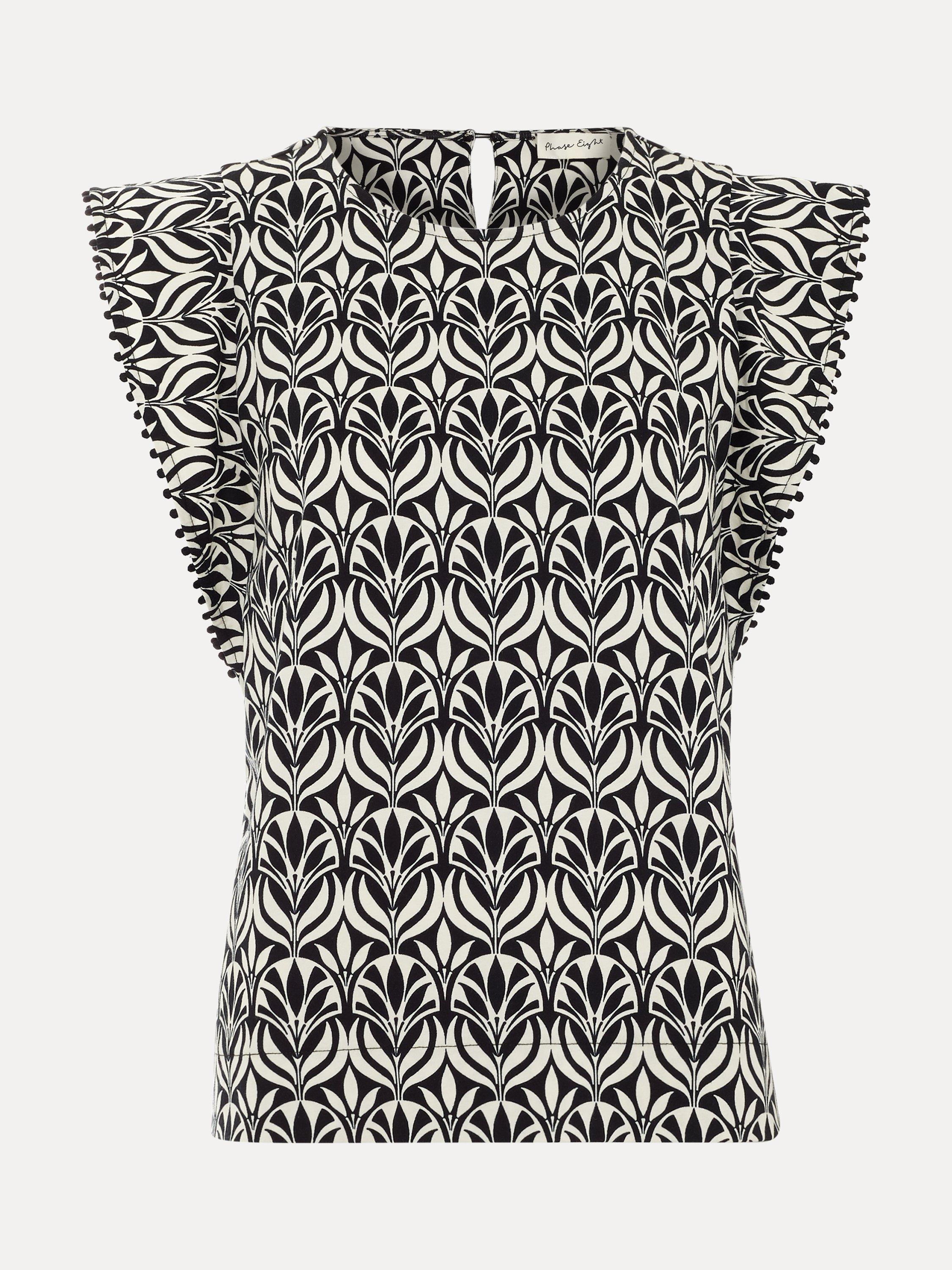 A blouse by Phase Eight, made from cotton for comfortable wear. Featuring a round neck and cap sleeves, it's designed with an eye-catching geometric pattern. A great piece for everyday.