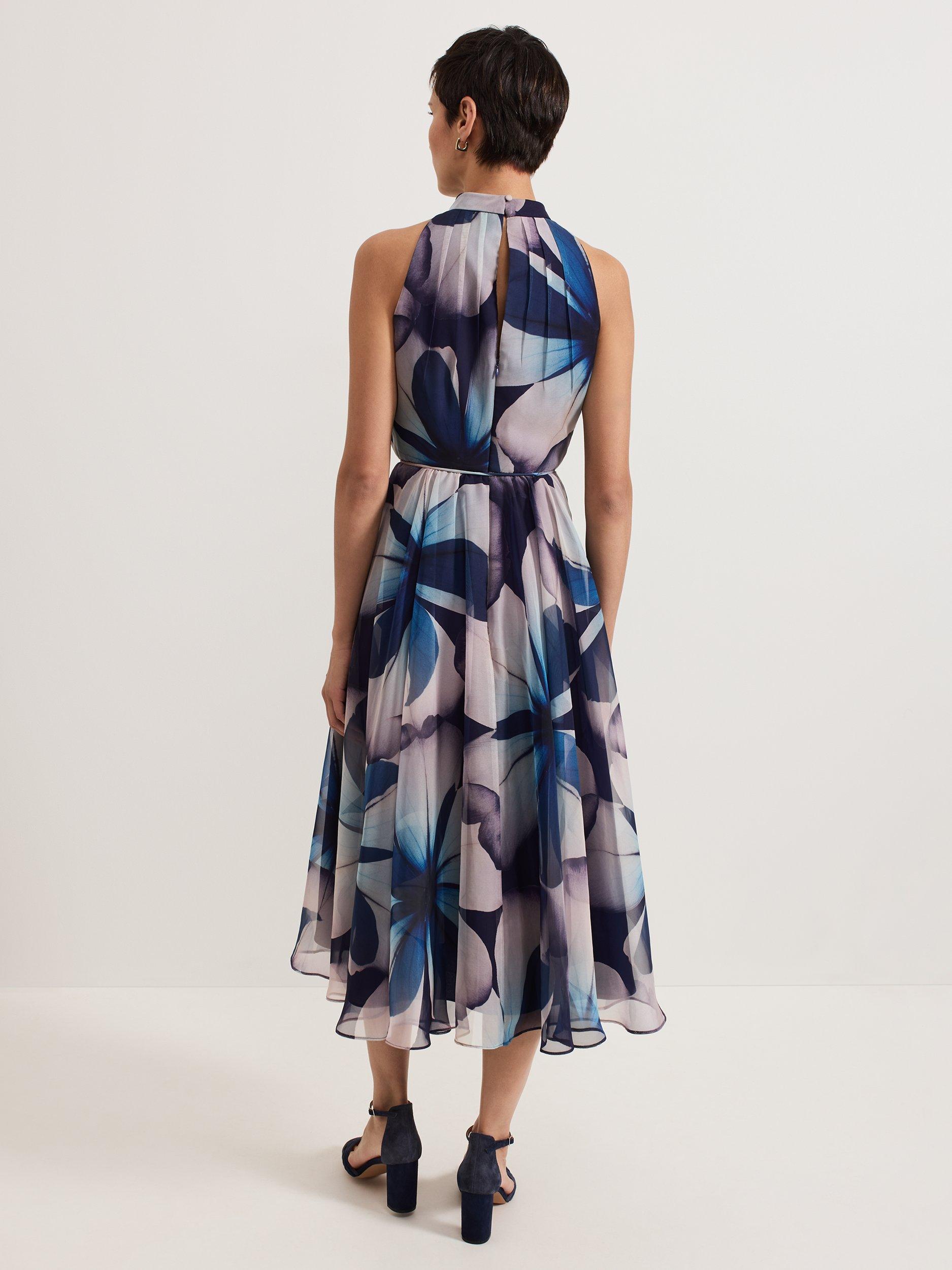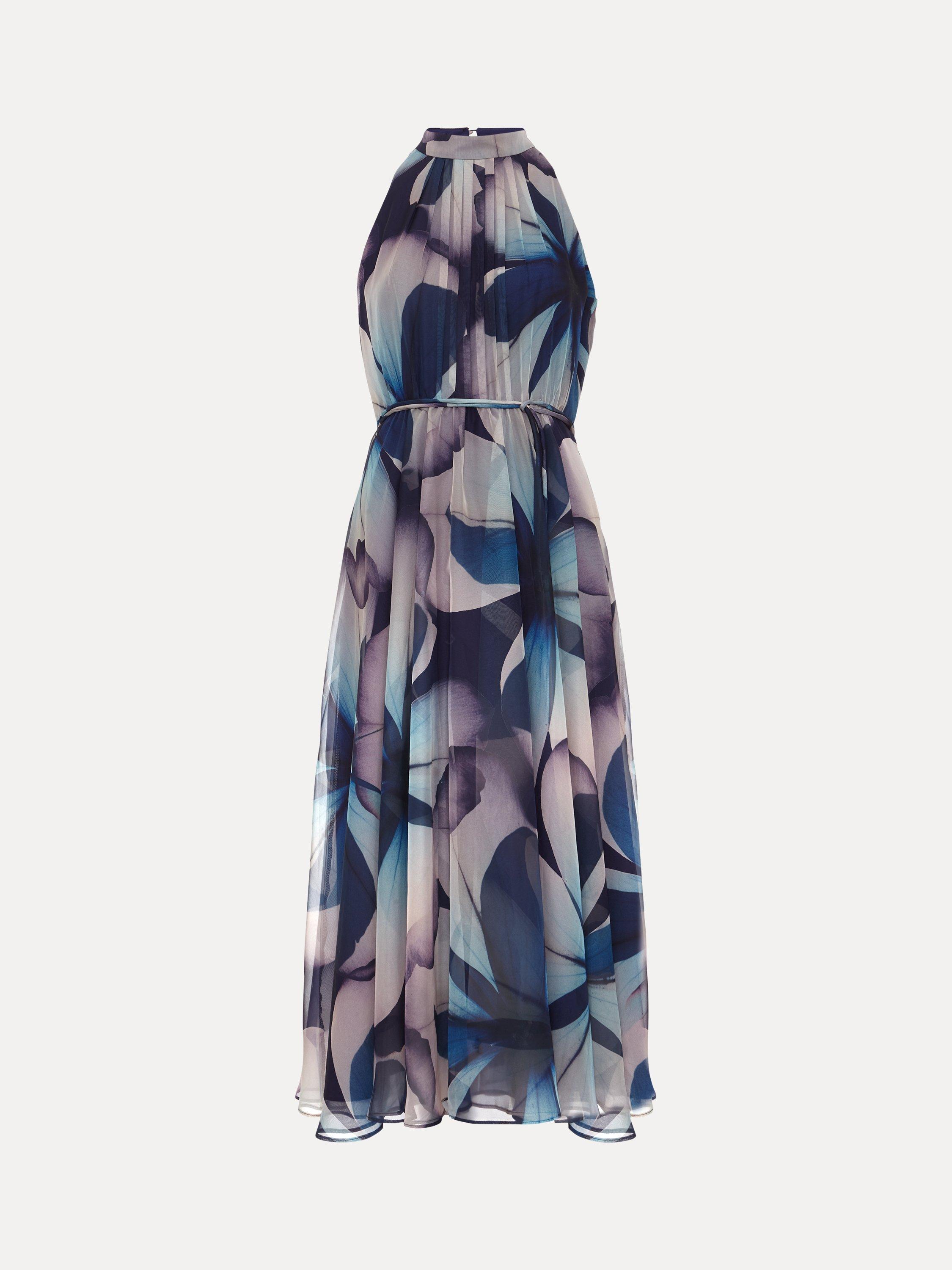 In a pleated A-line silhouette, this midi dress from Phase Eight features a halter neck, tie waist detail and an all-over blurred floral print. Perfect for special occasions.