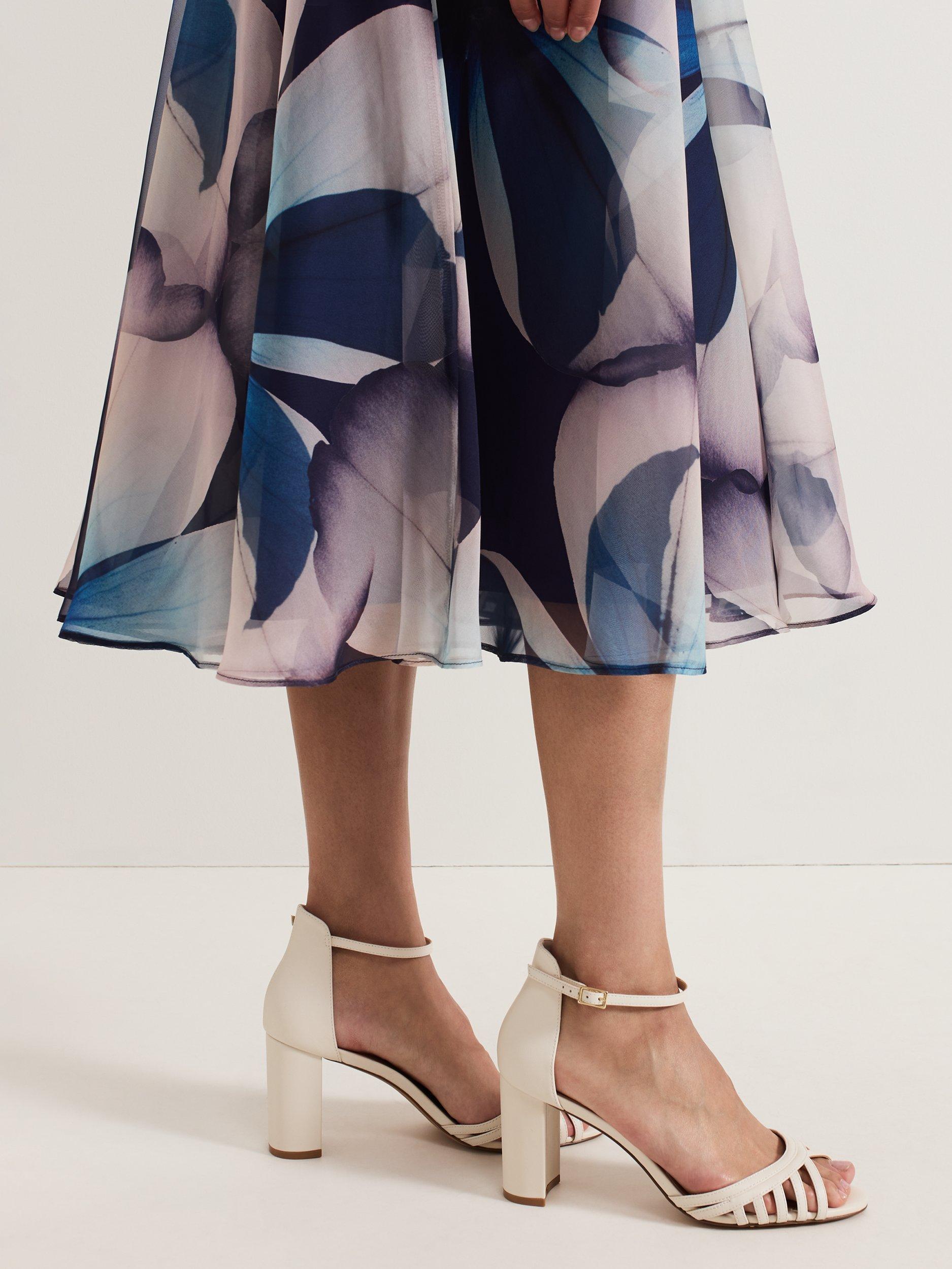 A timeless style with a contemporary finish. With a block heel and ankle strap for both style and comfort, these suede heels feature lattice detailing at the open toe, perfect to pair with your favourite sophisticated evening styles.