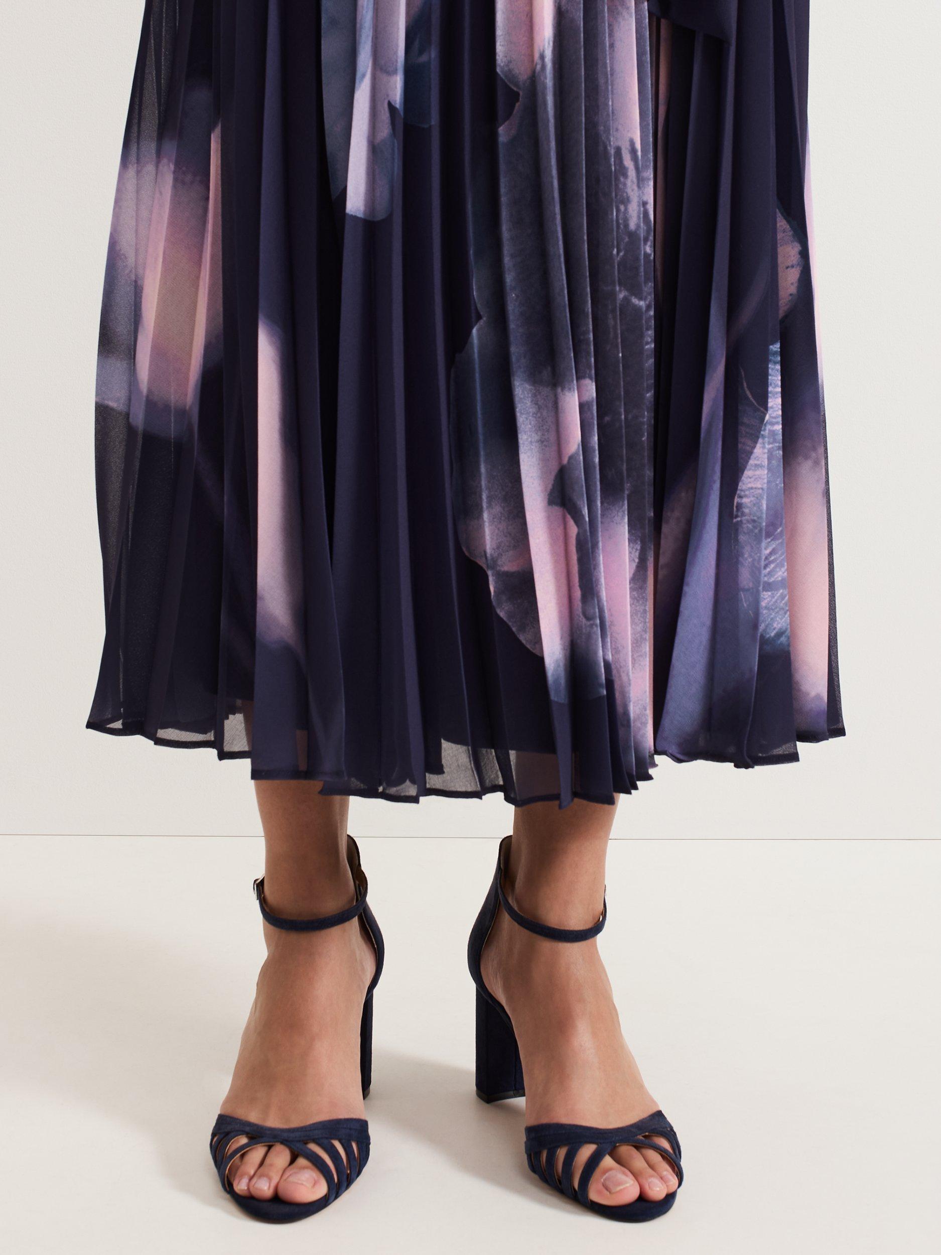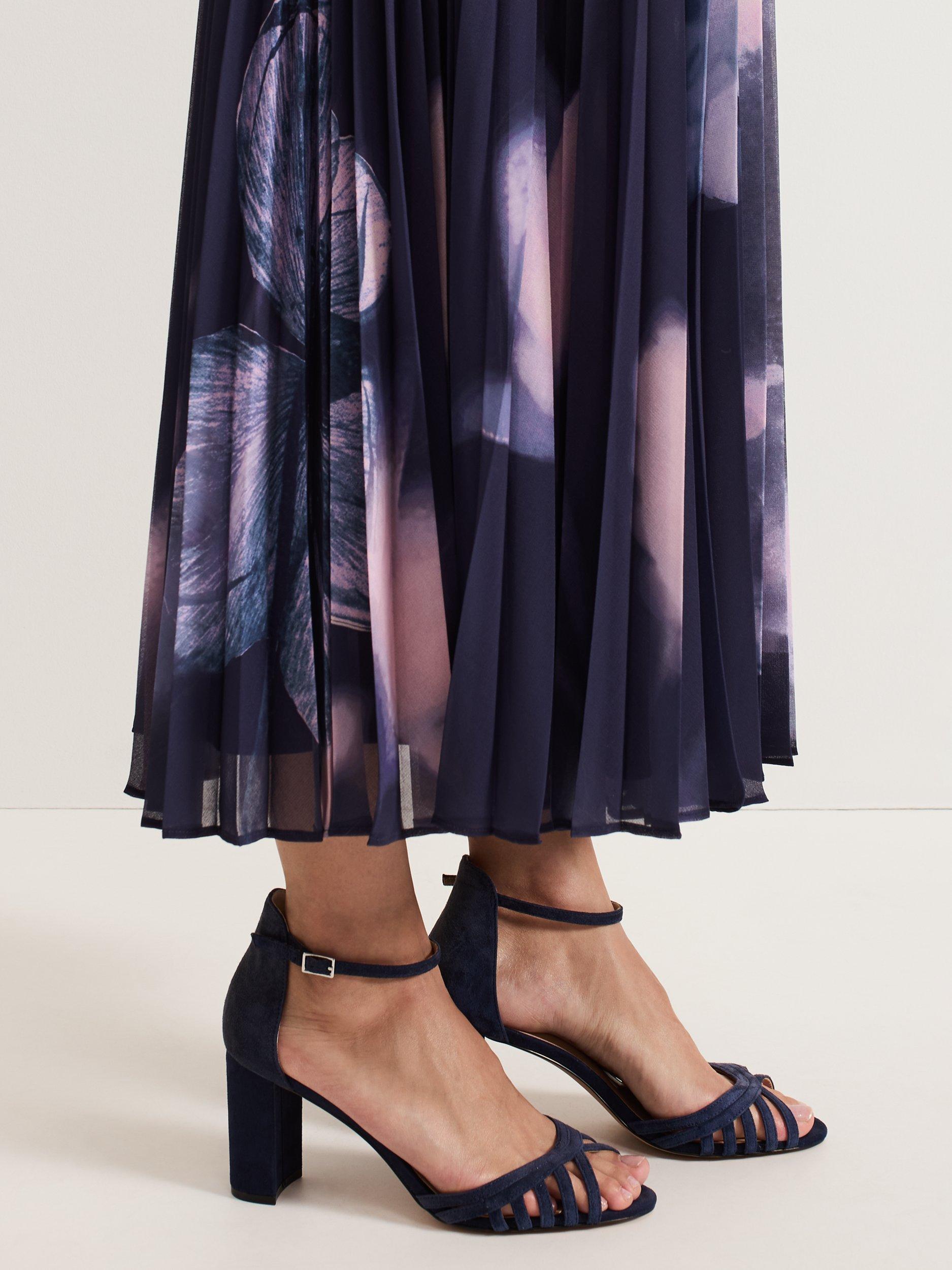 A timeless style with a contemporary finish. With a block heel and ankle strap for both style and comfort, these suede heels feature lattice detailing at the open toe, perfect to pair with your favourite sophisticated evening styles.