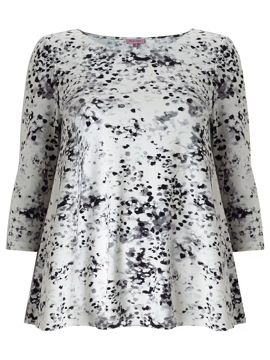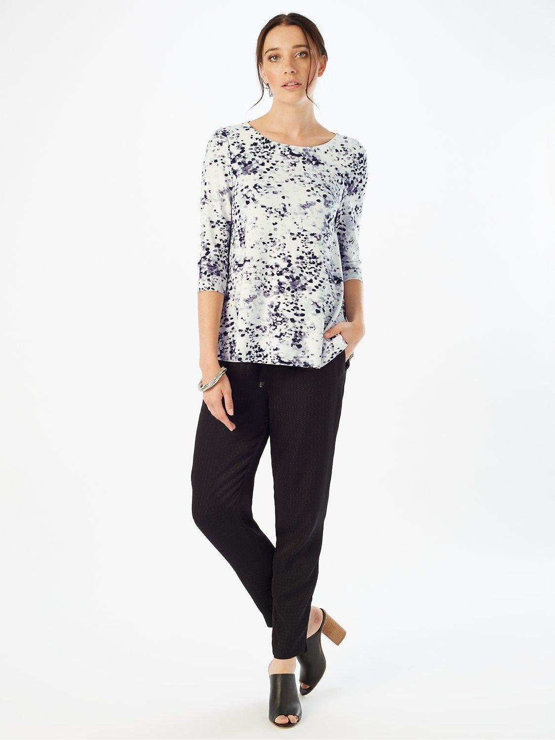 This elegant top is crafted with a modern blurred dot print, featuring a relaxed fit, 3/4 length sleeves and a round neckline.