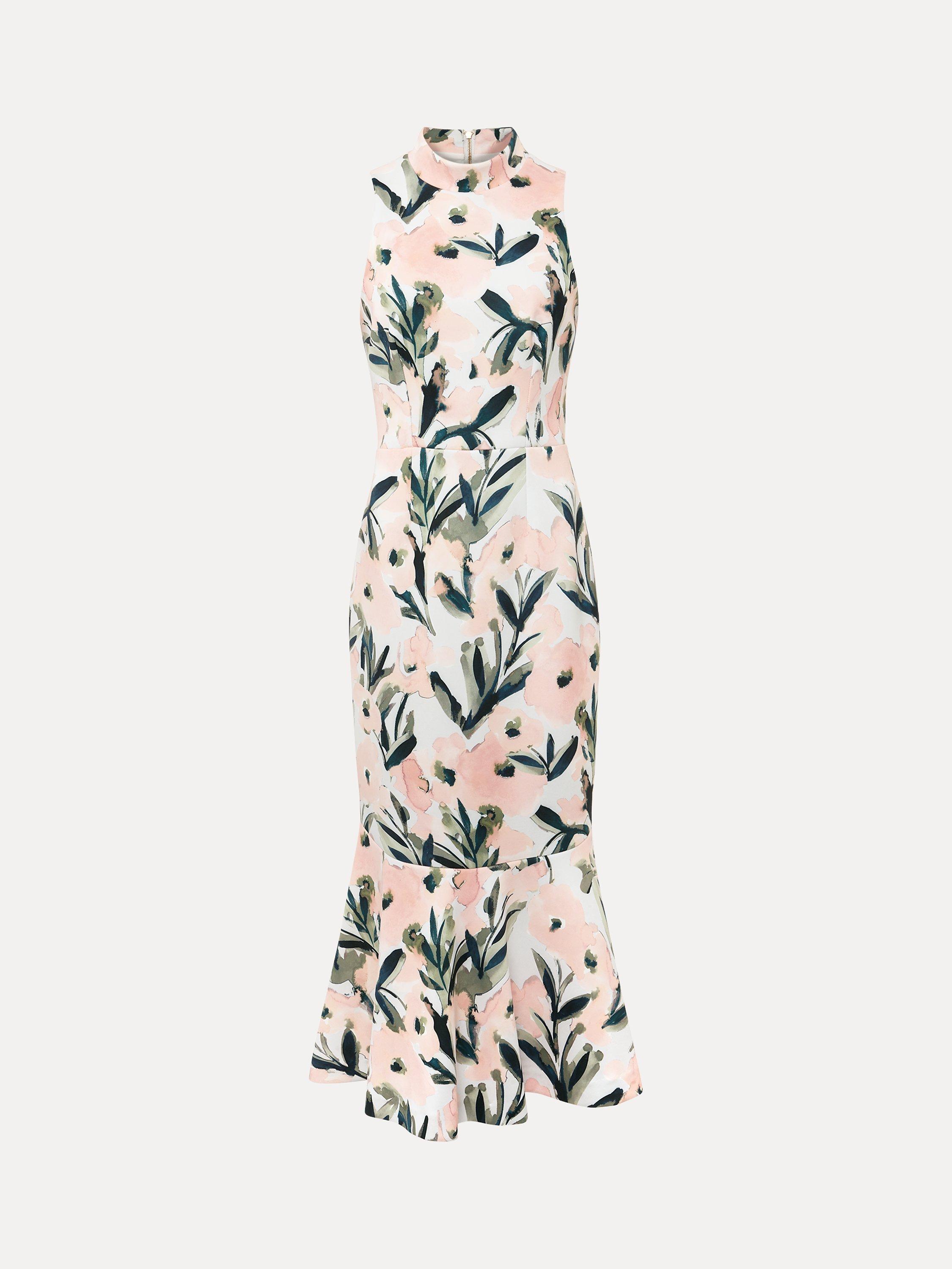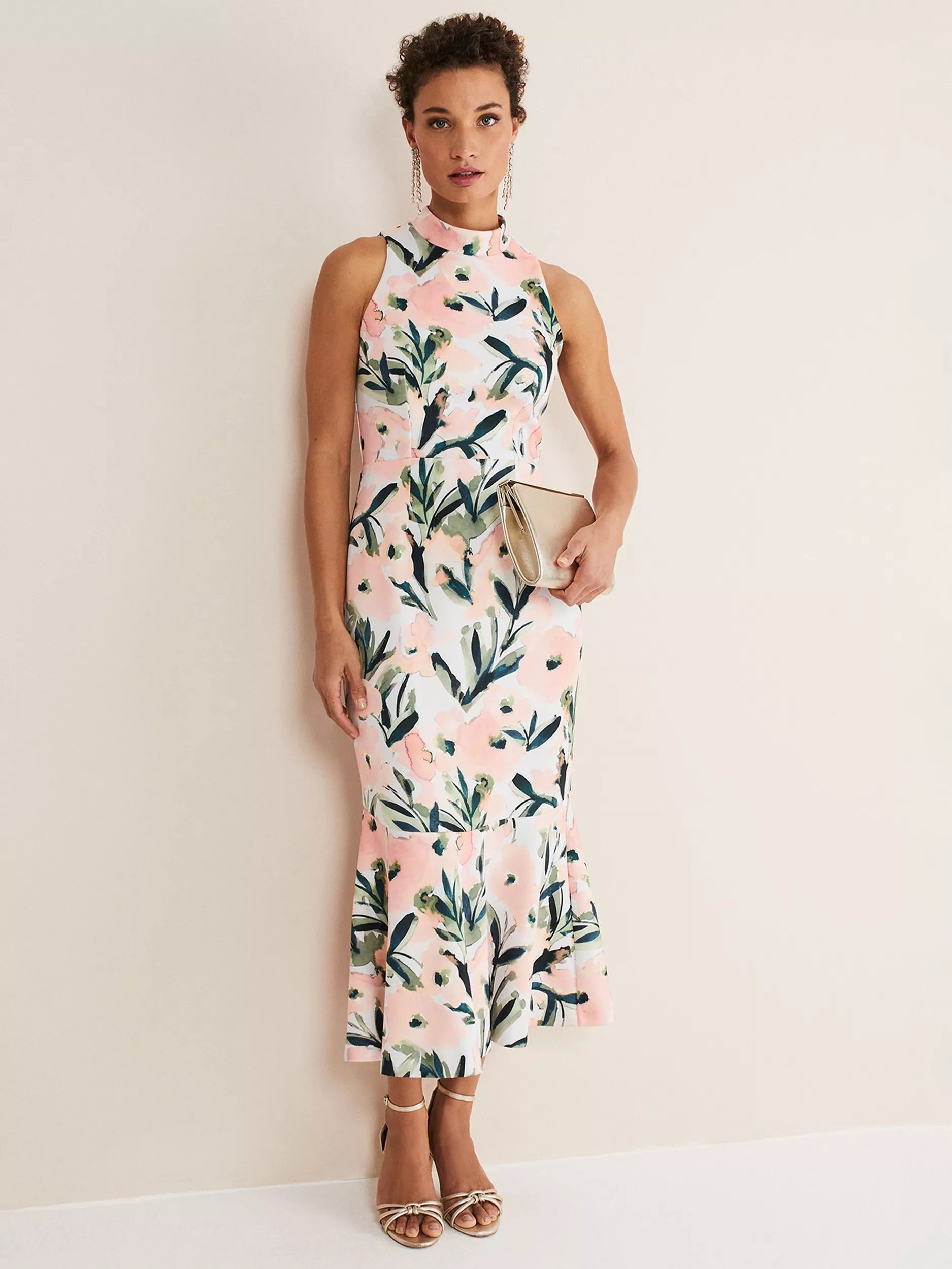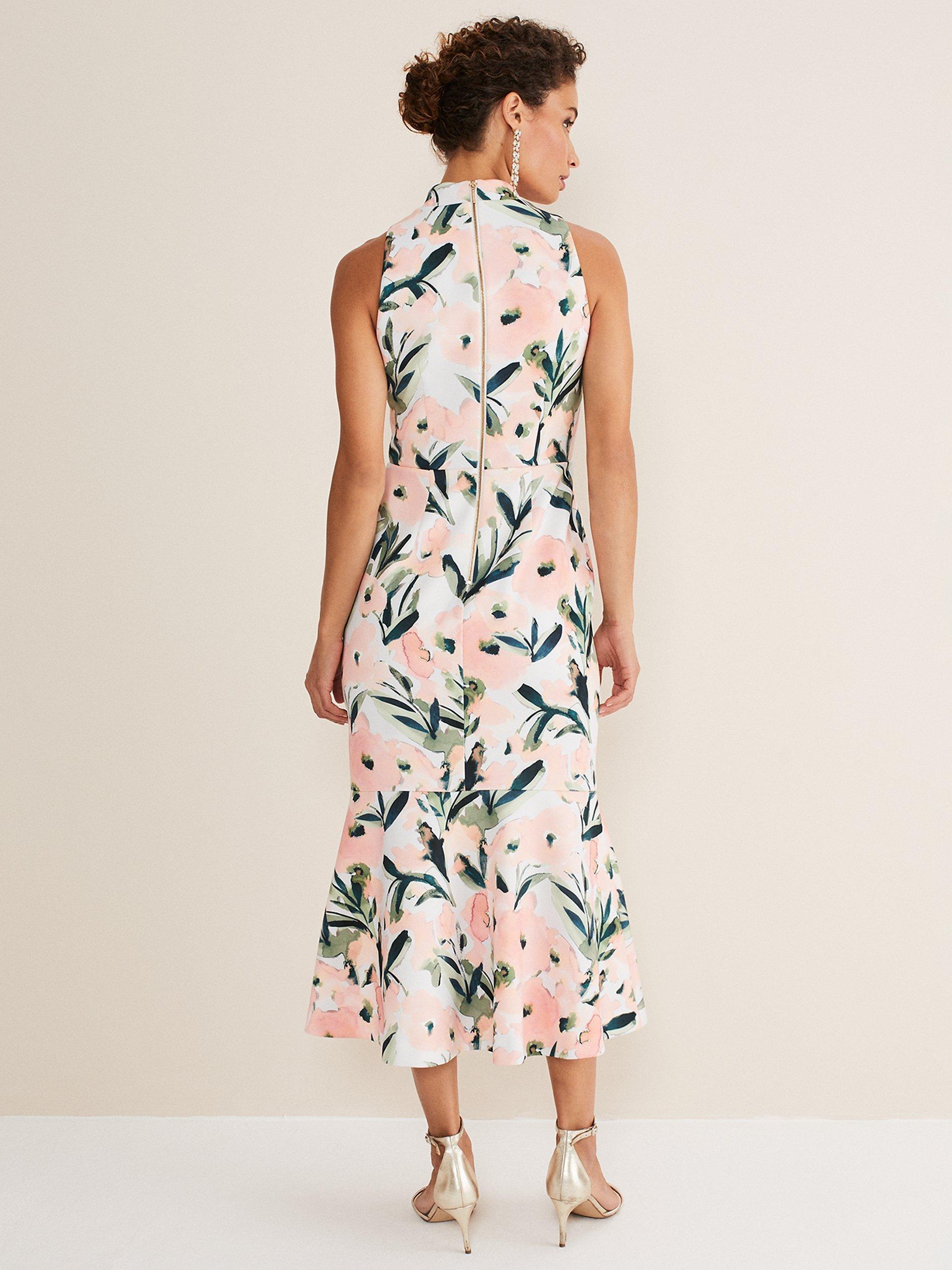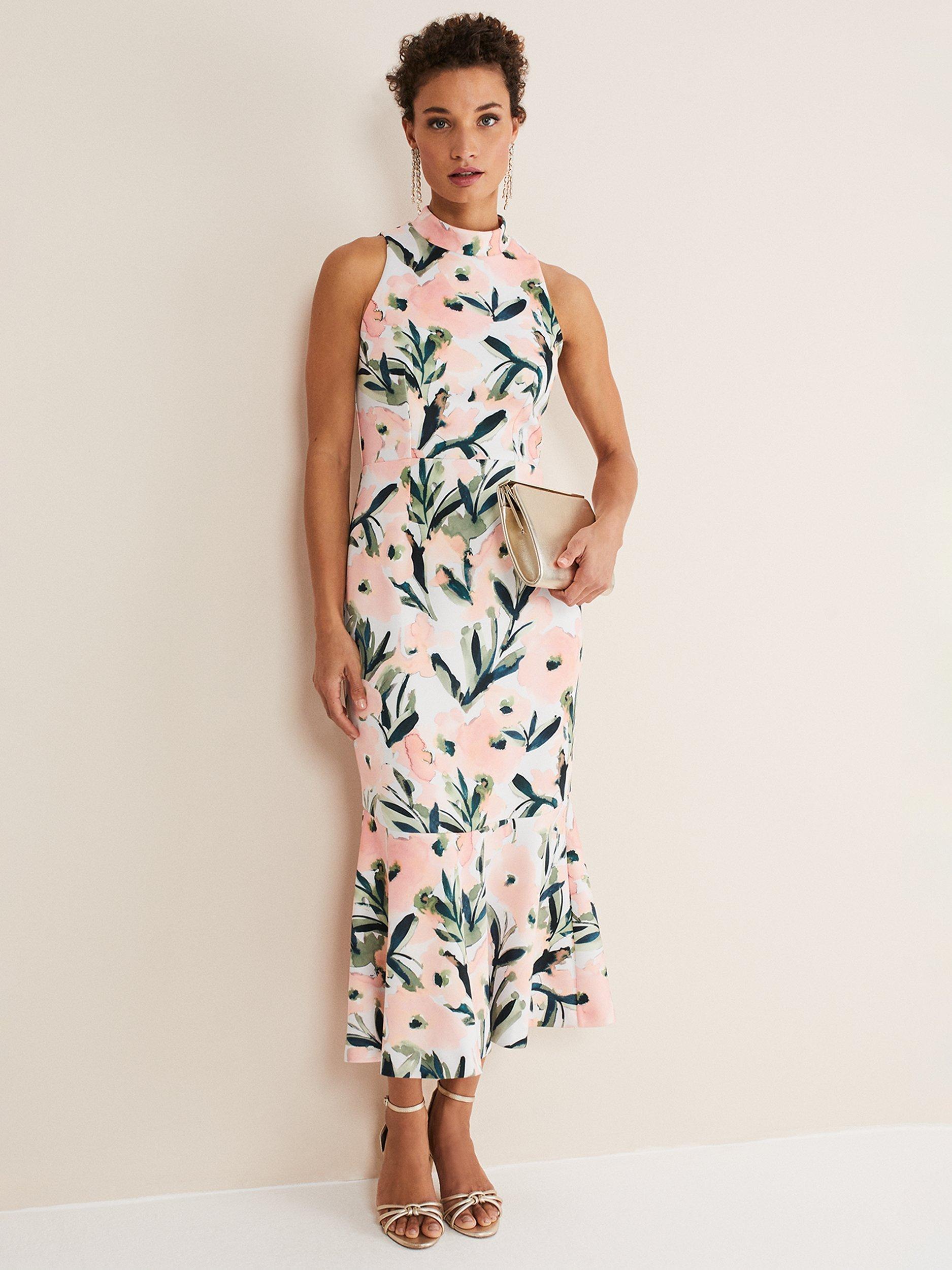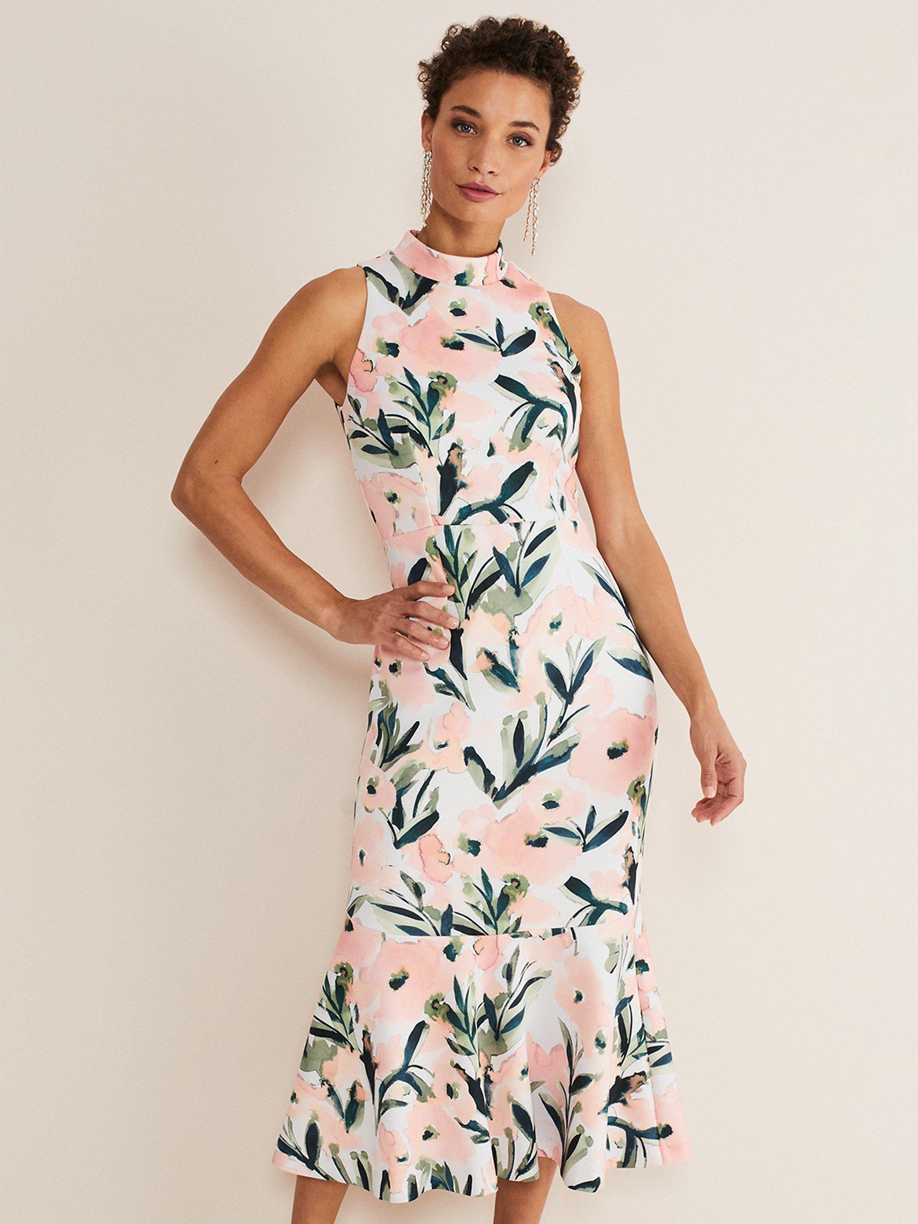 With ruffles at the skirt, this knee-length dress by Phase Eight is doused in pretty florals.