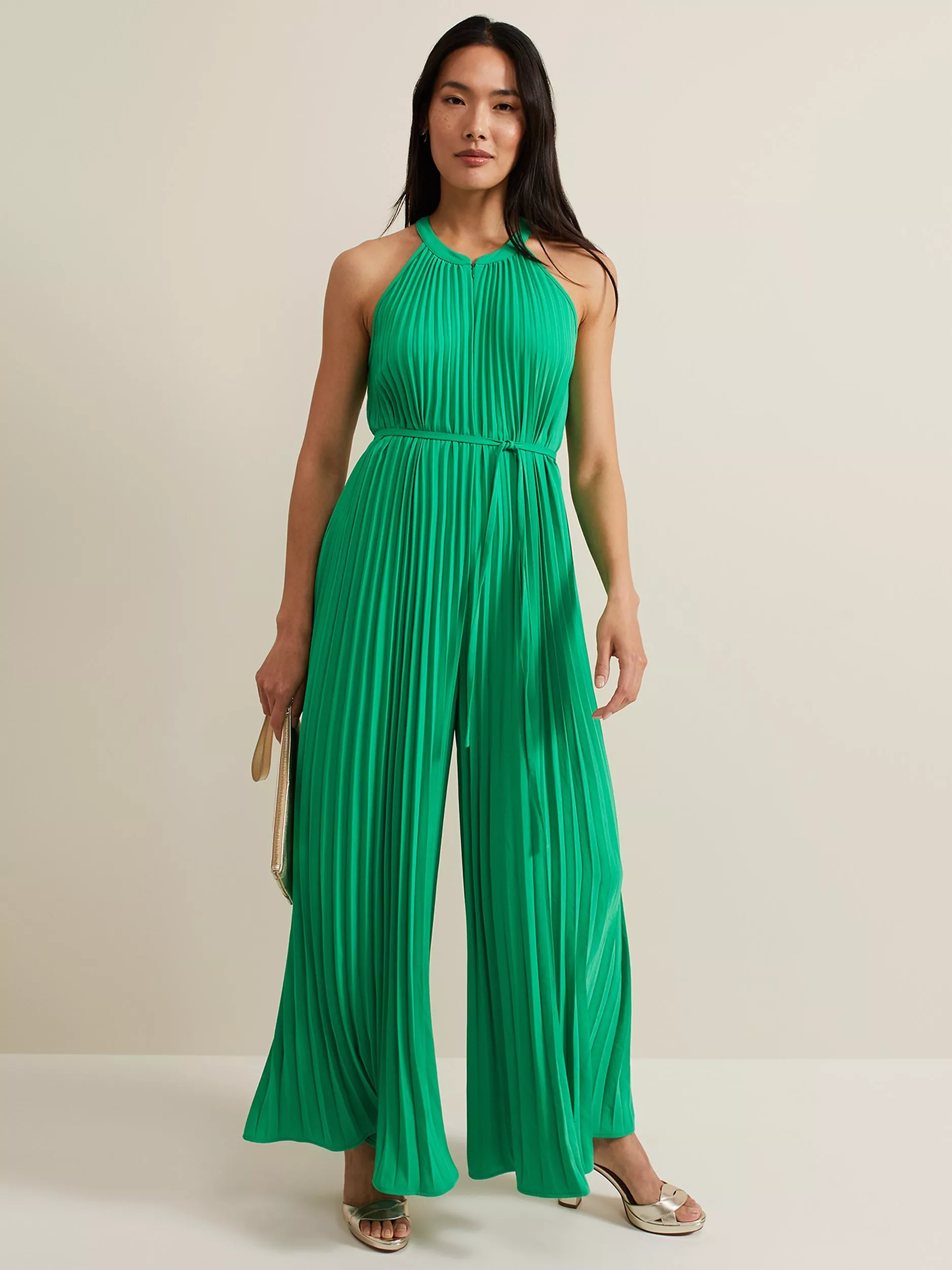 With a neat halter neck, this sleeveless jumpsuit from Phase Eight is shaped to a billowy wide-leg silhouette and will keep you comfy with their featherweight fabrication.