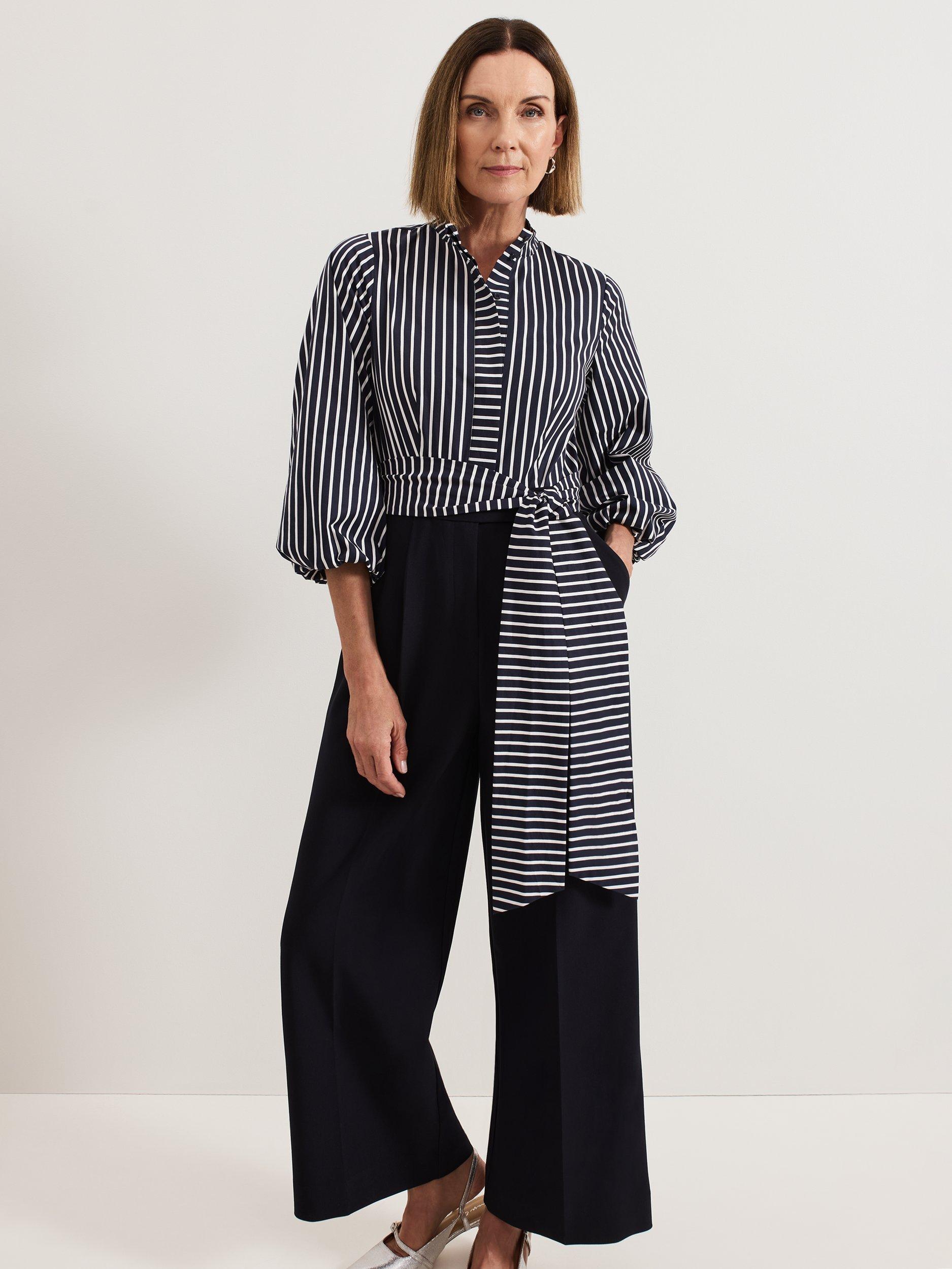 Framed with a high collar neckline and dramatic balloon sleeves, this jumpsuit by Phase Eight is crafted from a light and airy cotton blend and falls to a wide leg silhouette.