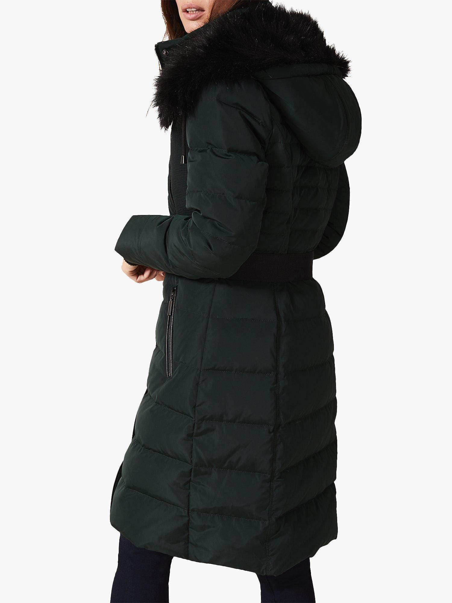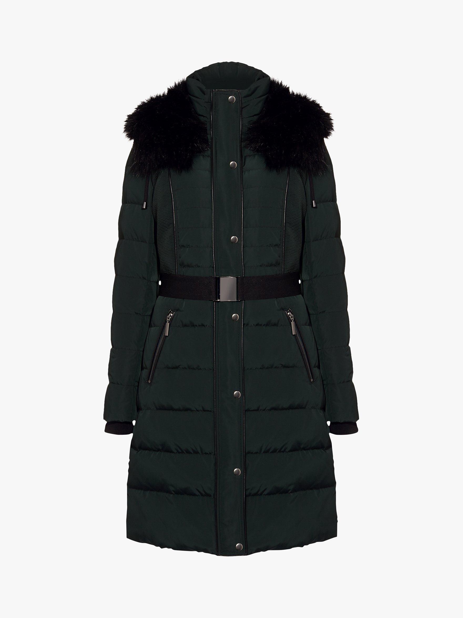 Carefully crafted from a lightweight fabric with an all-over quilted finish for ultimate warmth. This fully lined coat features a collar neckline with a whimsical faux fur lined hood, long sleeves and is intended to hit your knee. Further features include a full-length zip for fastening with poppers to conceal it, two front zipped pockets and a fabric tie belt to accentuate your figure.
