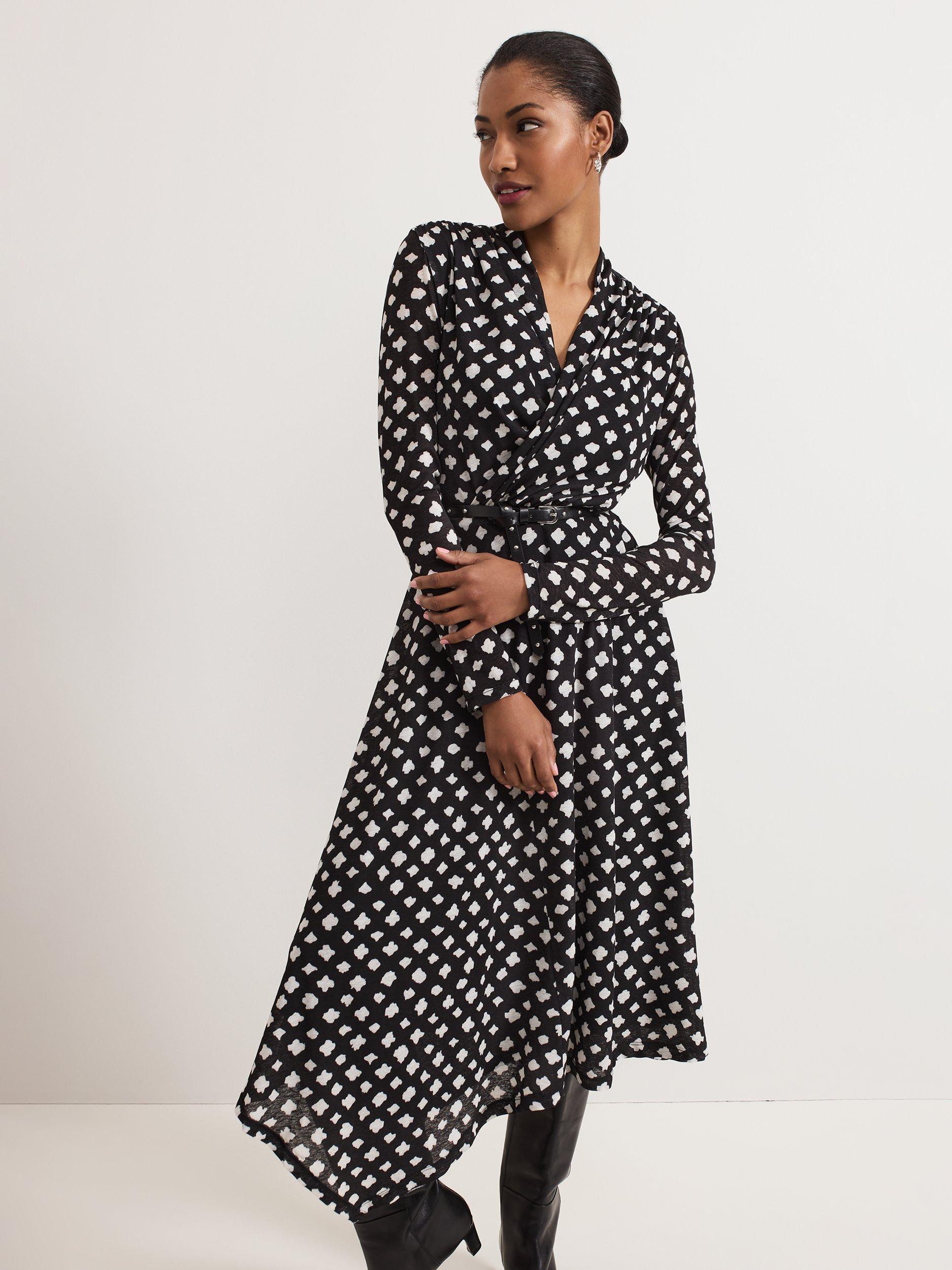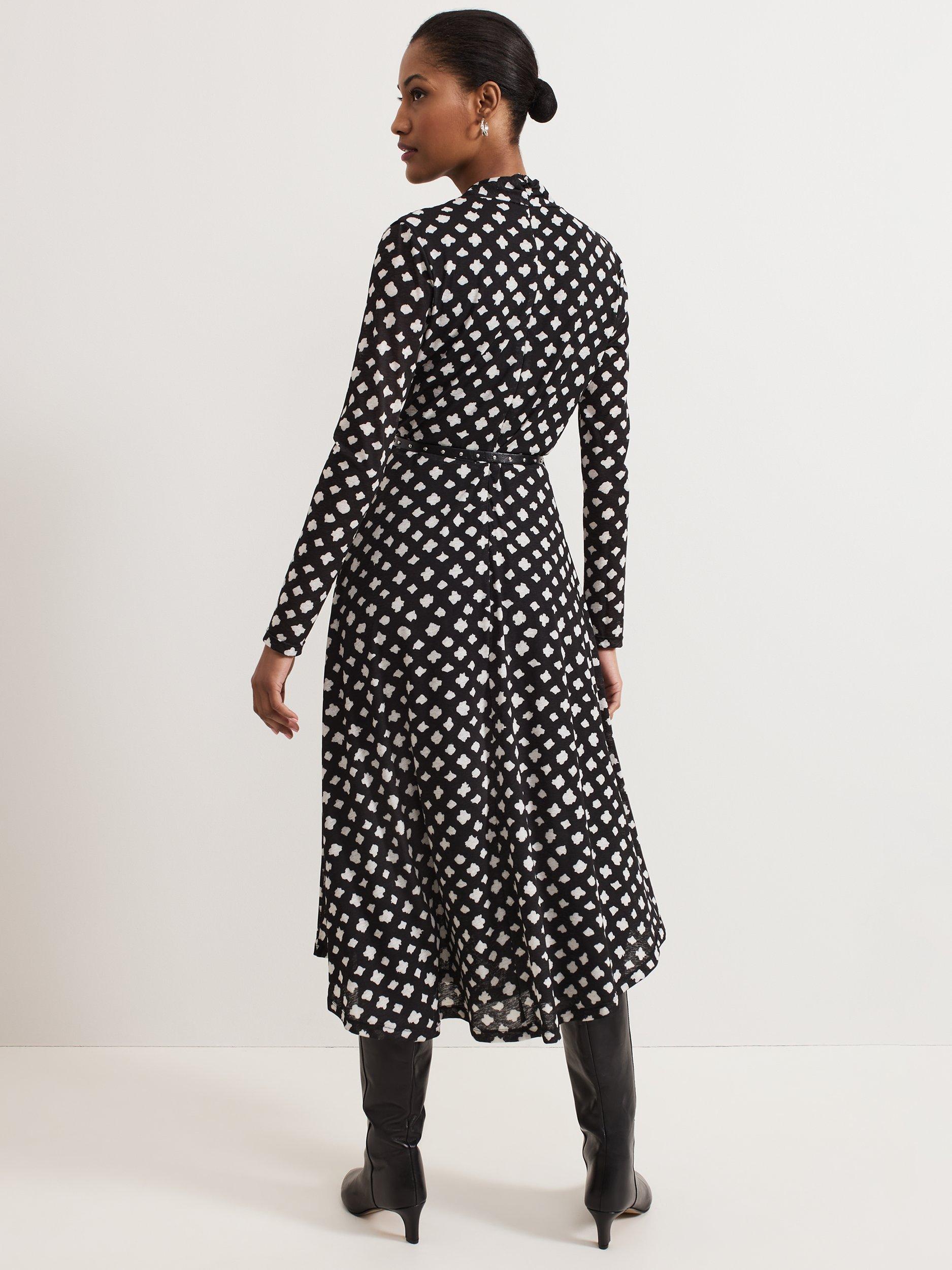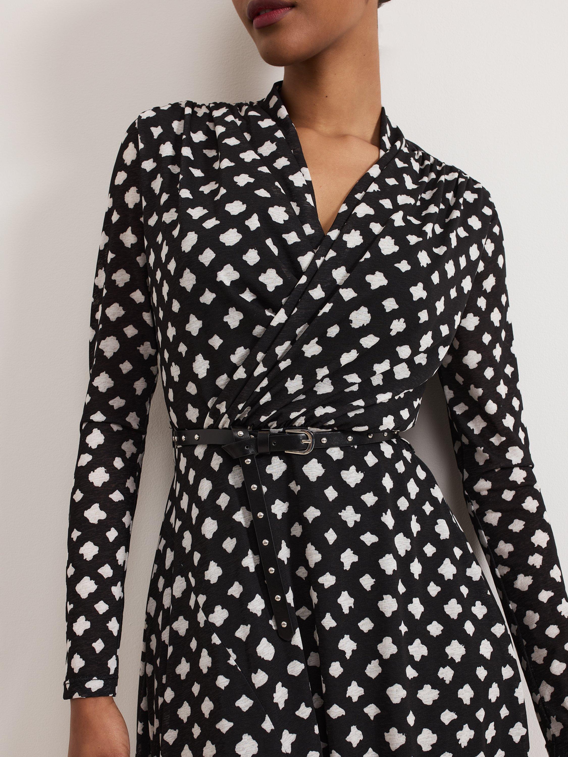 The perfect dress for that special occasion. Designed in an abstract check print, the Caitlin dress features an elegant twist neck, long sleeves and an asymmetric hem. The leather belt highlights the waist before falling to a chic midi length. Pair with your favourite boots or heels for a sophisticated event style.