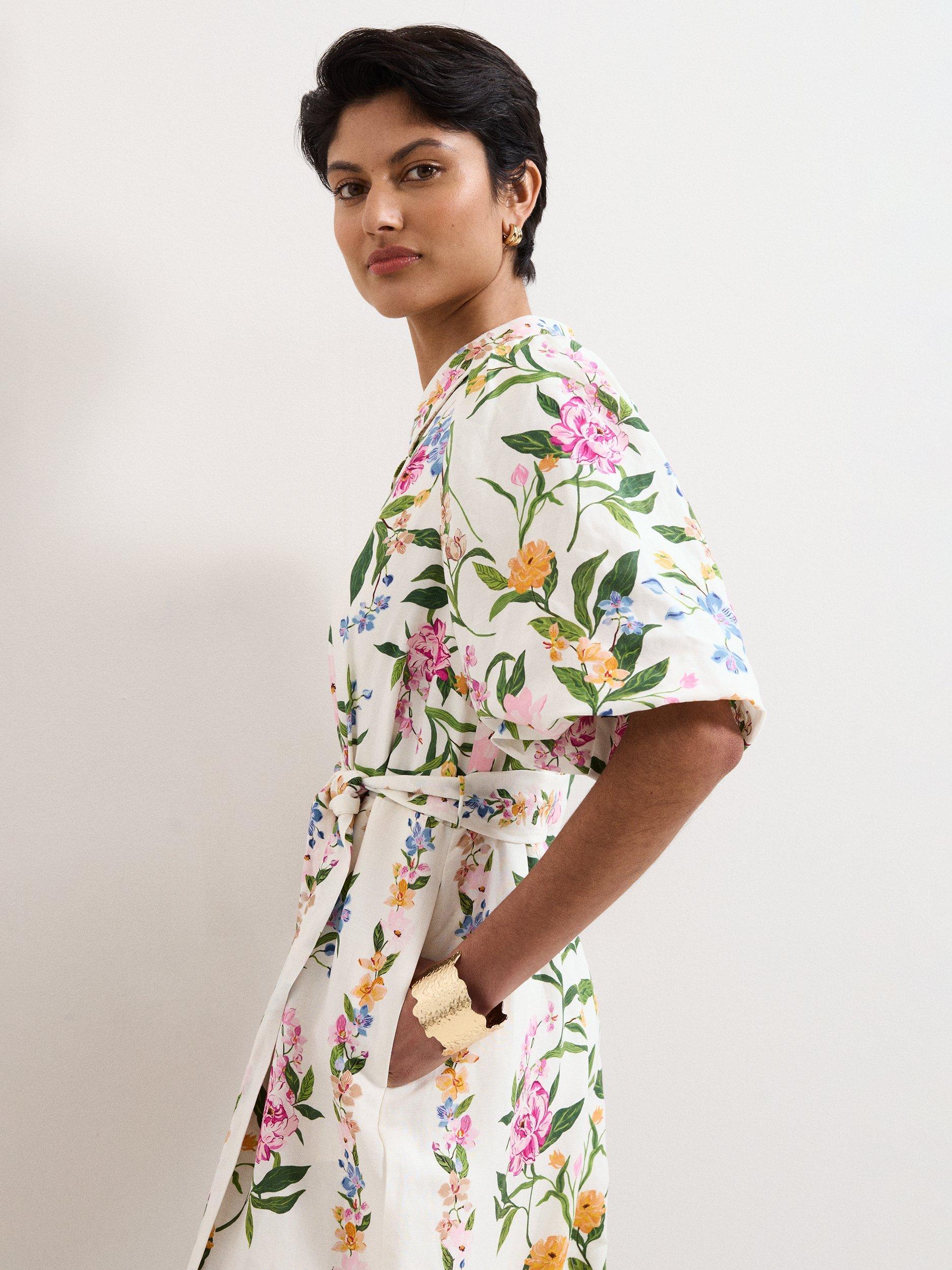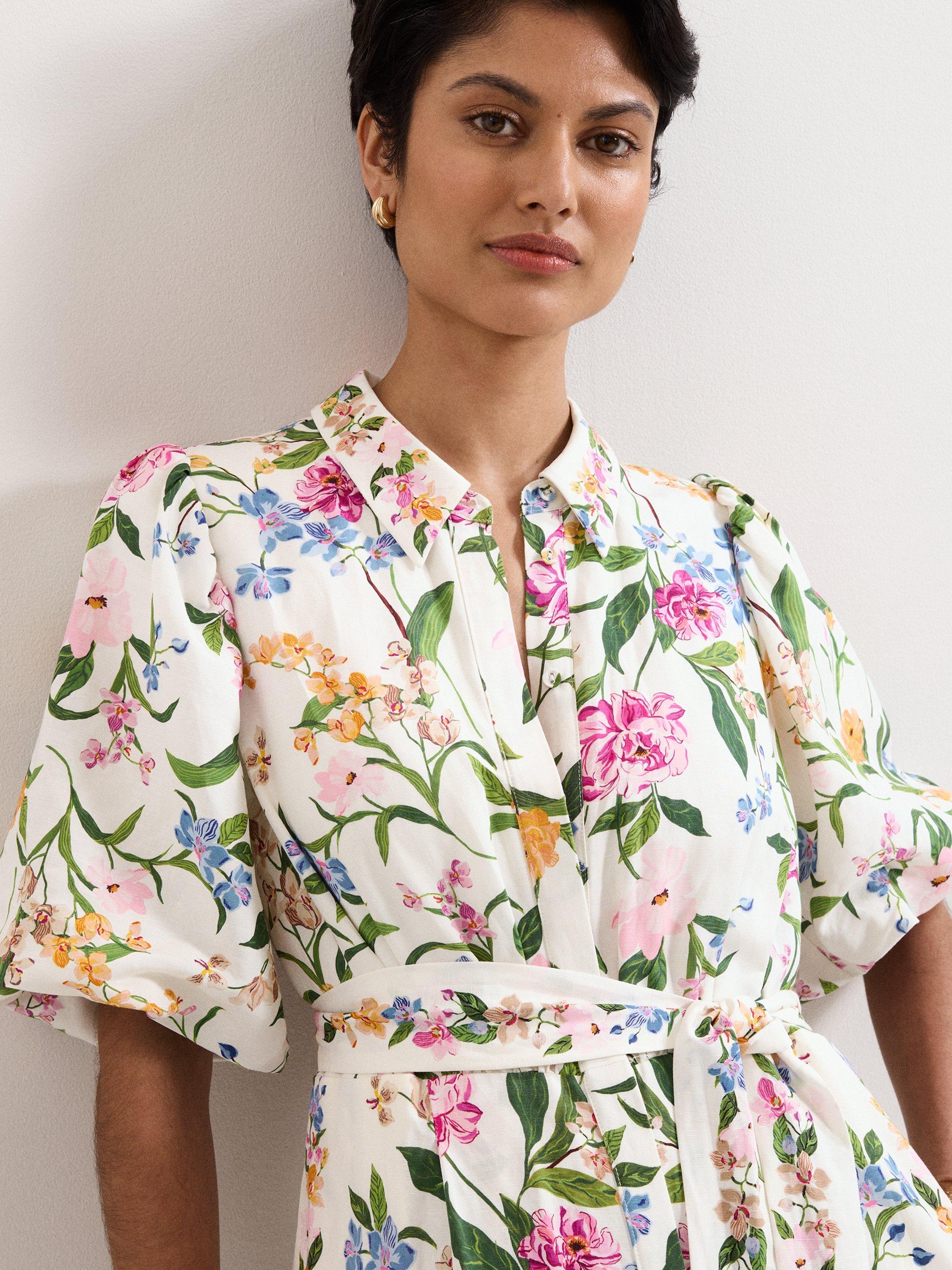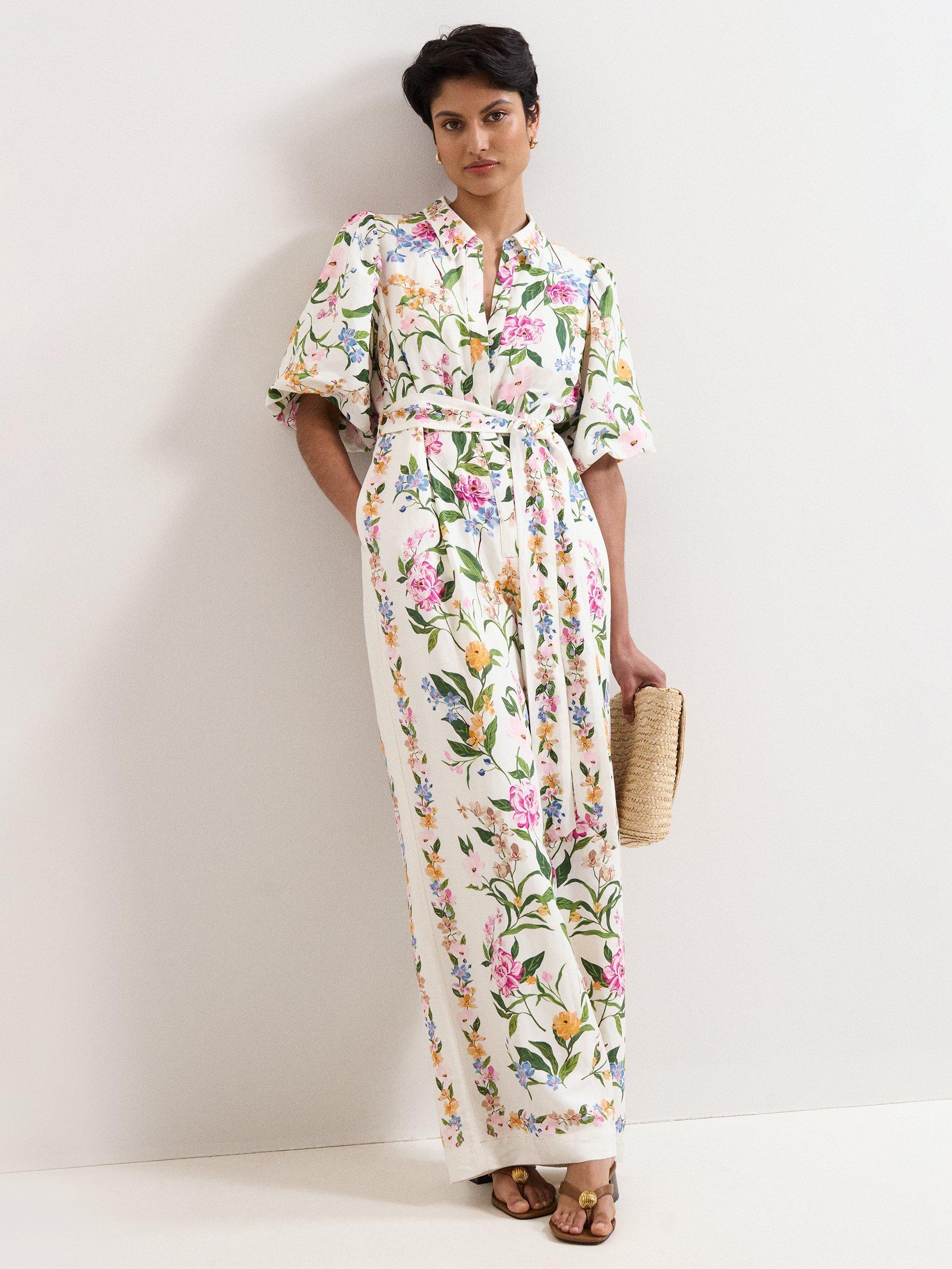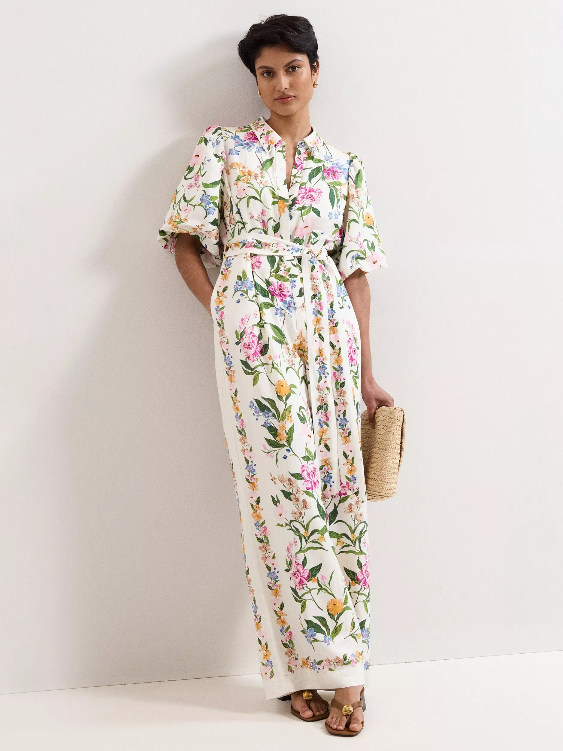 Both radiant and impactful, this feminine floral jumpsuit is perfect for all your spring/summer occasions. Designed in a stylishly comfortable wide-leg silhouette, this jumpsuit features a delicate floral print, inspired by vintage wallpaper. Finished with a relaxed collar, playful puff sleeves, pockets and a matching tie belt, pair with neutral accessories to let this style do all the talking.