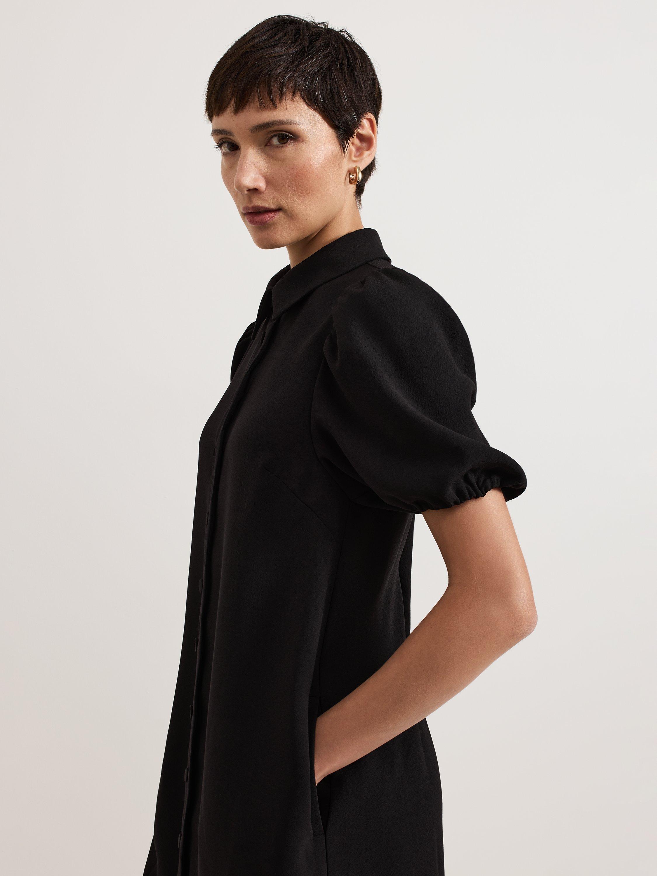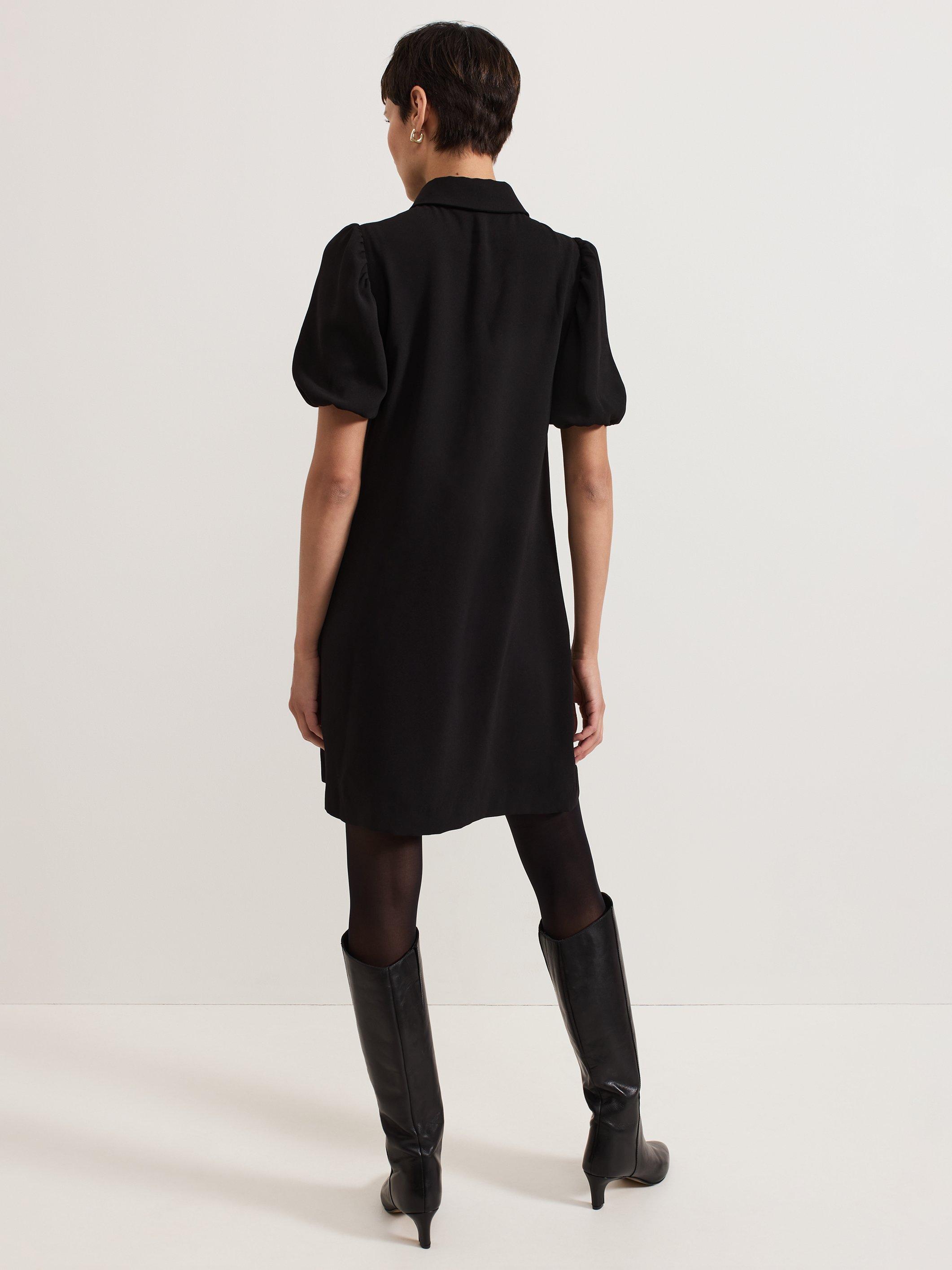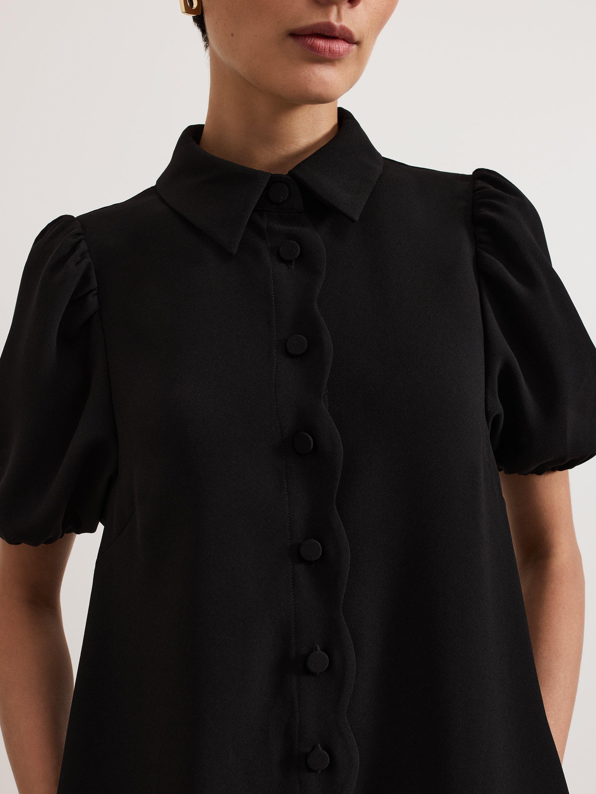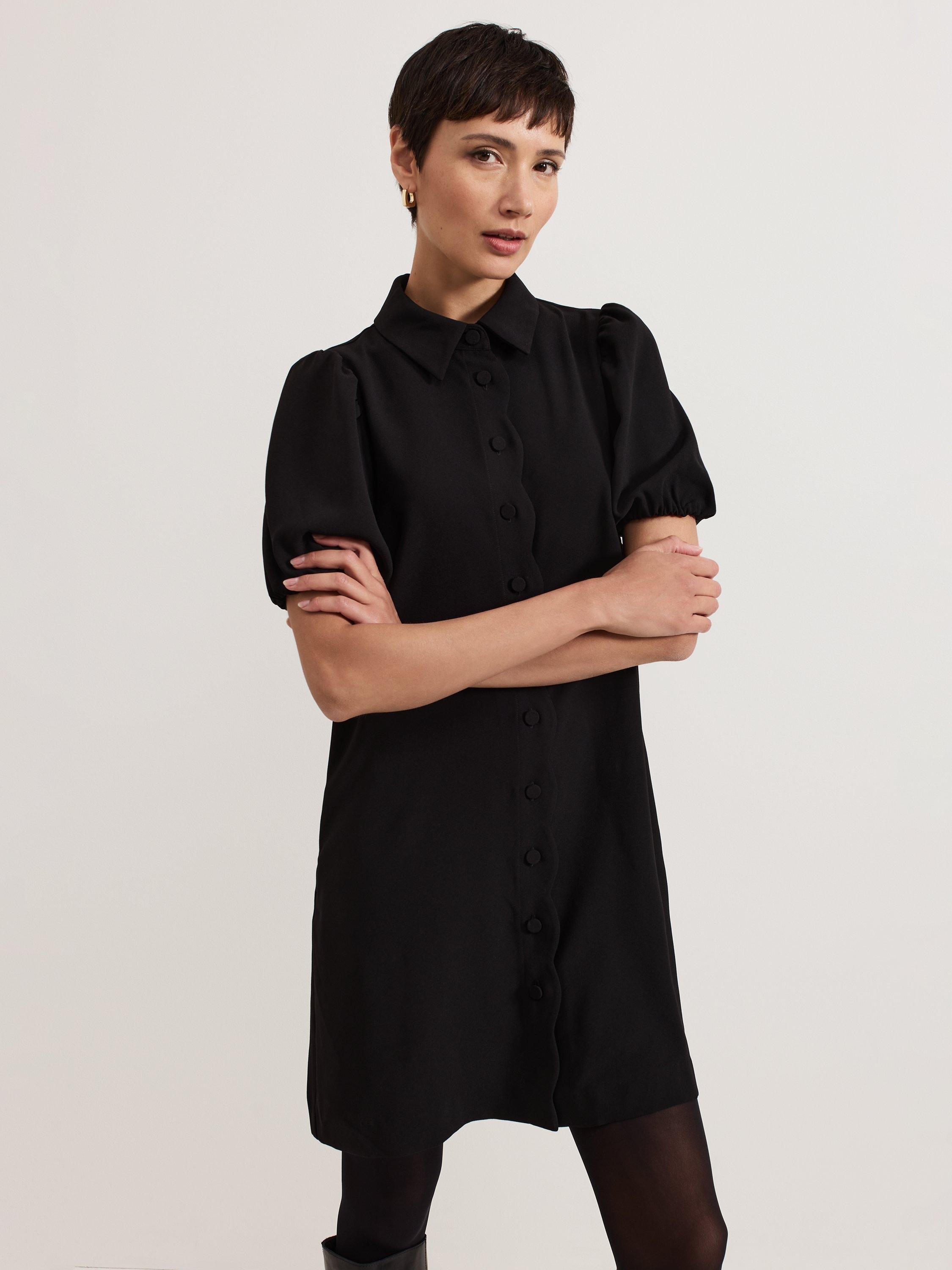 The Candice shirt dress is an everyday favourite, for work and weekend. In an easy swing silhouette, this dress features scallop detailing and feminine puff sleeves for added dimension, and it is finished with a refined collar that looks great buttoned up or left open. We wear ours with knee high boots for a smart-casual look.