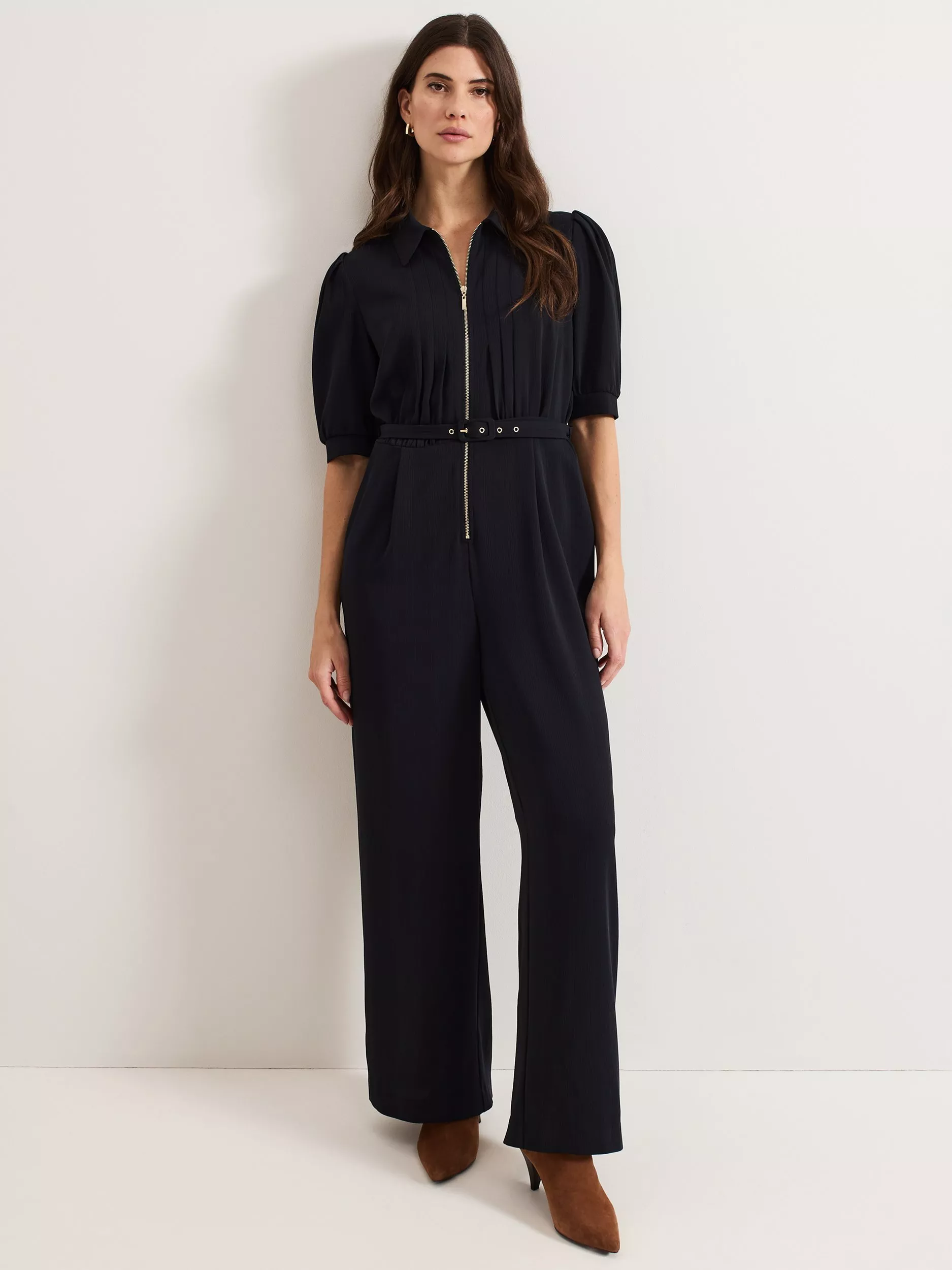 The ultimate all-in-one, the Candice jumpsuit is designed with gold zip detailing and a matching belt for a contemporary finish. The collared neckline and feminine puff sleeves add touch of polish, falling through to a wide leg silhouette that pairs perfectly with your favourite boots for an off-duty look.