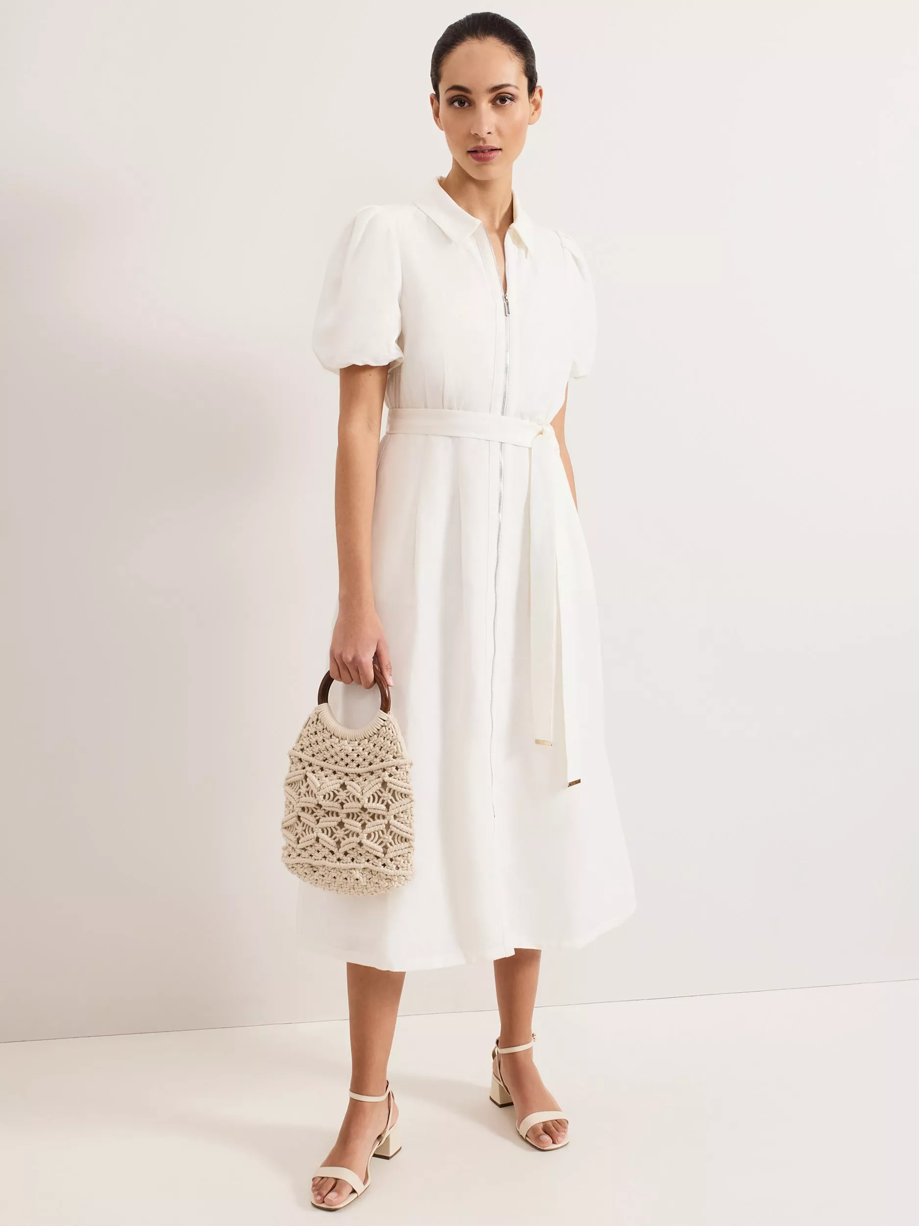The linen-rich dress your wardrobe needs. Contemporary puff sleeves add subtle volume to the timeless shirt silhouette, updated with zip through detailing and silver belt accents. Our new lightweight linen blend has been crafted to minimise creasing, perfect for warmer days, simply add your favourite sandals.