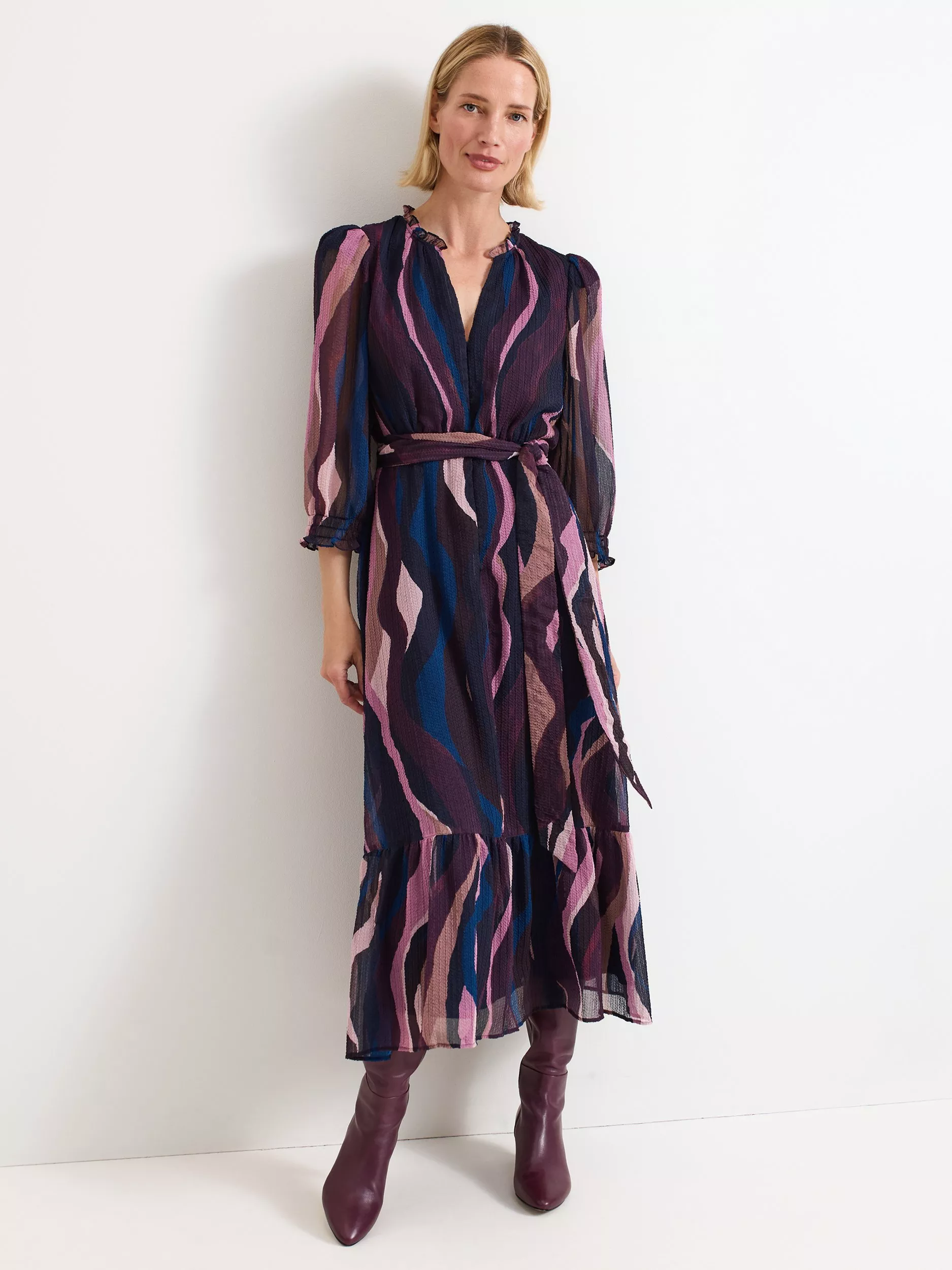 Swirling out to the hemline, this long sleeve midi dress from Phase Eight is framed with a V-neckline and intriguing, abstract print.