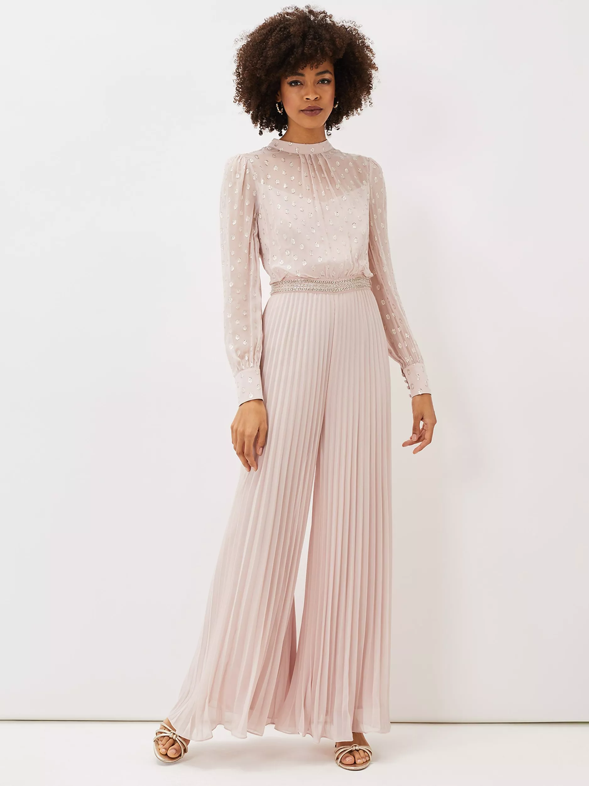 Kept simple with a round neckline and long sleeves, this jumpsuit from Phase Eight falls to a '70s inspired pleated flared silhouette and is made from a lightweight yet durable fabric.