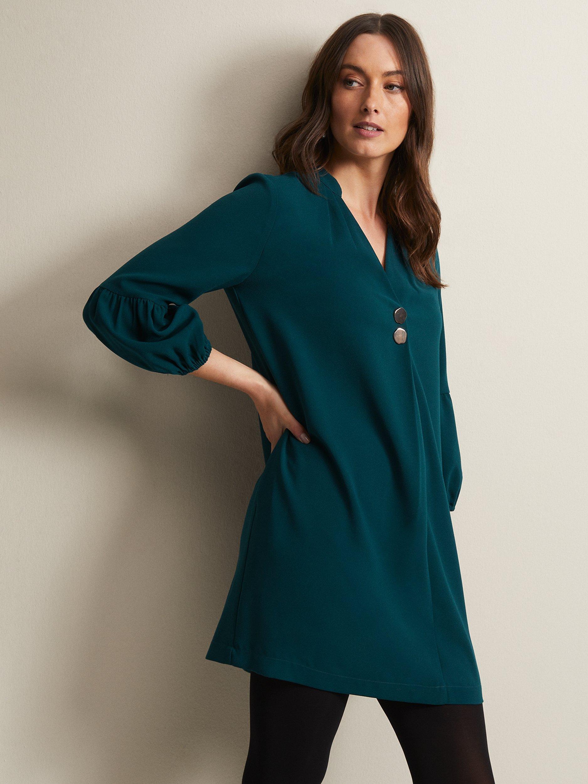 In a comfortable loose-fit silhouette, this mini dress by Phase Eight is in need of no fussy details or prints to catch the eye.