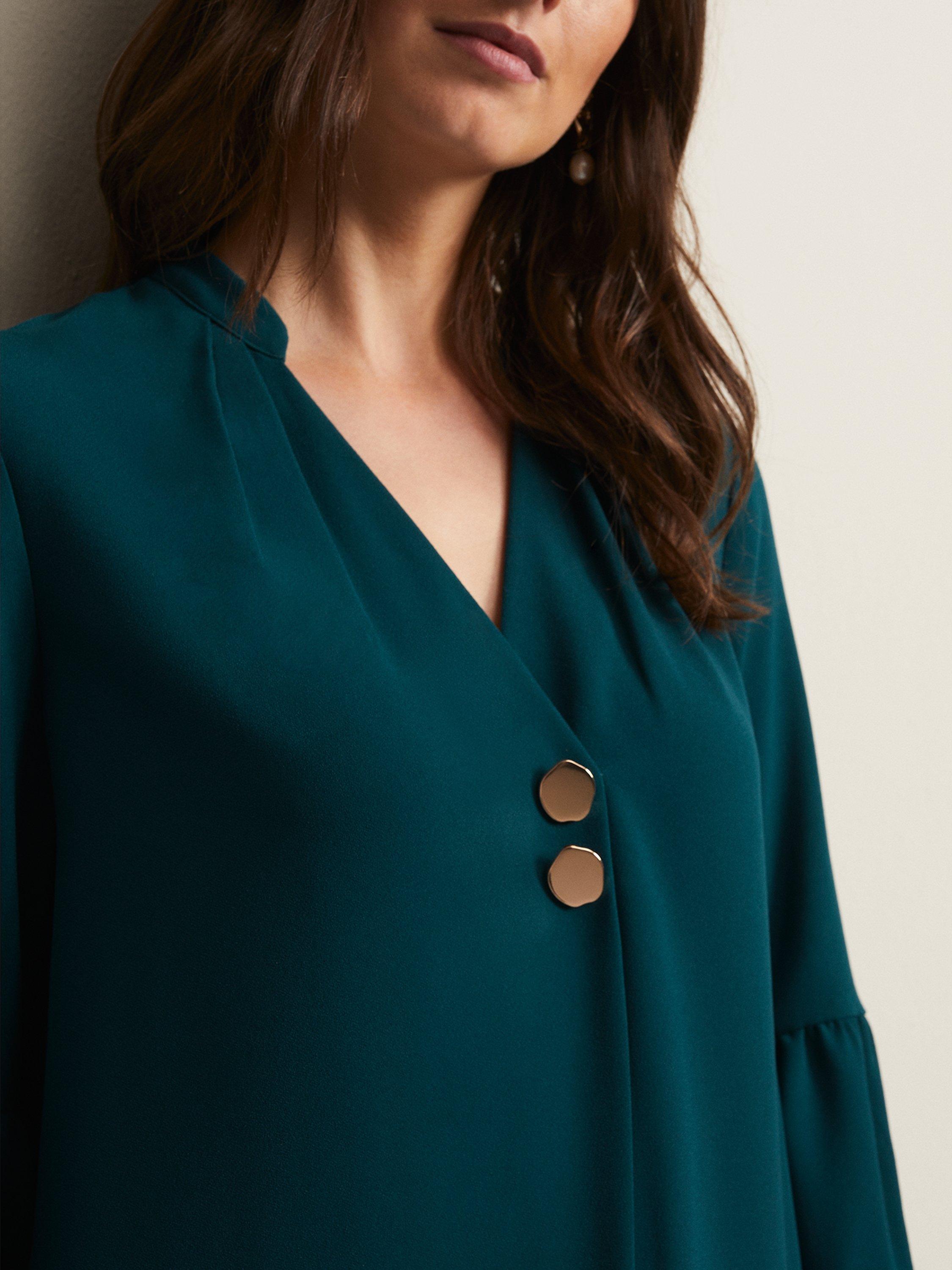 With a flattering v-neckline and three-quarter length sleeves, it is a care-free option for daytime dressing.