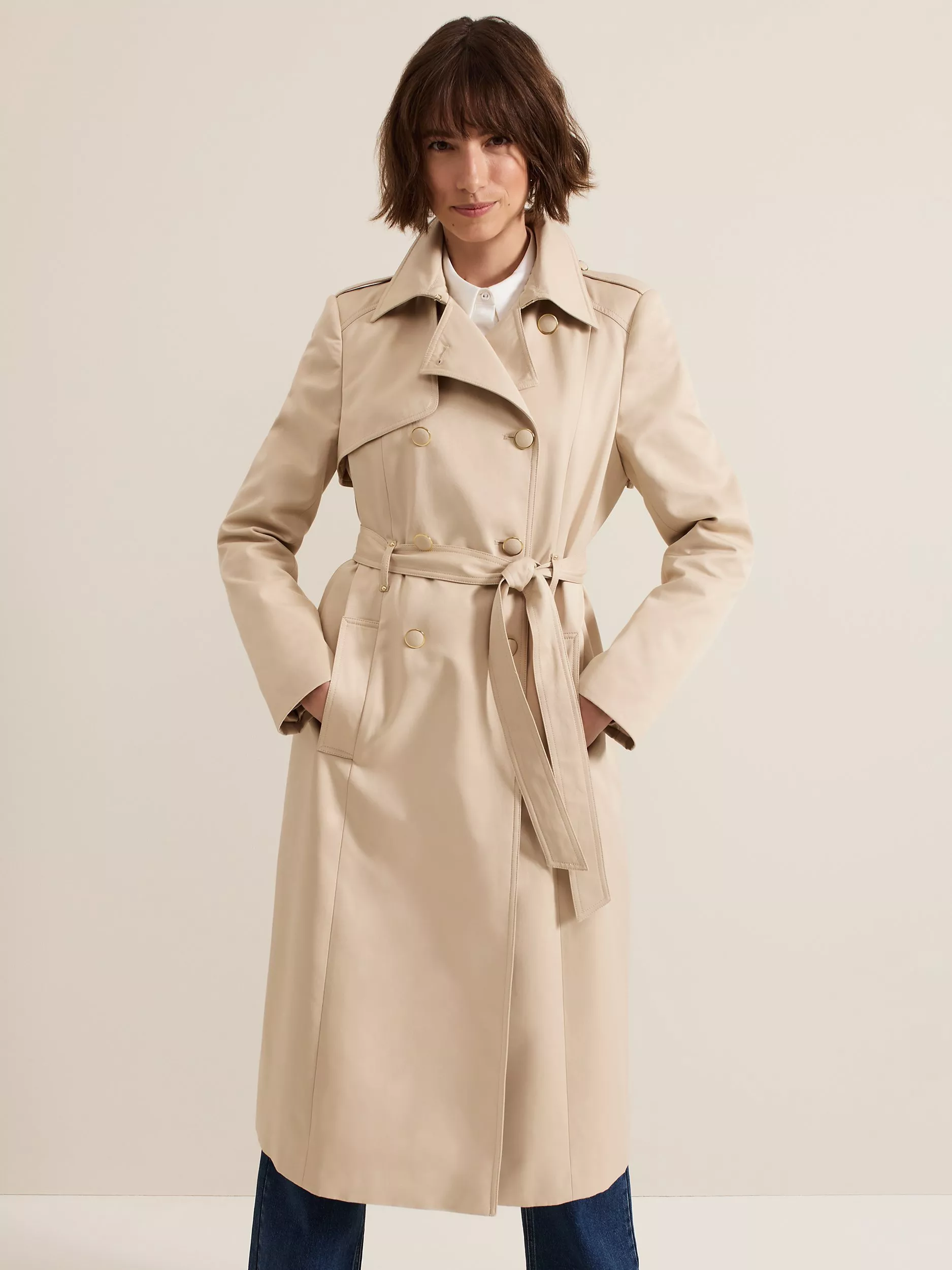An outerwear piece you'll reach for again and again, this trench coat by Phase Eight streamlines the profile with its longline cut. Framed with a collar neckline, double-breasted front and self-tie belt detail at the waist, it is made from a comfortable cotton blend.