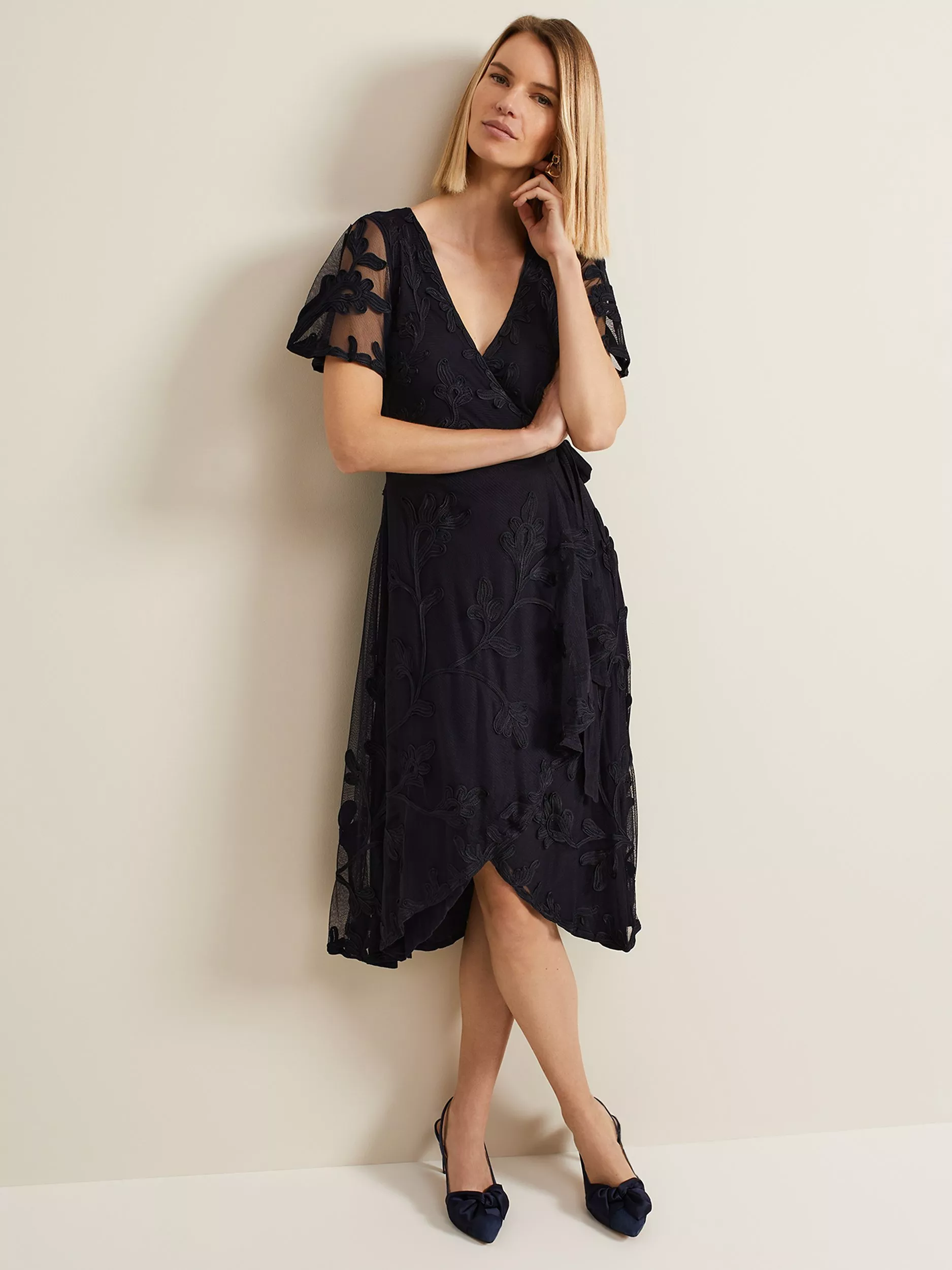 Designed with intricate tapework, Phase Eight's Clara dress is perfect for events and evenings out. Cut to a midi-length, it stays true to classic romance with mesh and embroidered tapework detailing. Style with matching heels and a clutch bag.