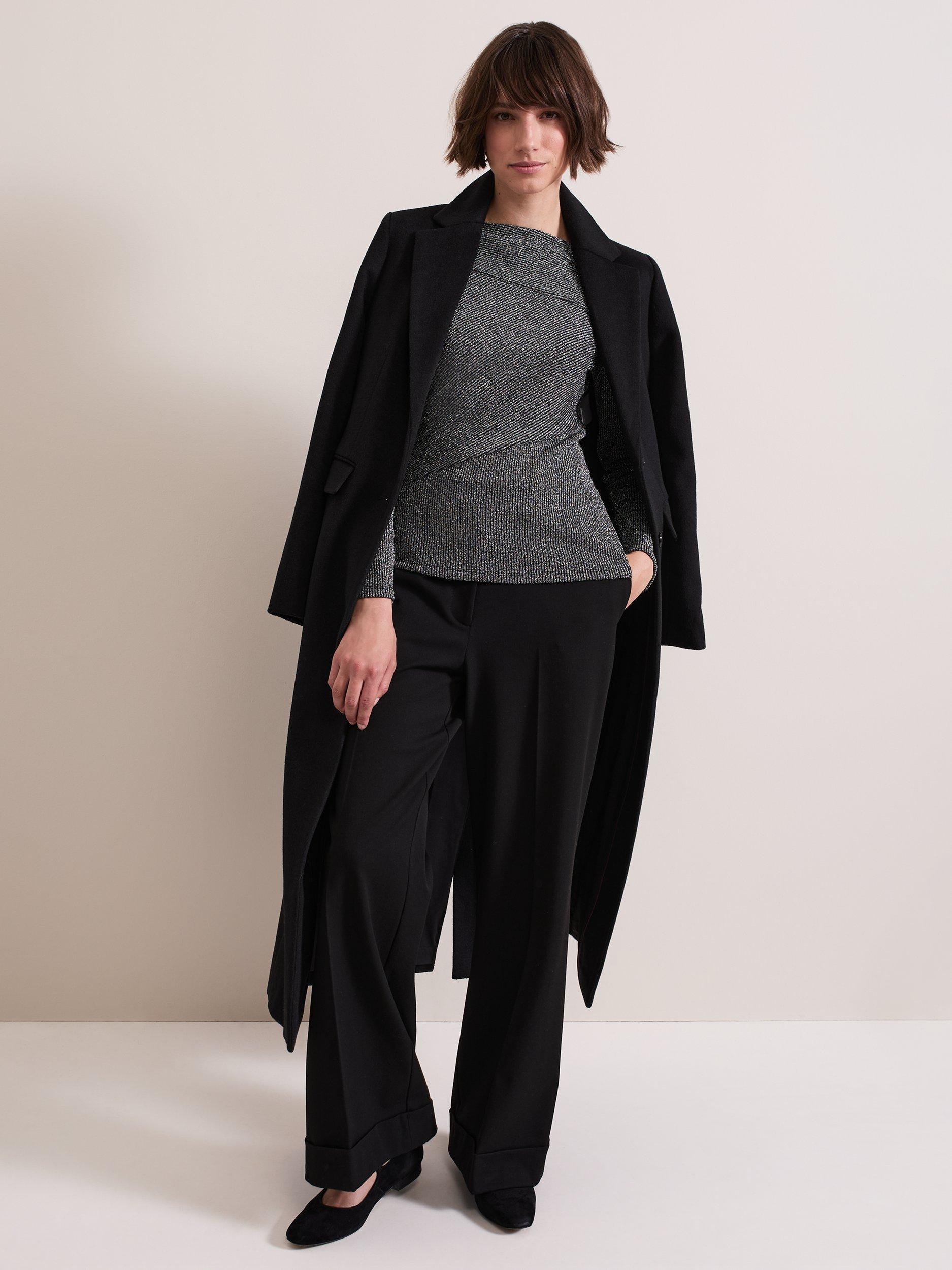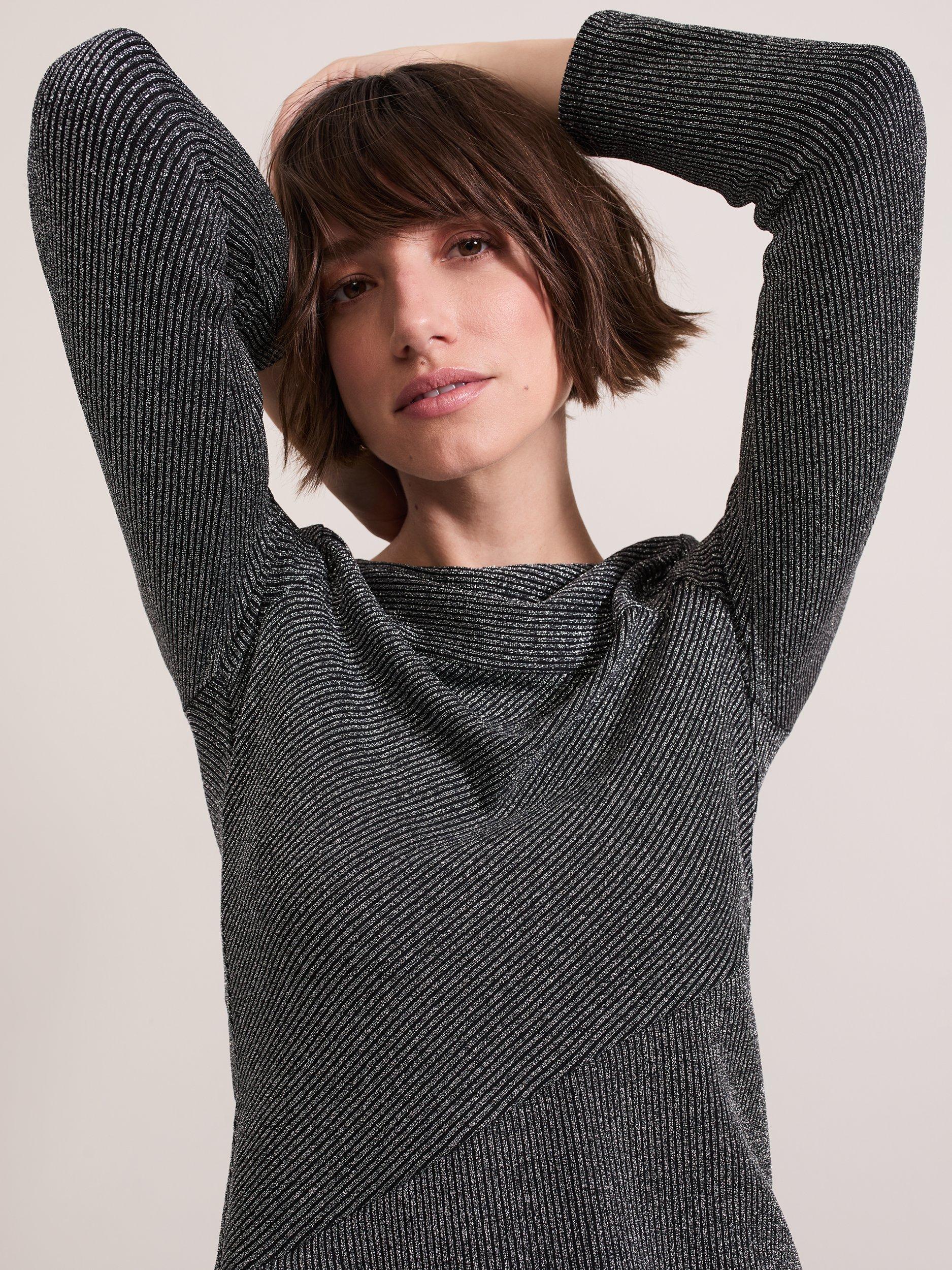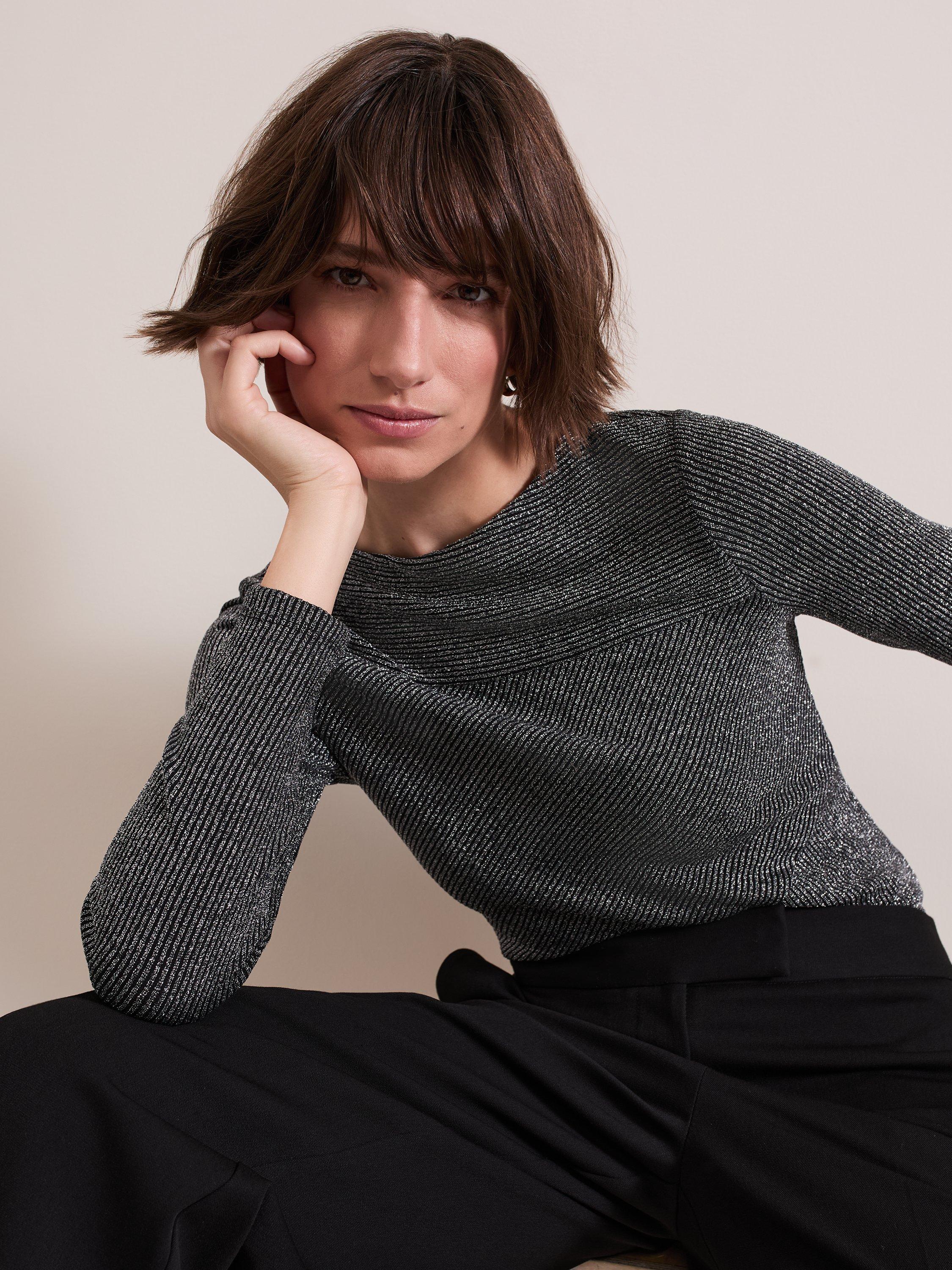 Designed in with metallic thread detailing the Clarissa top features a feminine slash neckline and seam detailing. With long sleeves and a ribbed texture throughout this top is the perfect style to add some sophisticated sparkle to your favourite outfits.