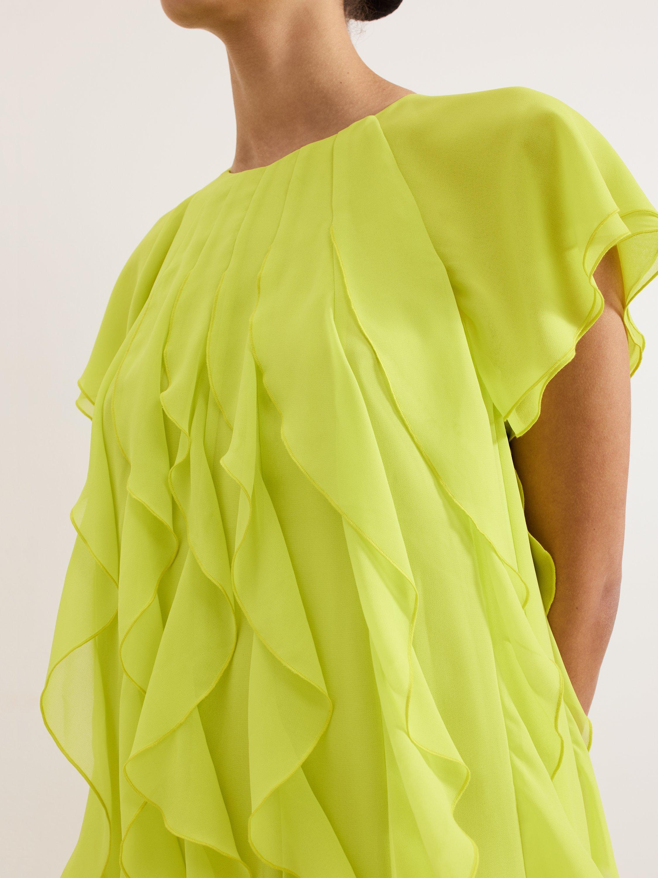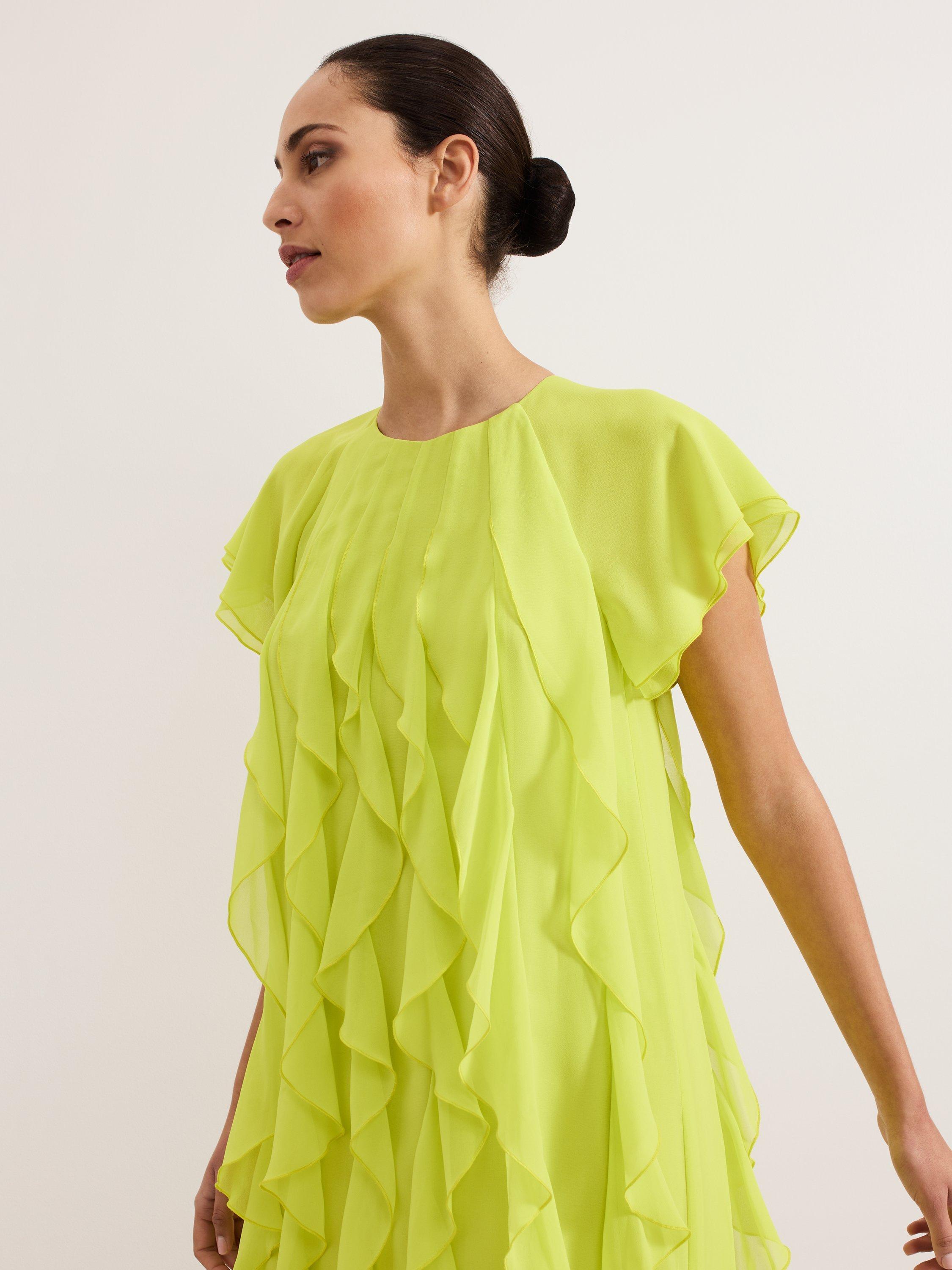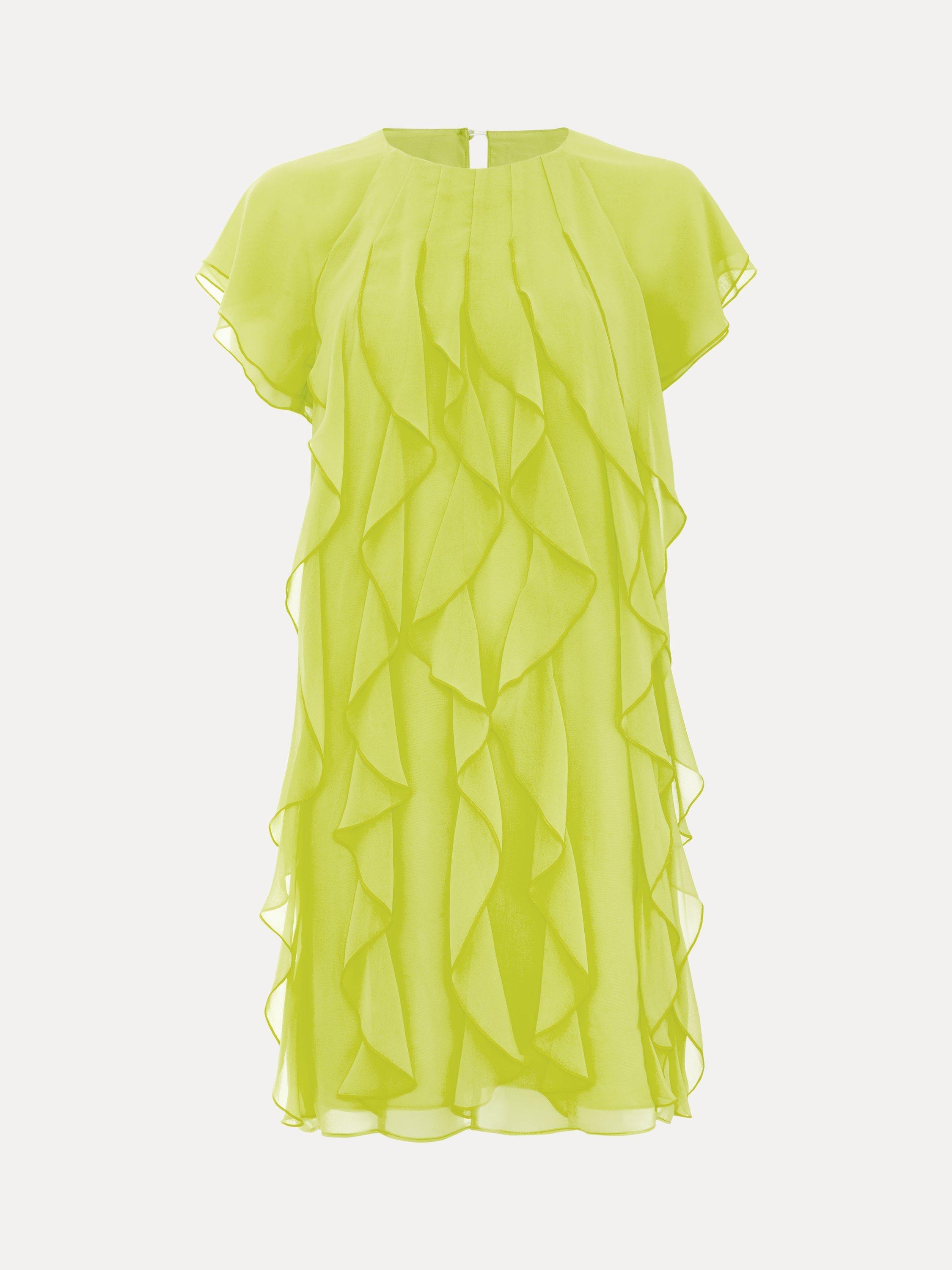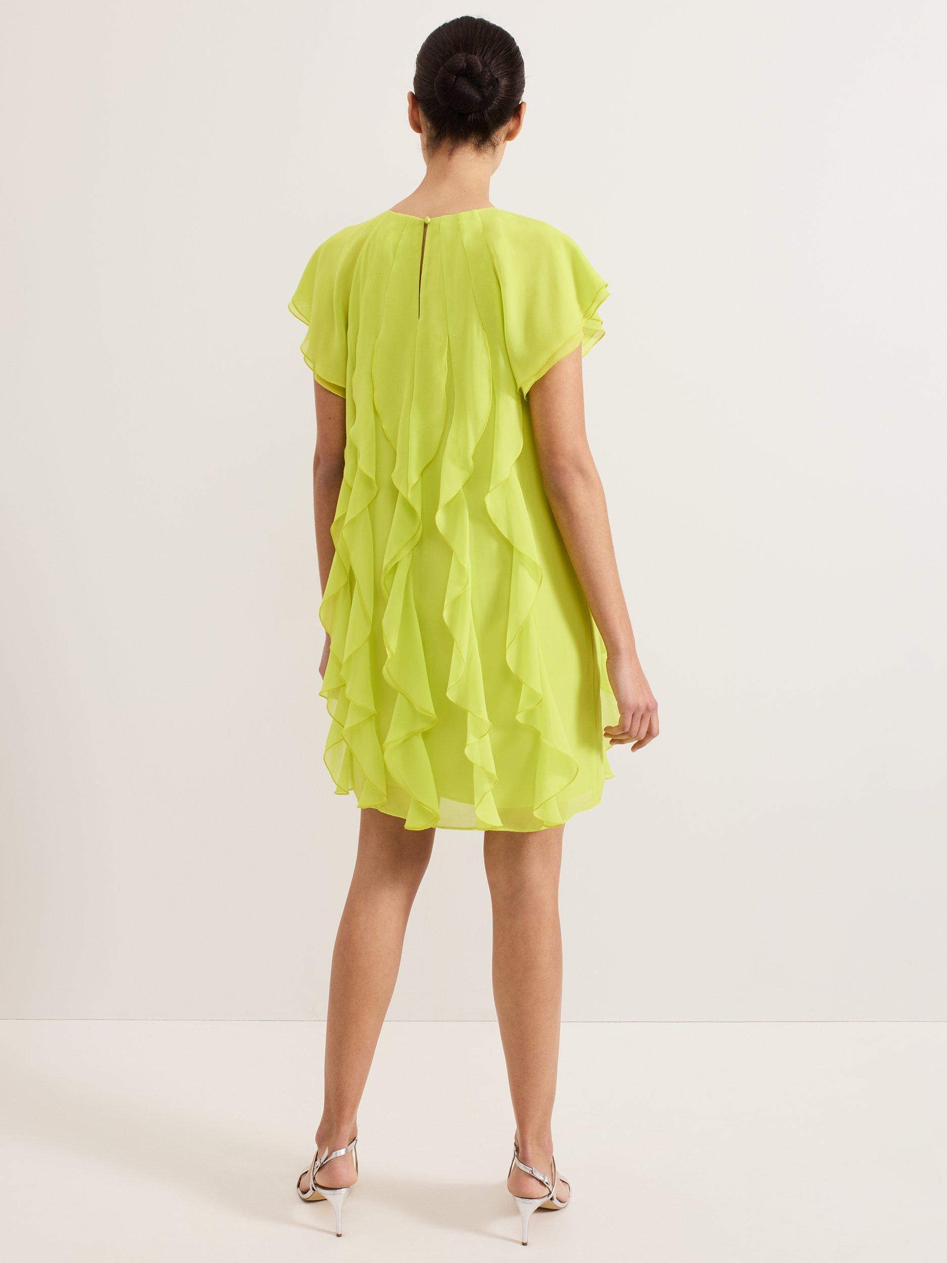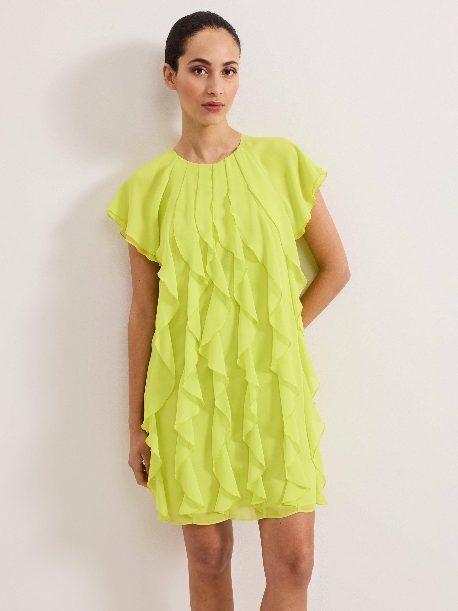 The perfect playful mini. This vibrant shift dress seamlessly blends comfort and style and is perfect for adding a pop of colour into your wardrobe. All over ruffle detailing provides a fun, feminine edge. Style with heels or flats for an effortless summer look.