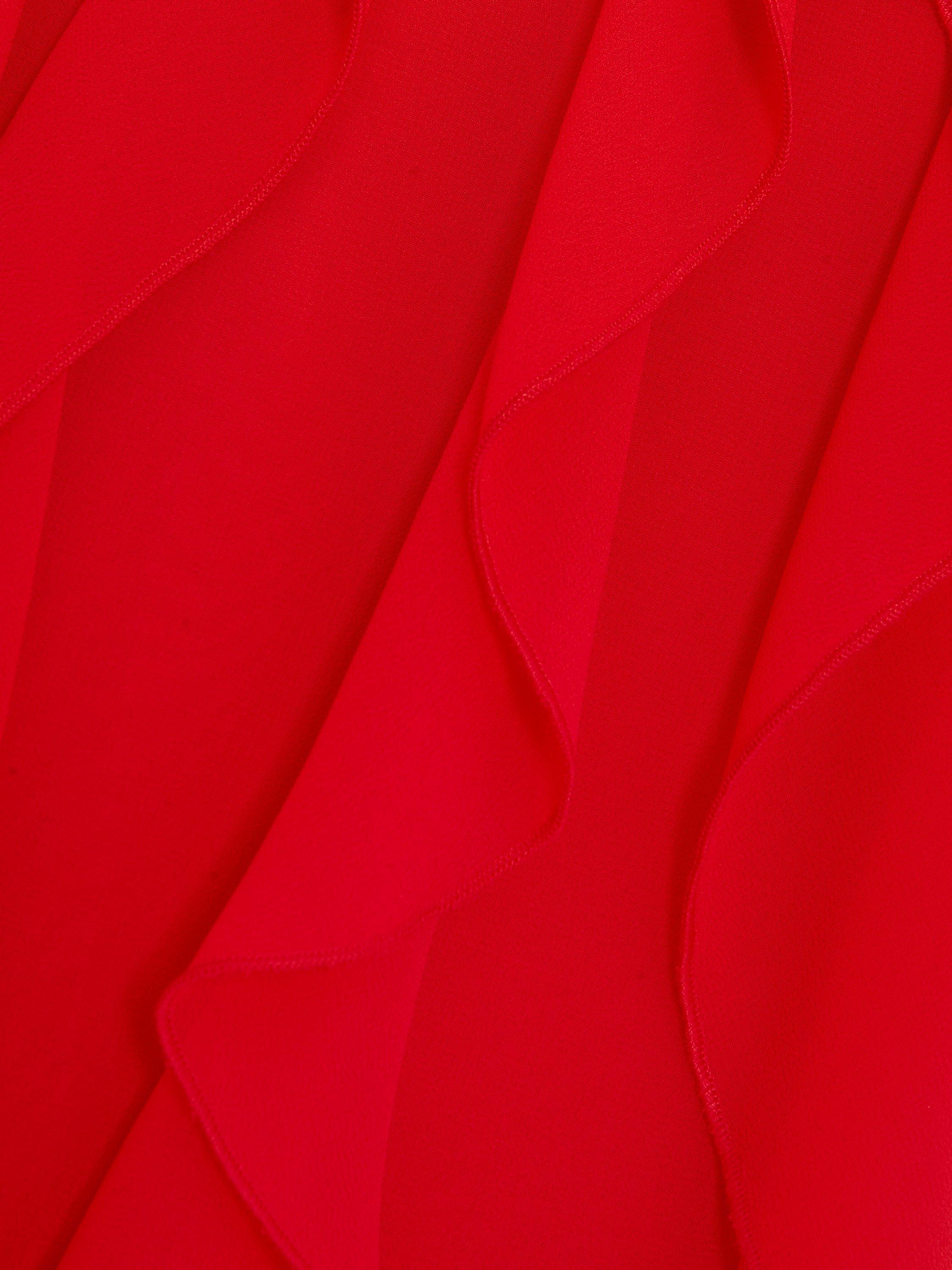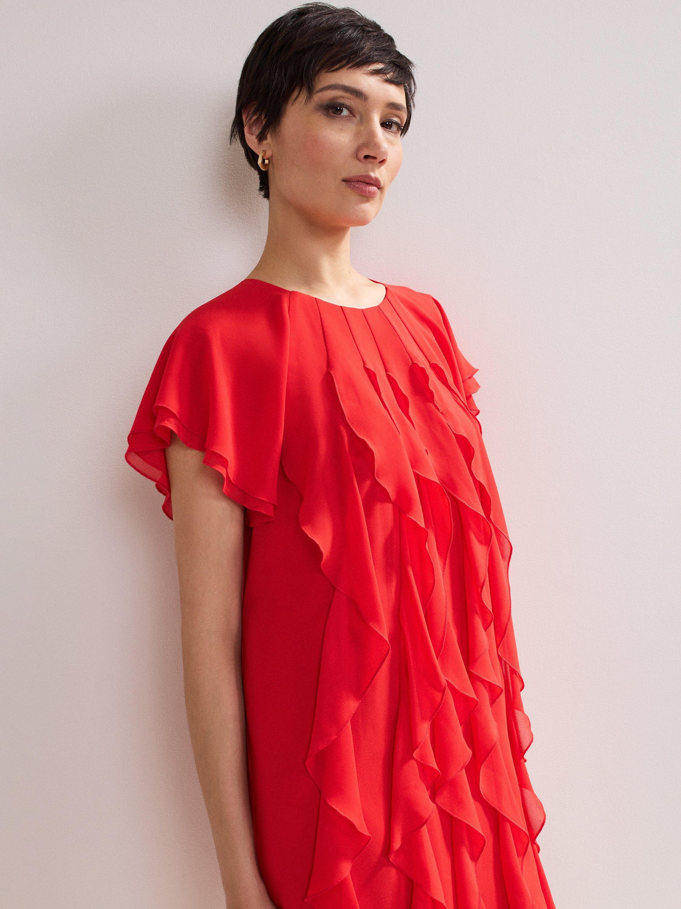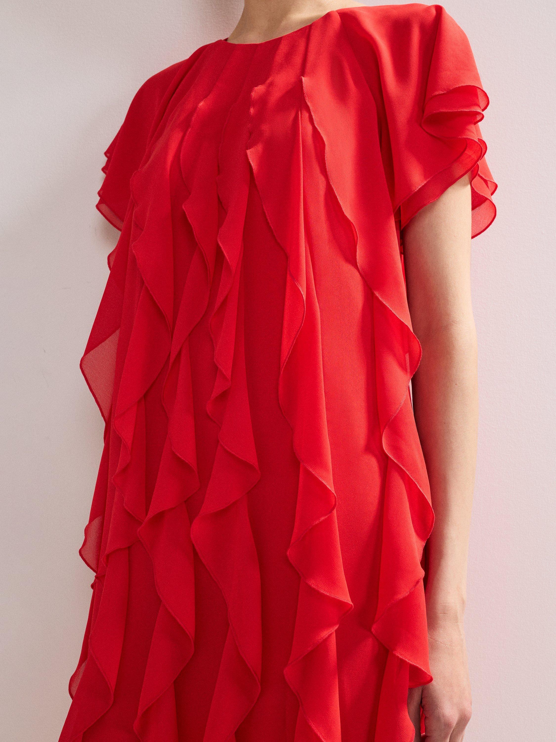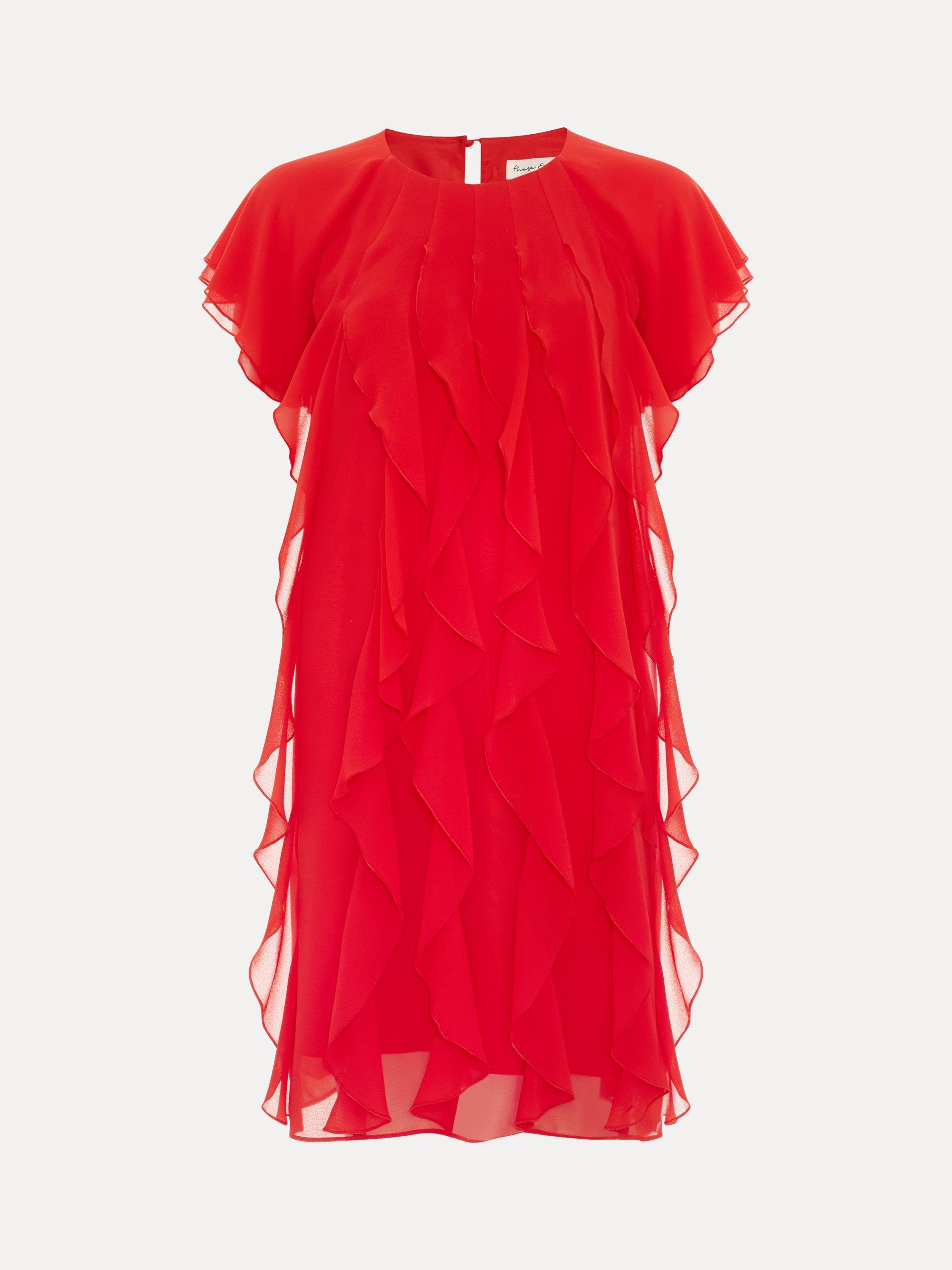 The perfect playful mini. This vibrant shift dress seamlessly blends comfort and style and is perfect for adding a pop of colour into your wardrobe. All over ruffle detailing provides a fun, feminine edge that is perfect for styling with heels for all your summer events.