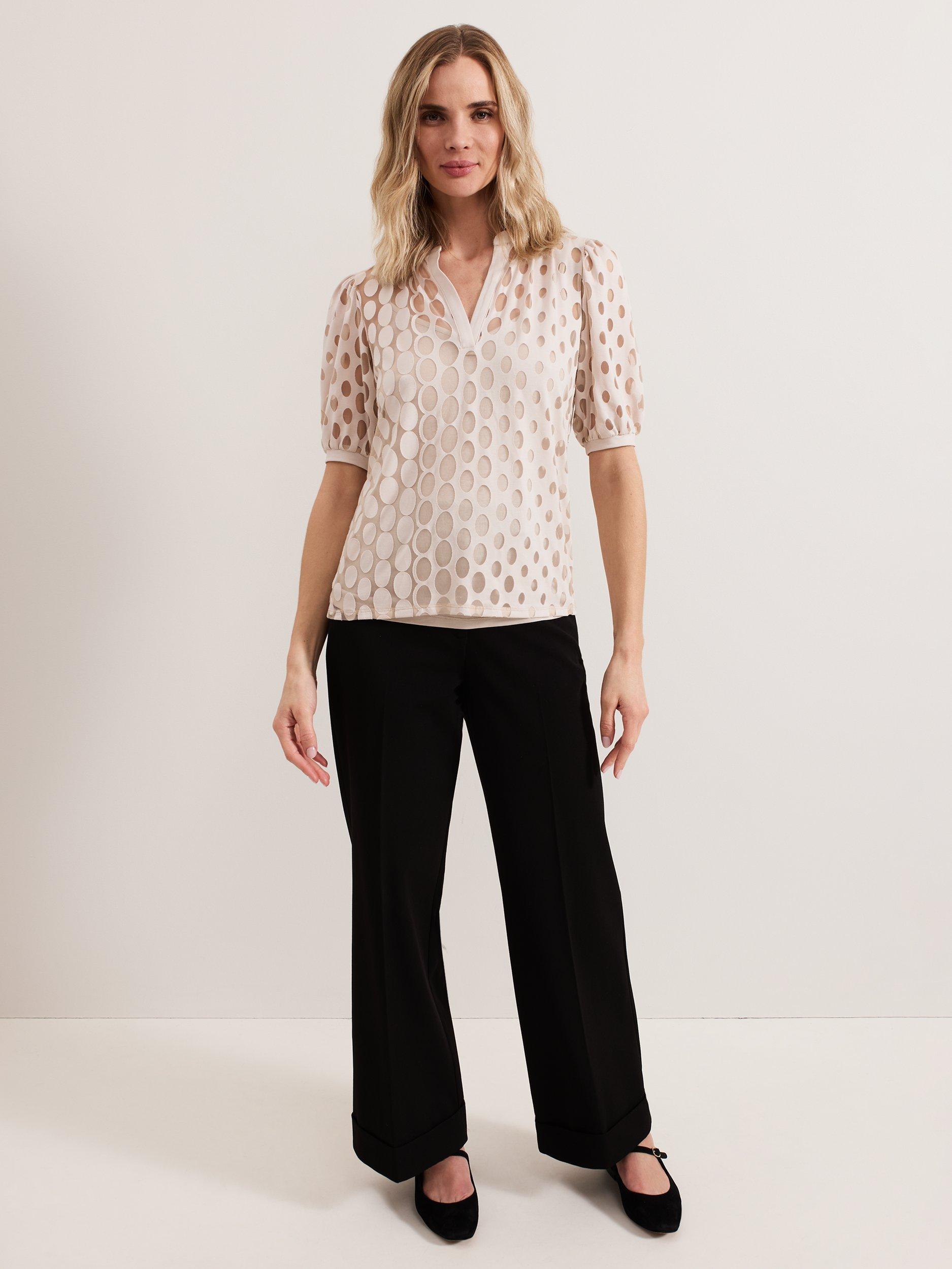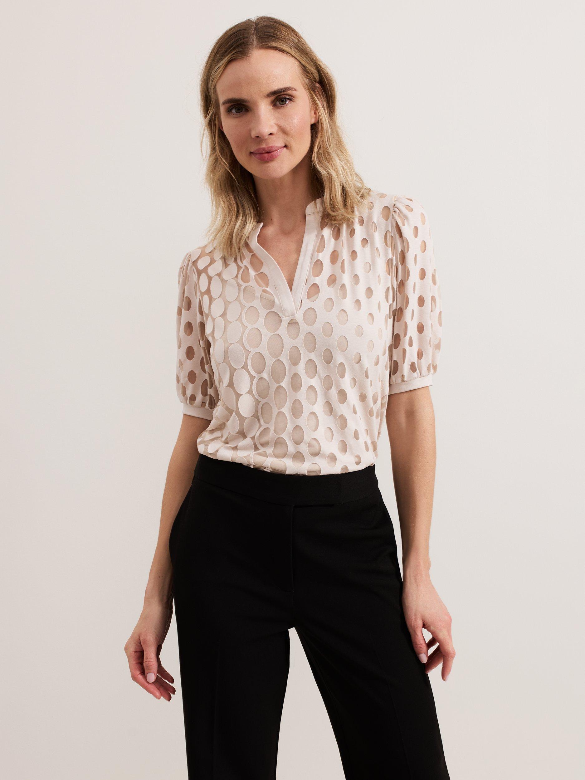 Simple yet stylish, the Cleo top is perfect for enhancing casual looks. Elevated by subtly puffed sleeves the semi-sheer geometric design is guaranteed to add a touch of modern style to your overall outfit.