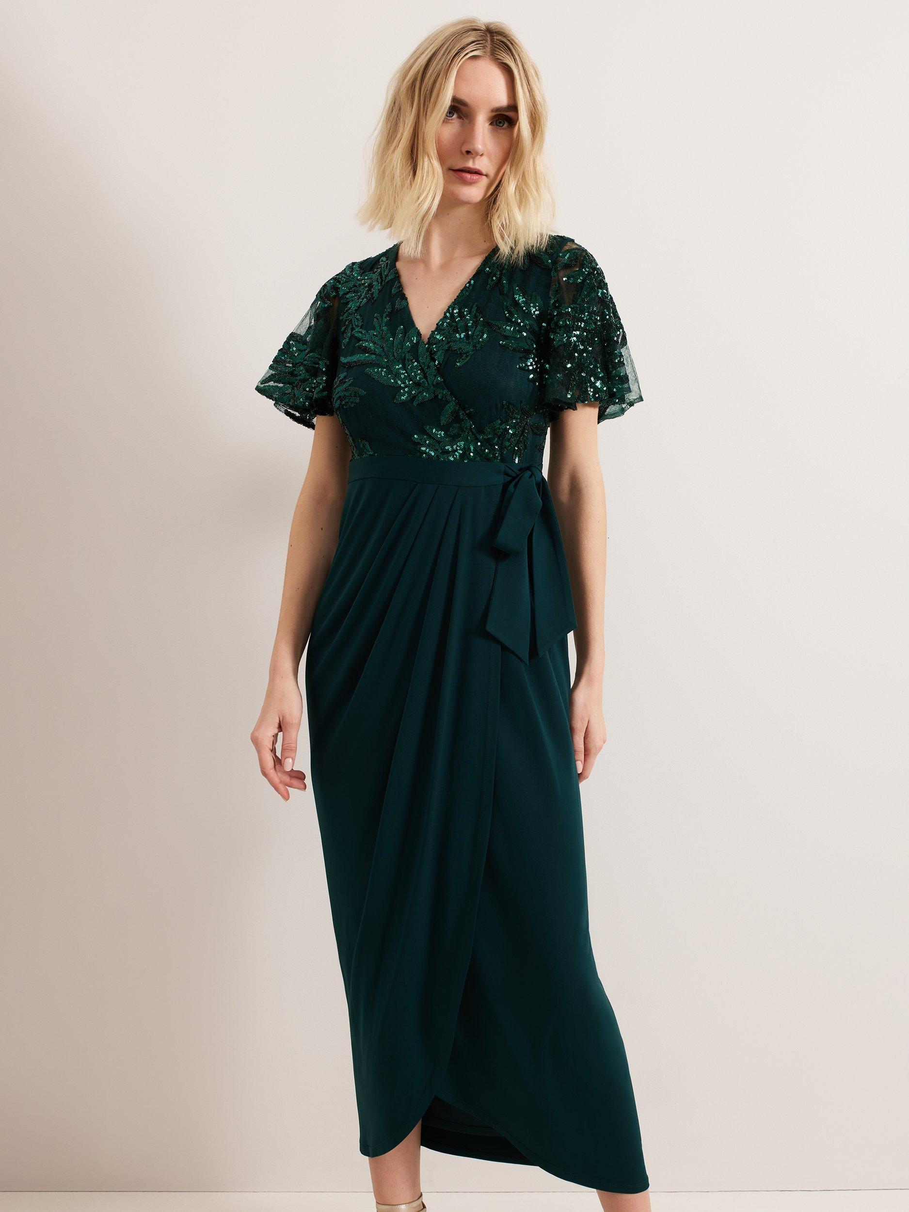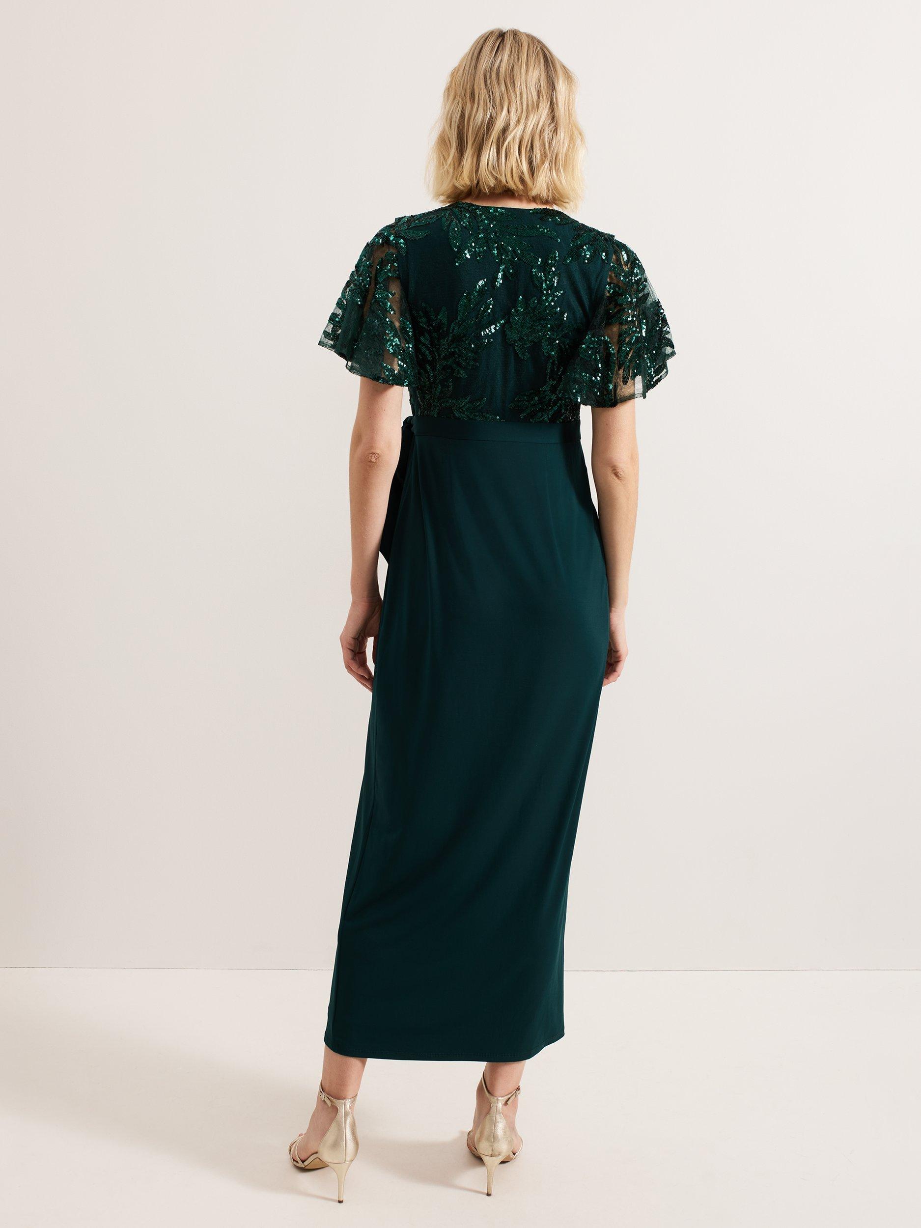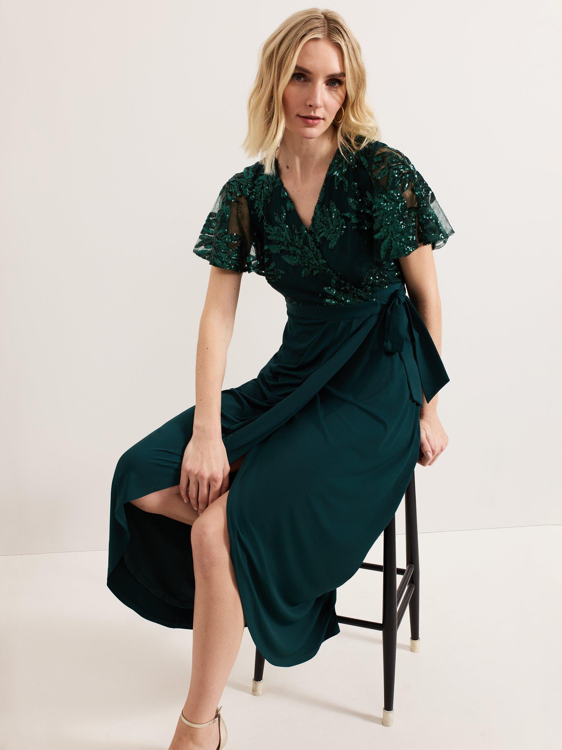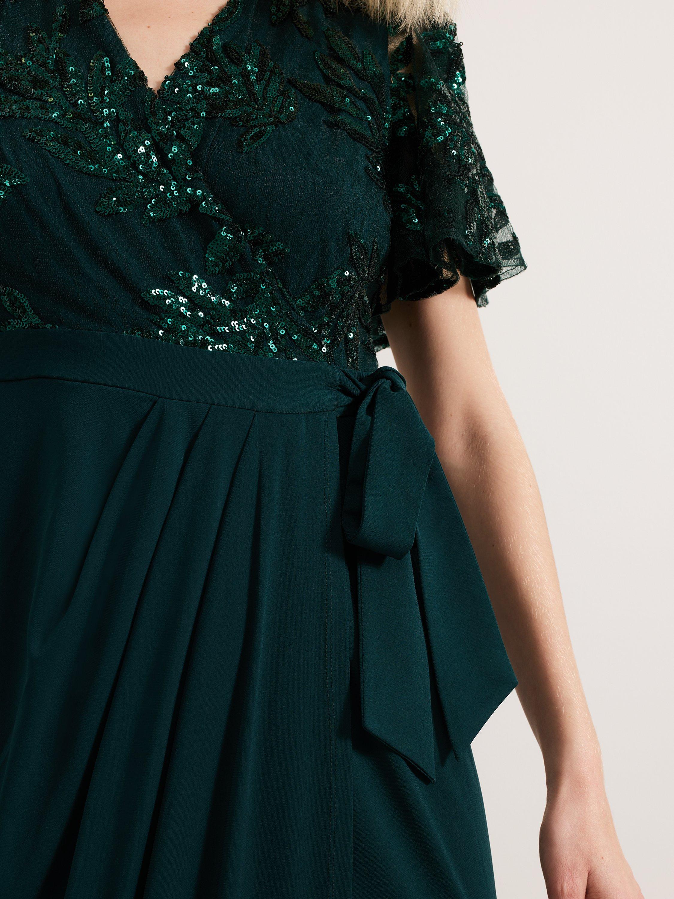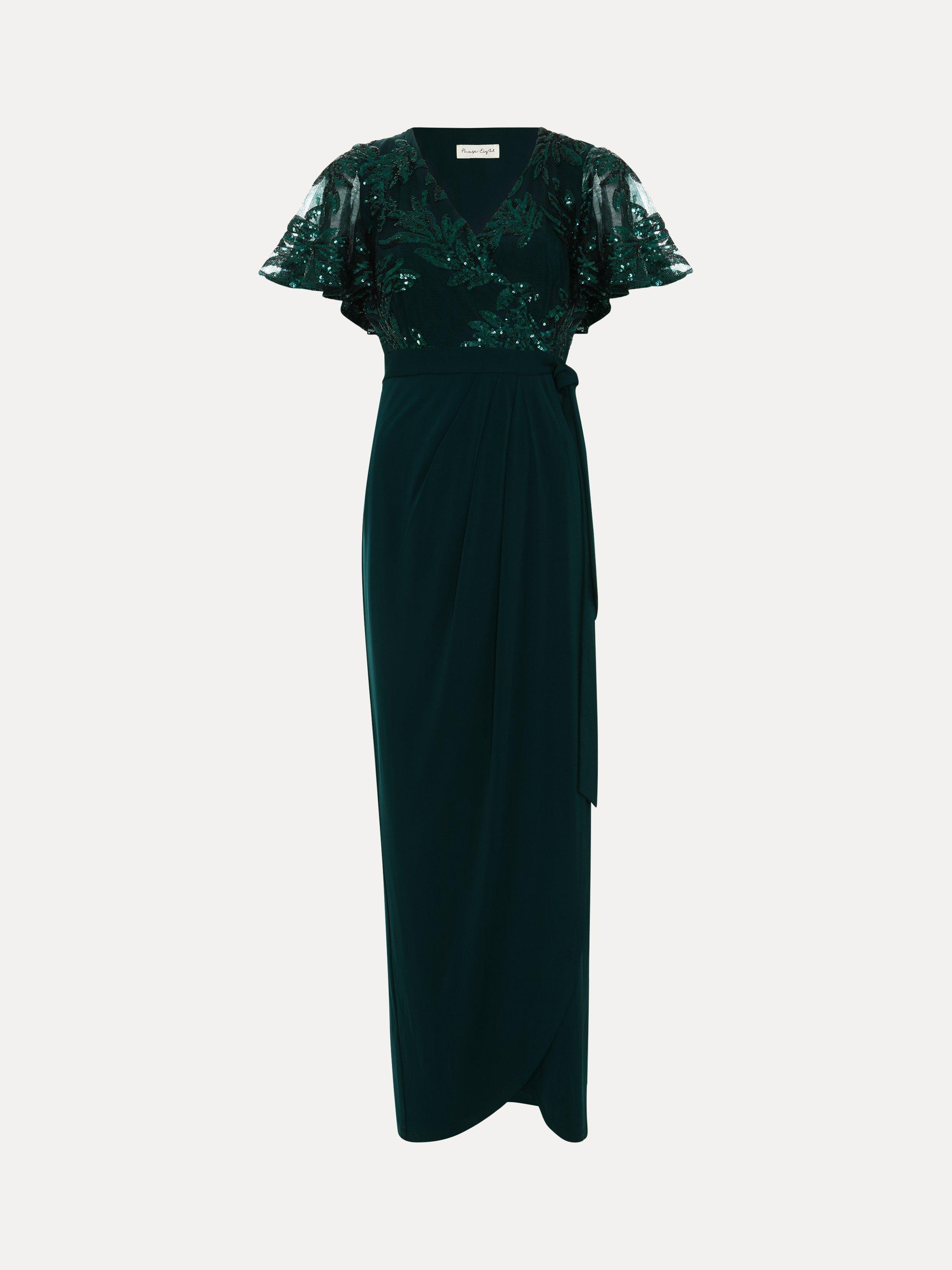 Elegant with a touch of glamour, the Minty dress will become a staple in your wardrobe. Embellished with sequin detailing at the wrap bodice, this dress features semi-sheer bell sleeves for a feminine touch. Falling through to a maxi skirt silhouette that skims your figure it makes the perfect choice for a black tie event.