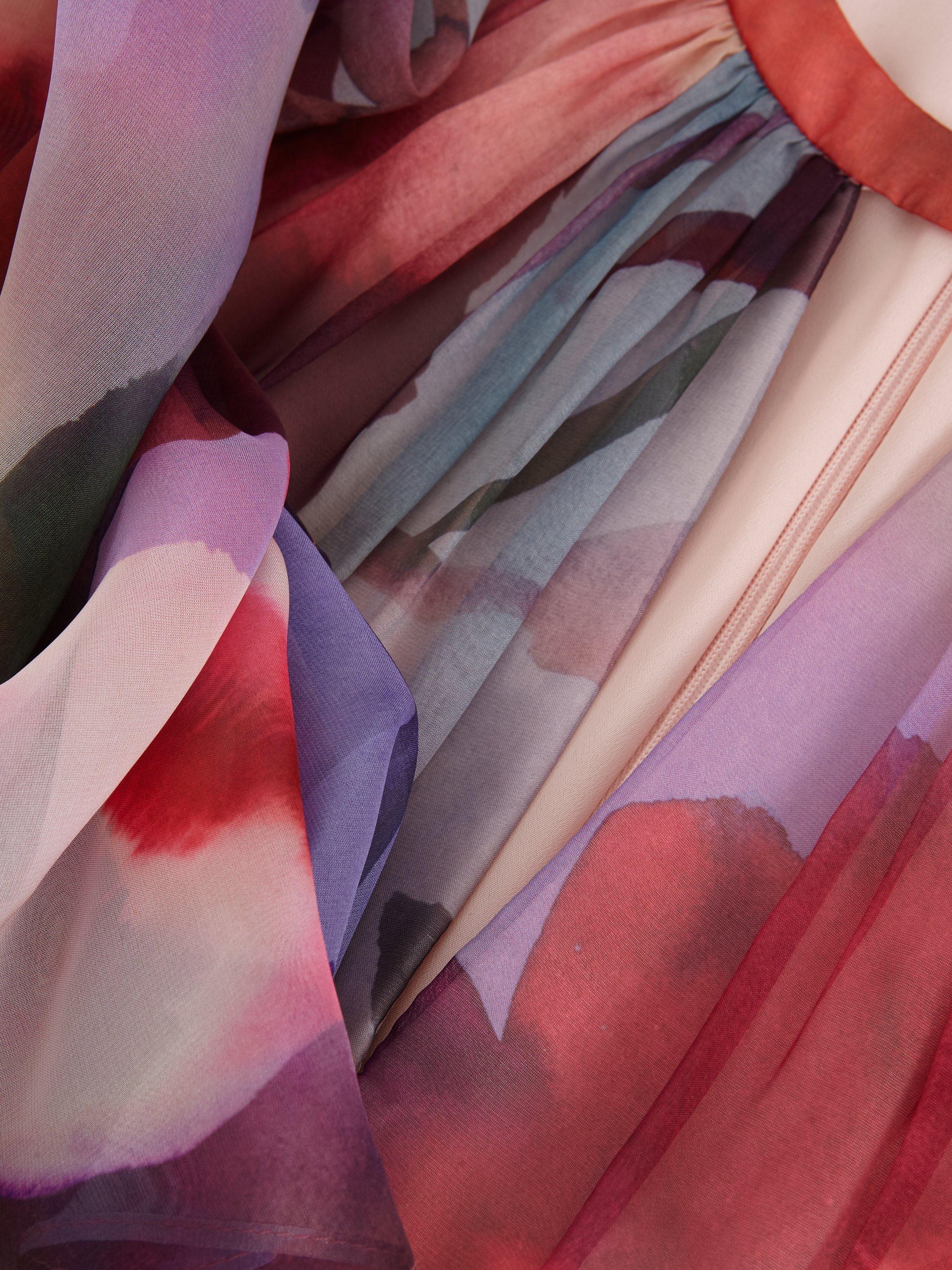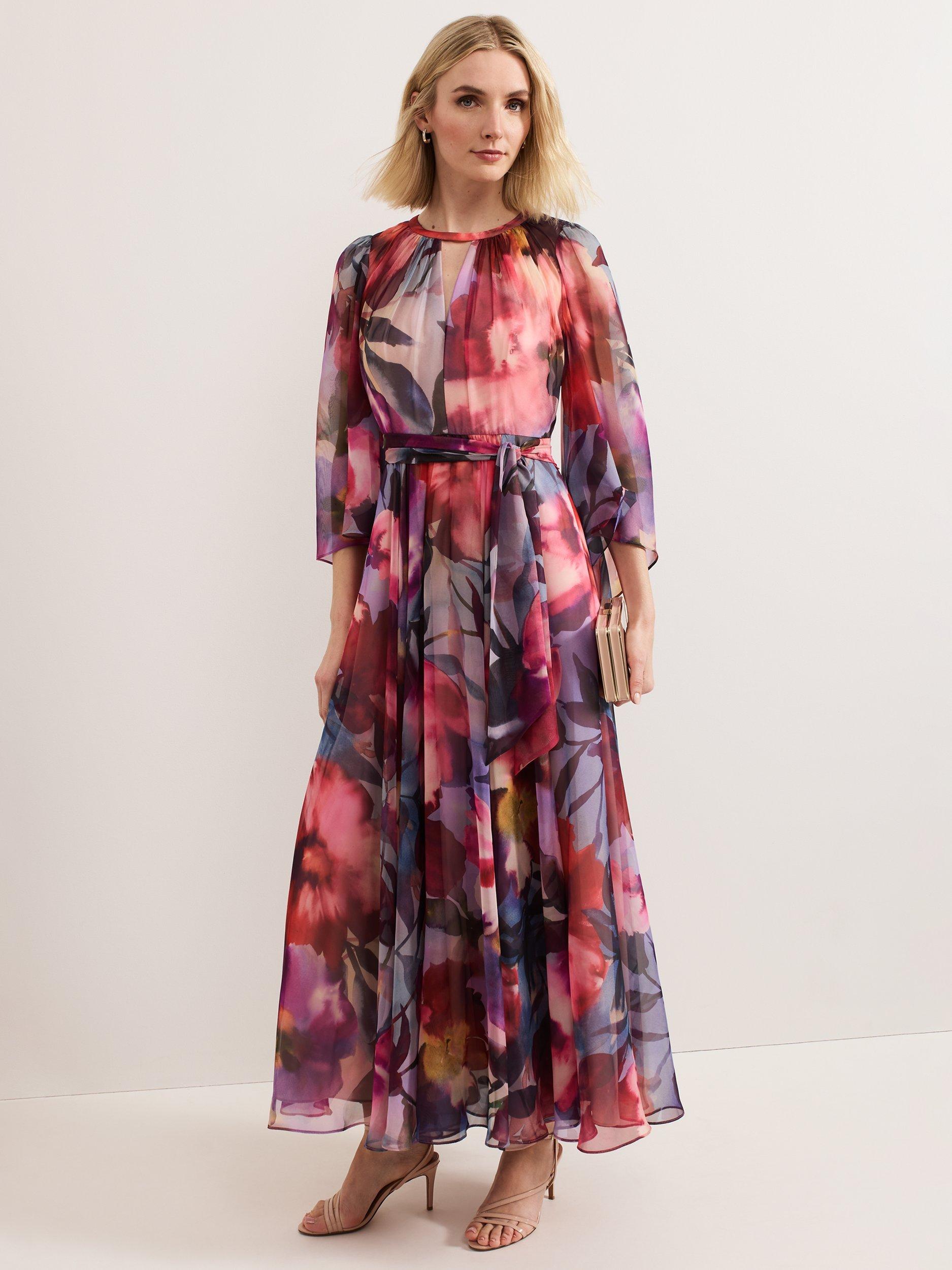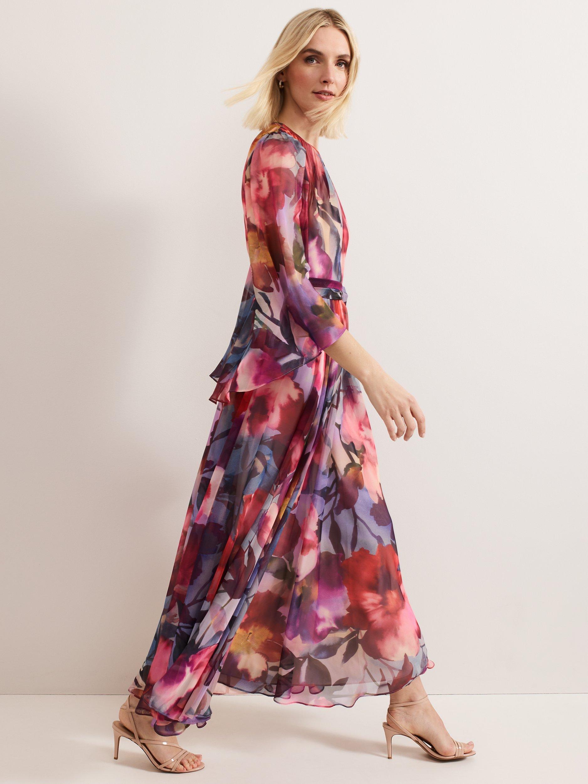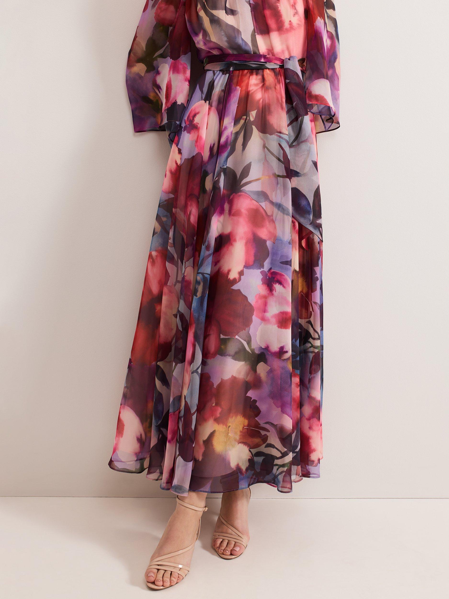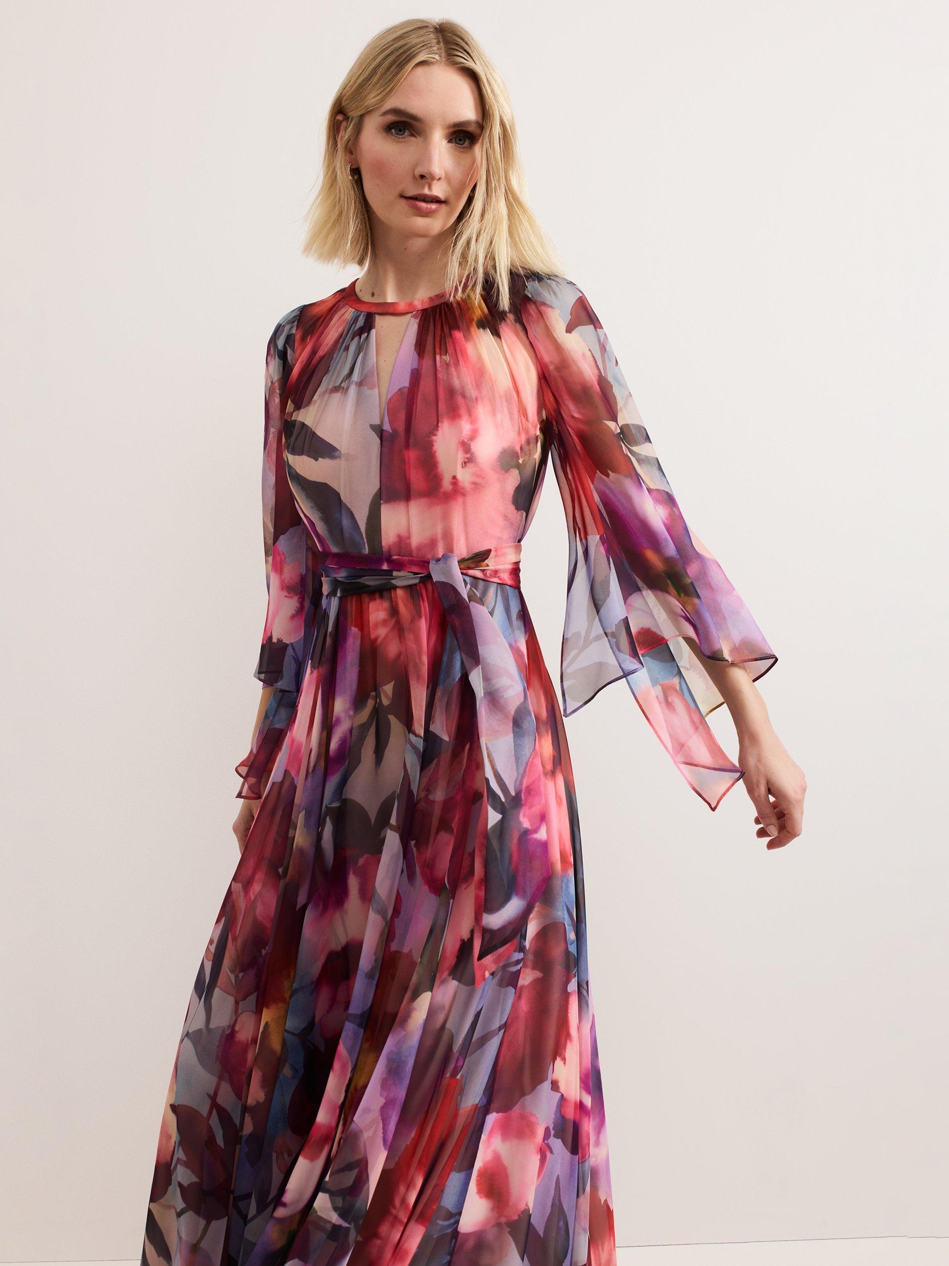 Make an entrance in the Willma dress. Featuring a statement floral print, this maxi dress is effortlessly elegant. Flowing semi-sheer sleeves create a cape effect that adds dimension whilst the tie belt subtly highlights your figure. Style with simple heels for a feminine event look.