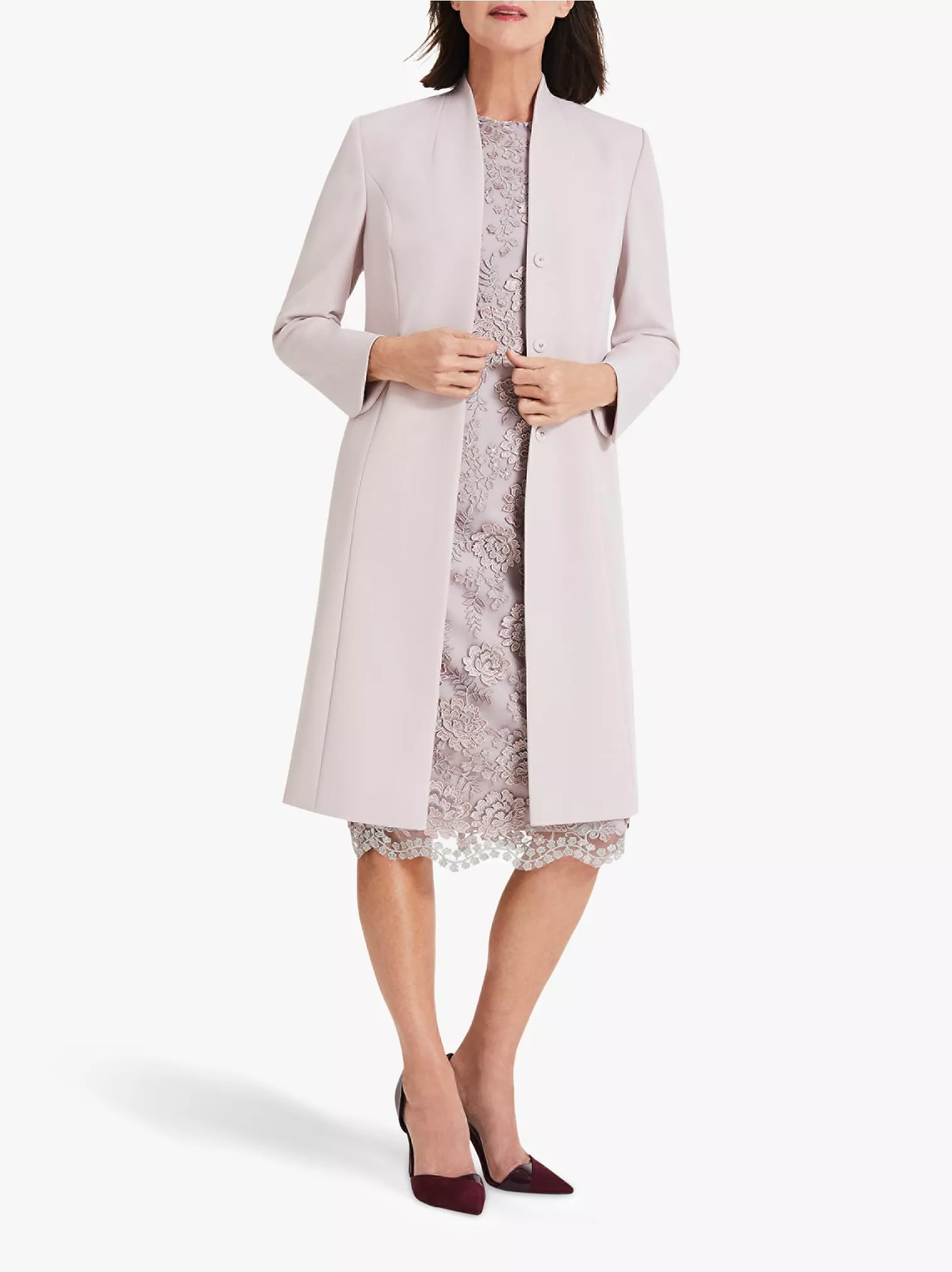 This long occasion jacket is the perfect finish to occasion dresses. Designed with long sleeves and flattering seams that contour curves, this style fastens with concealed buttons and has a decorative bow at the back for a pretty finish.