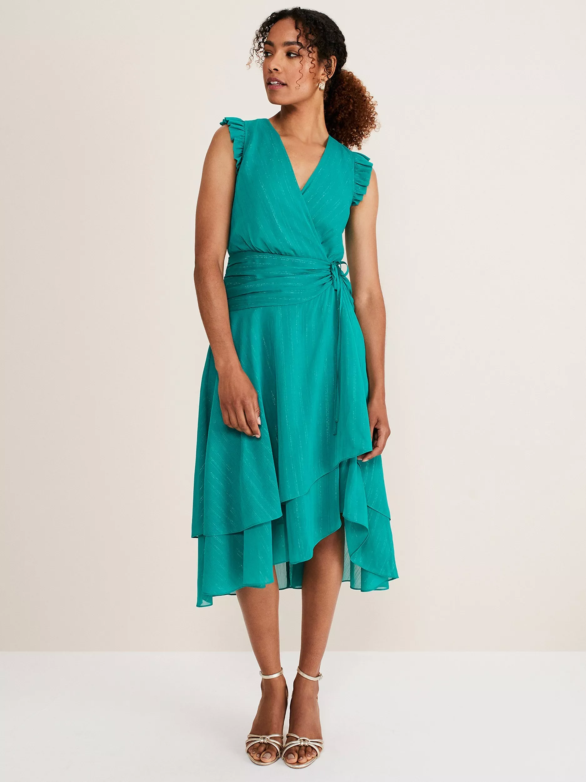 Easy to wear in an A-line silhouette with tiers, this midi dress by Phase Eight boasts a linear look with its subtle shimmering stripes.