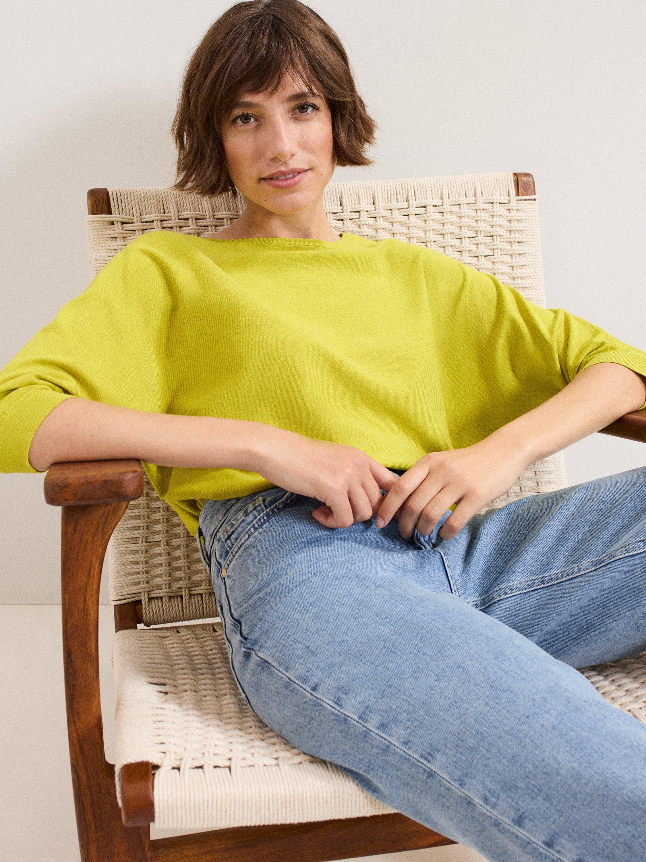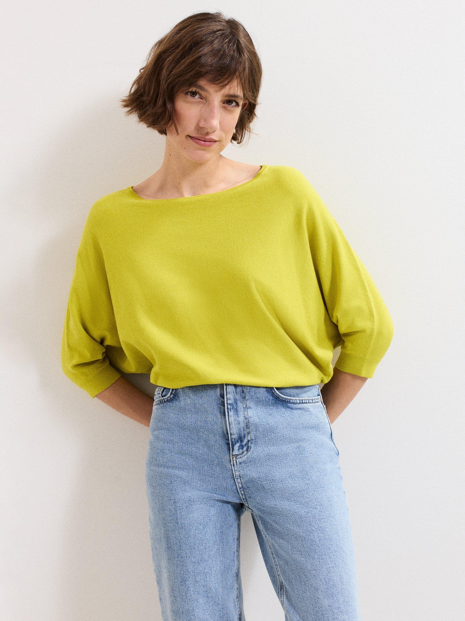 A relaxed fit fine knit jumper designed with batwing 3/4 length sleeves and a slash neckline. This style is perfect to wear with any of your separates.
