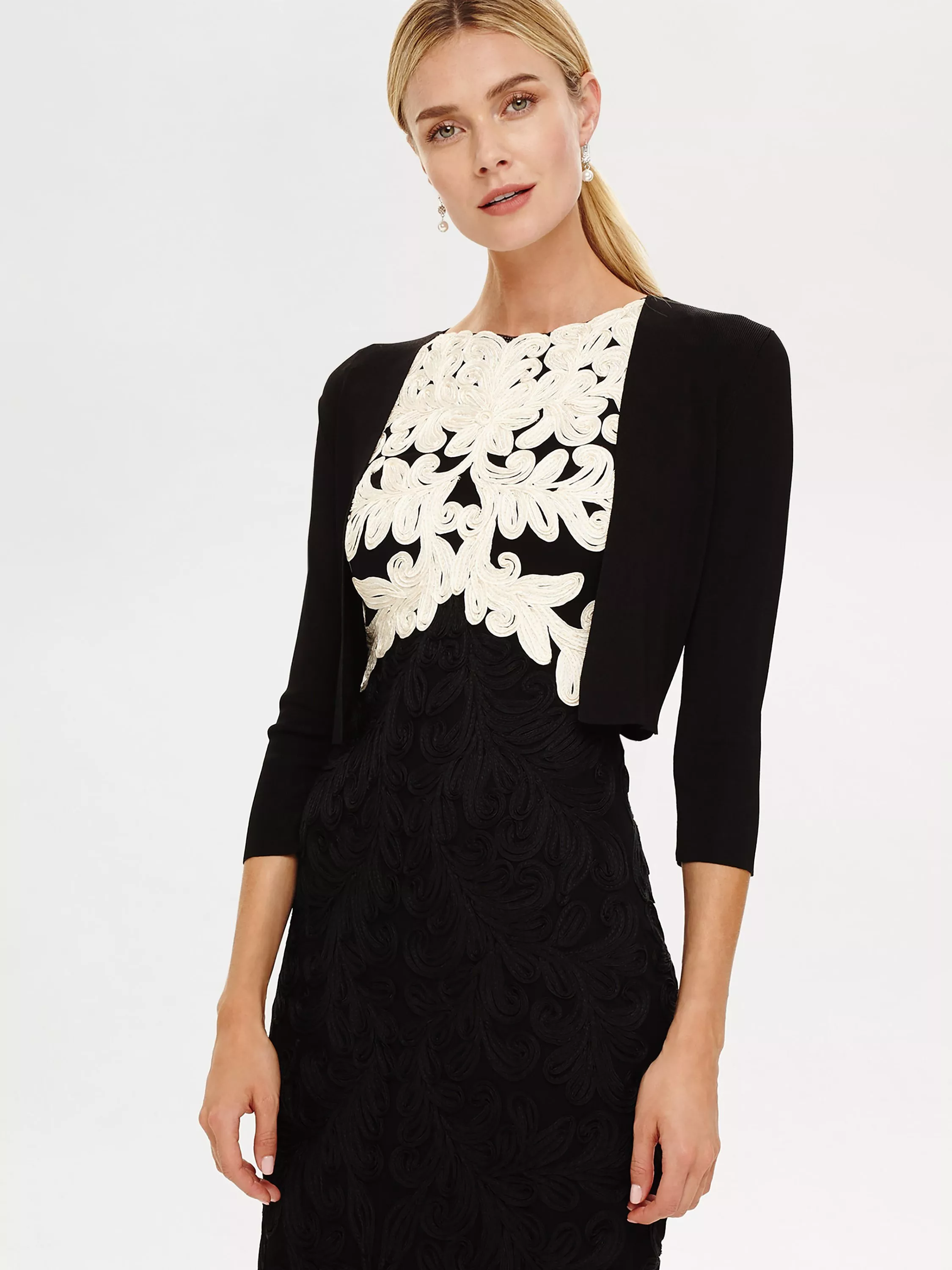 Add smart structure to your outfitting with this cropped jacket from Phase Eight. Designed from a lightweight fabric for easy layering, it's got front pleats at the shoulder and contemporary 3/4 sleeves. A collarless design, it's finished with a clean, boxy fit.