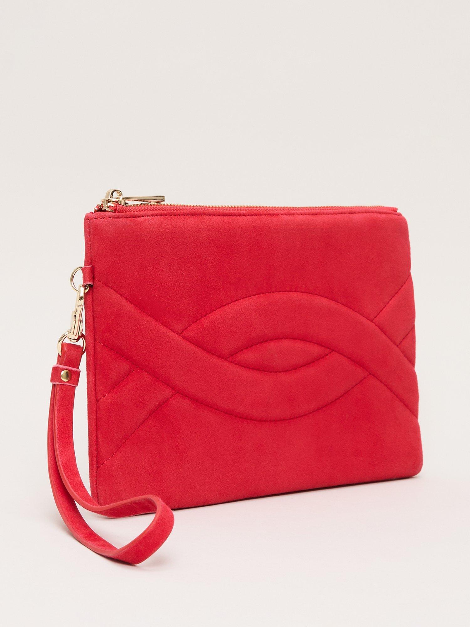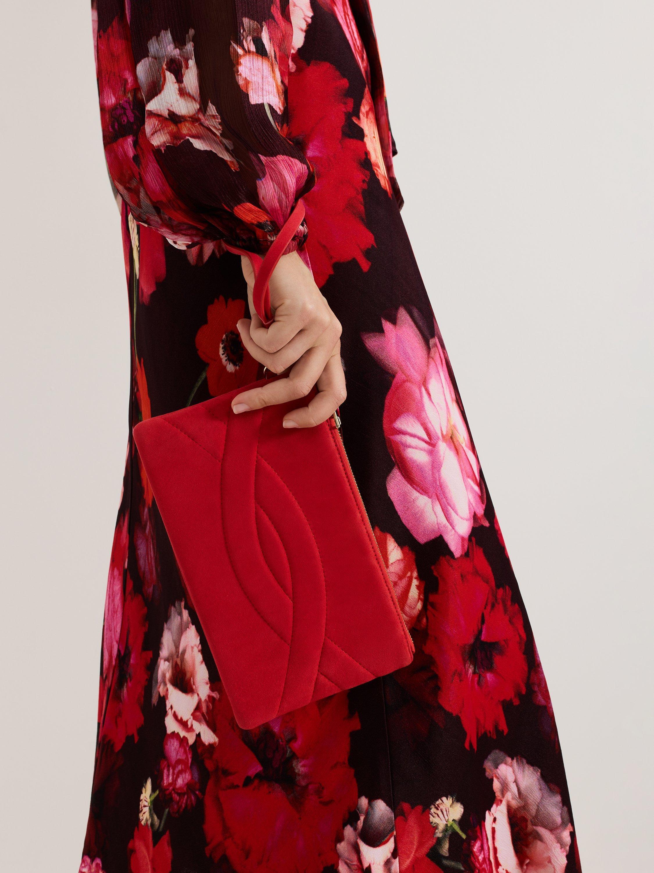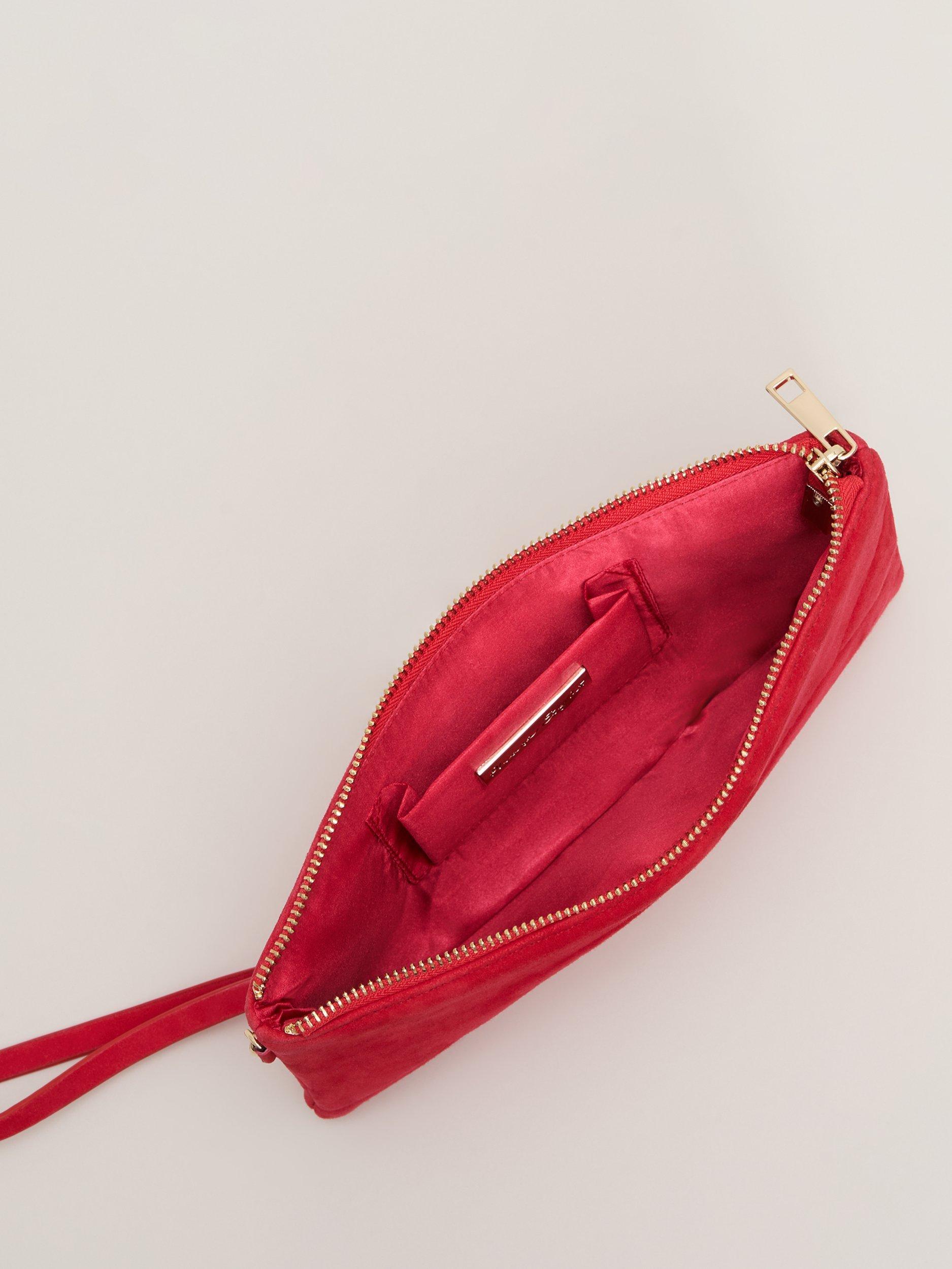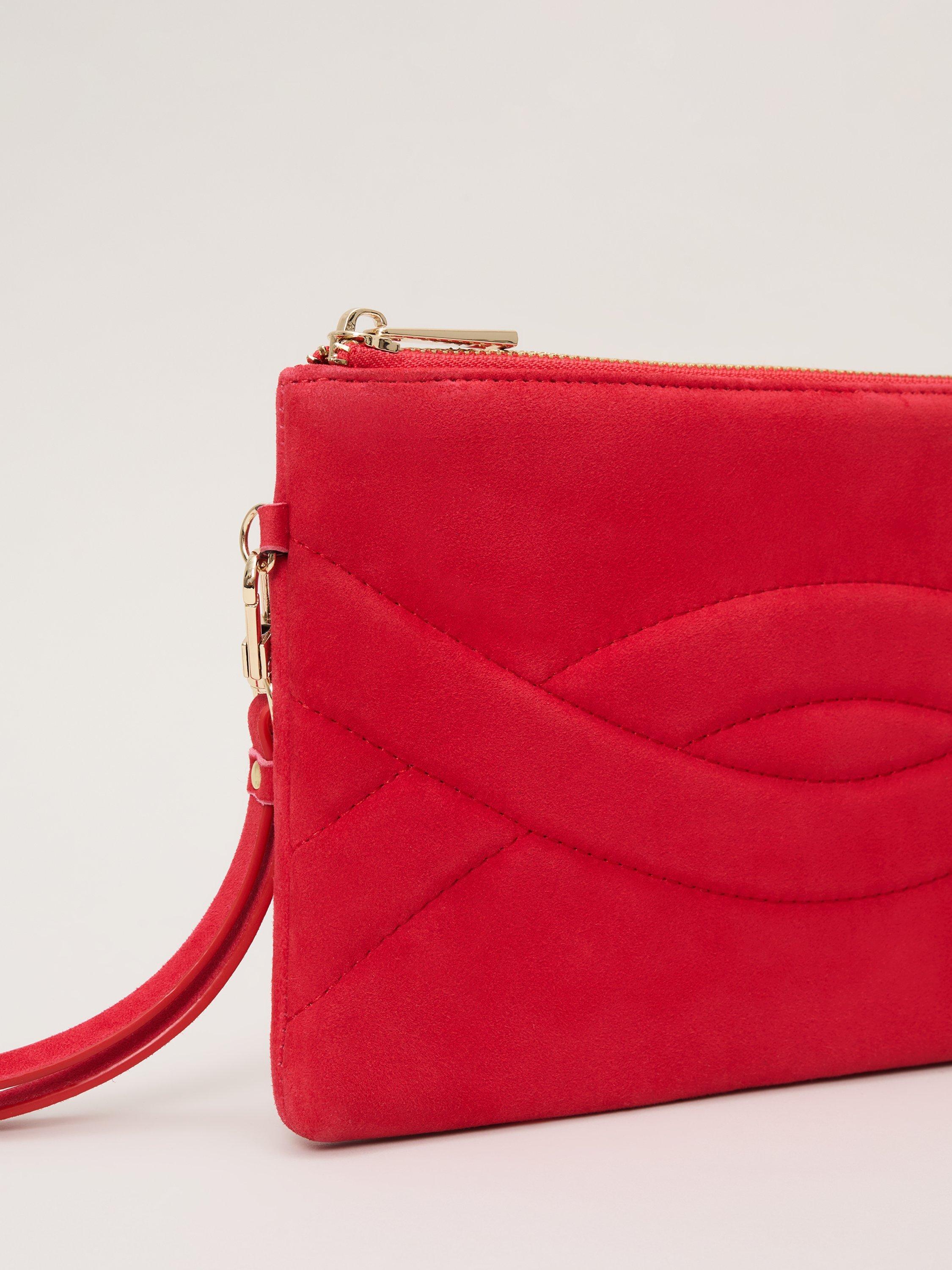 This suede clutch bag will add a pop of colour to all your event outfits. Perfect for carrying all your essentials either slip your hand through the cross over detail or use the thin wrist strap. Pair with matching suede heels for a coordinated look.