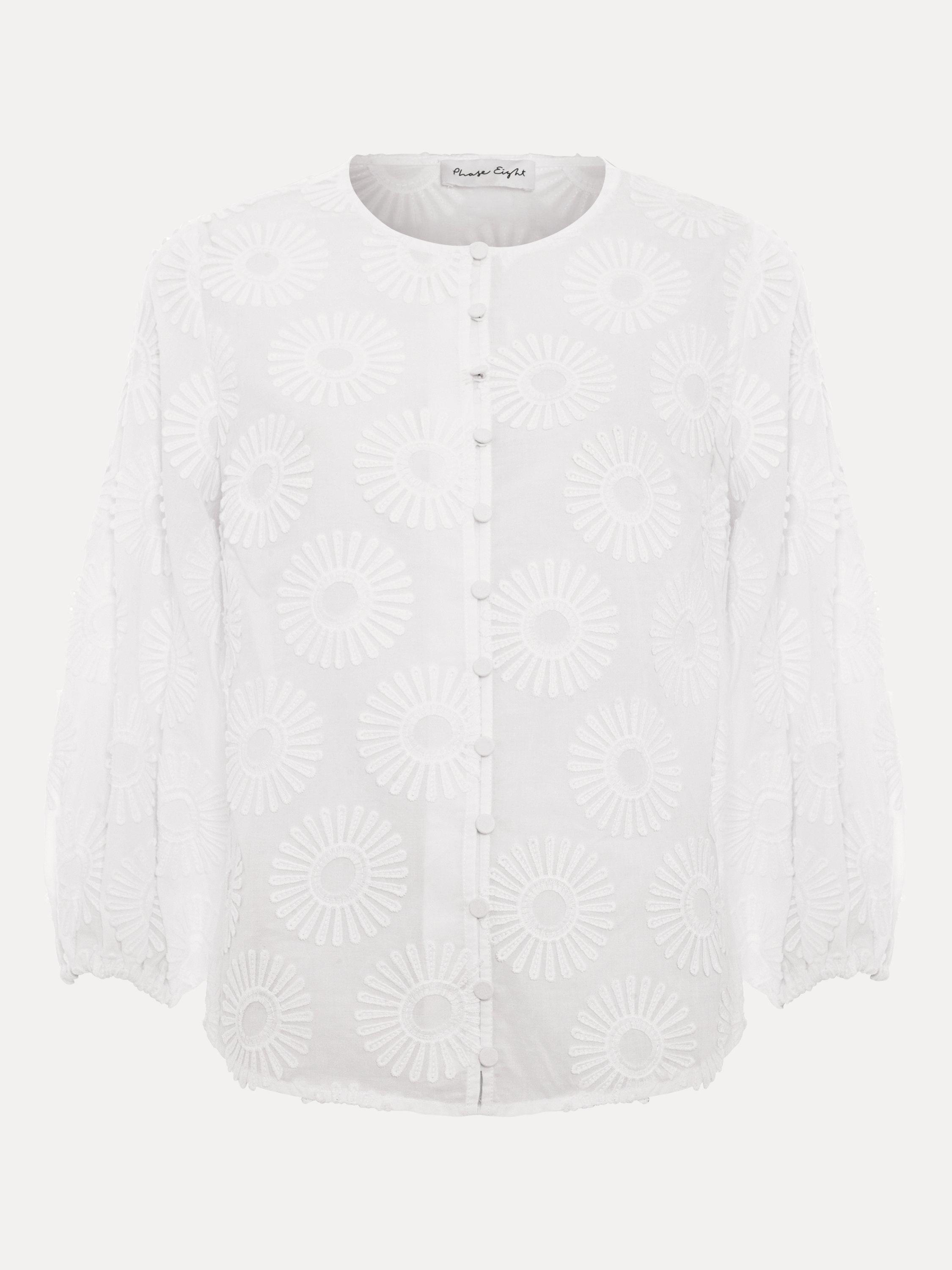 A versatile blouse for any occasion. Updated with a contemporary daisy print, this soft cotton style features blouson sleeves for subtle volume. We love to wear ours with relaxed trousers for everyday and dress up with matching accessories for evenings.