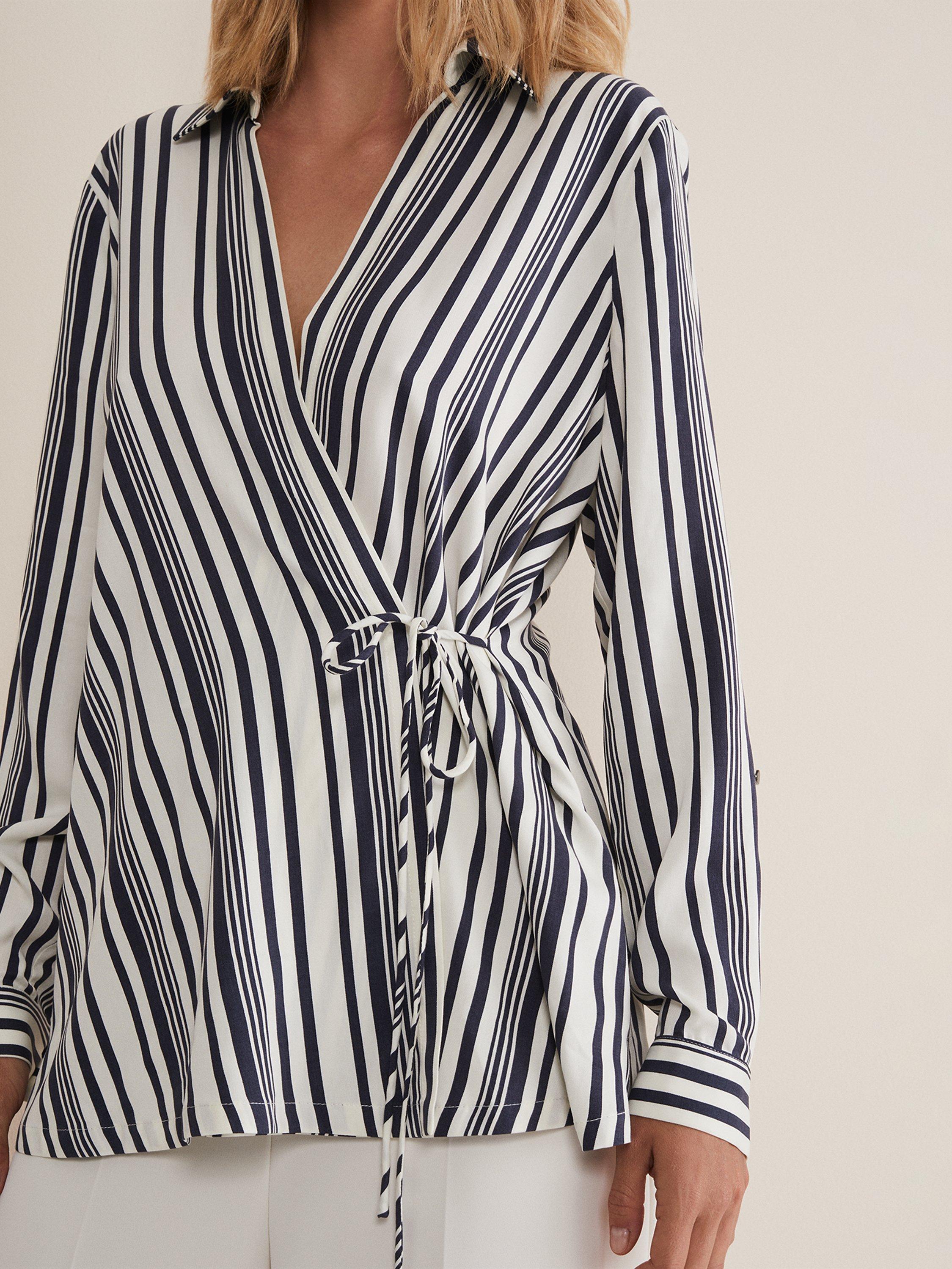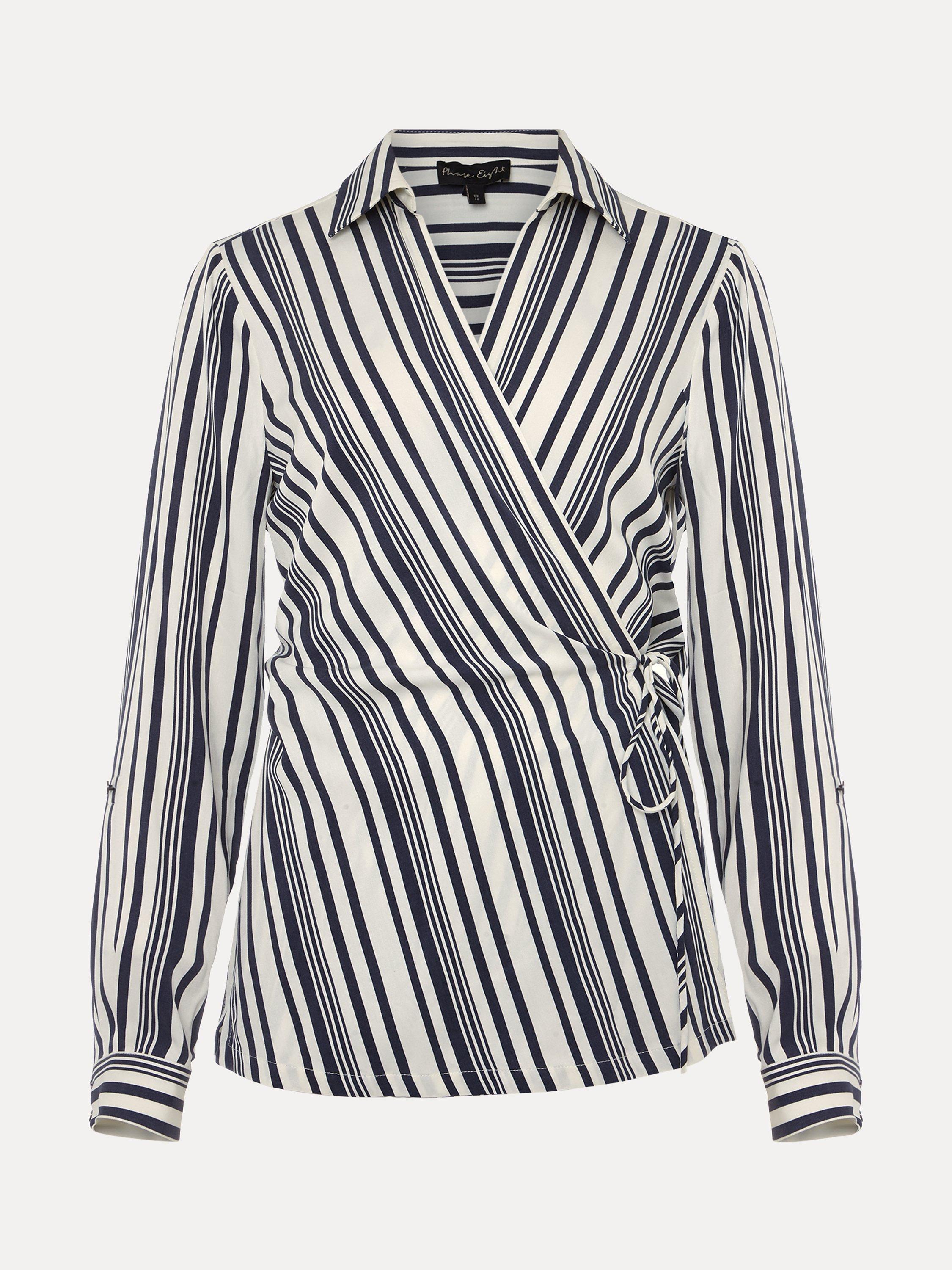 Phase EightDalila Striped Wrap Blouse, Carbon/Ivory