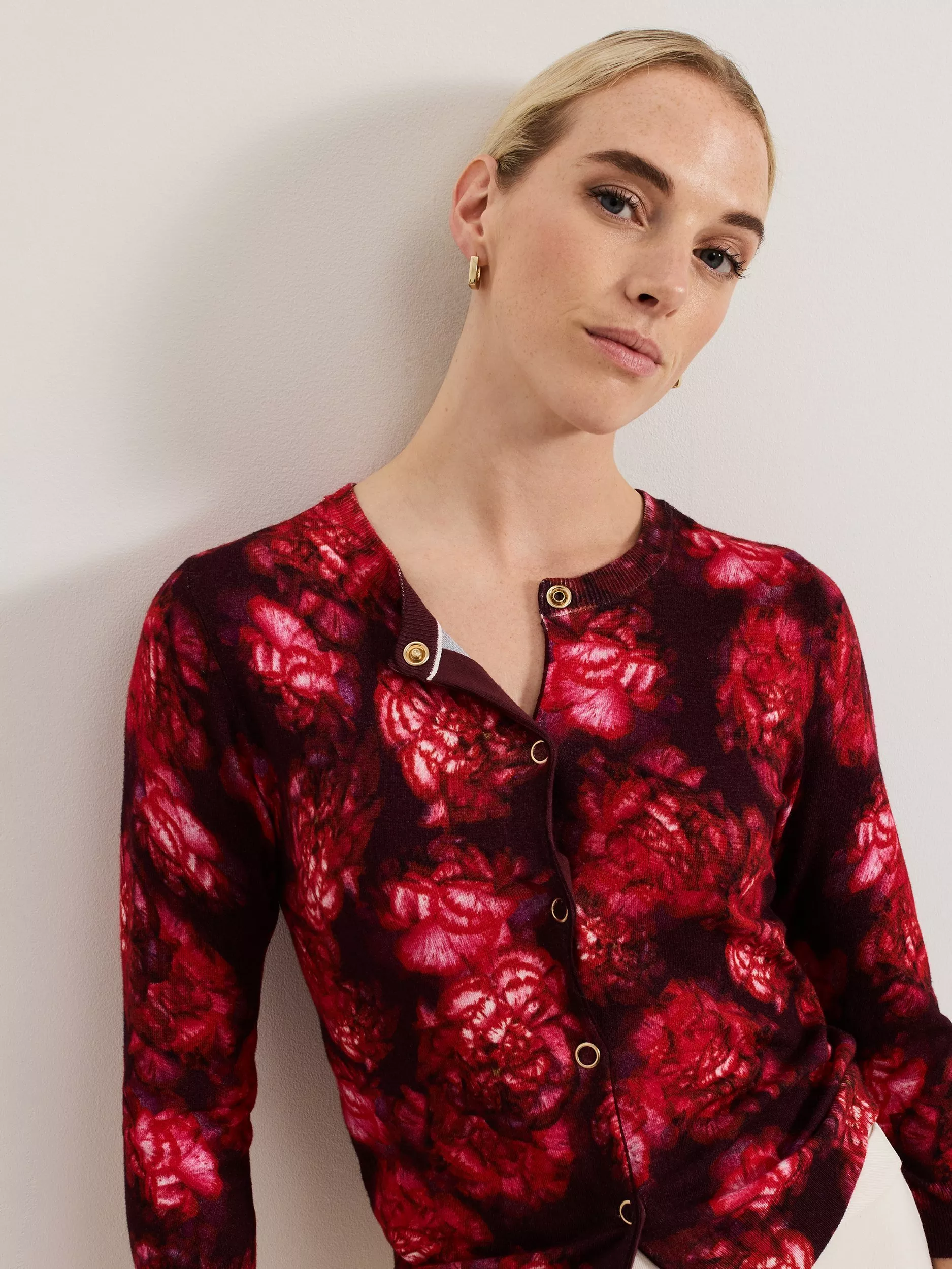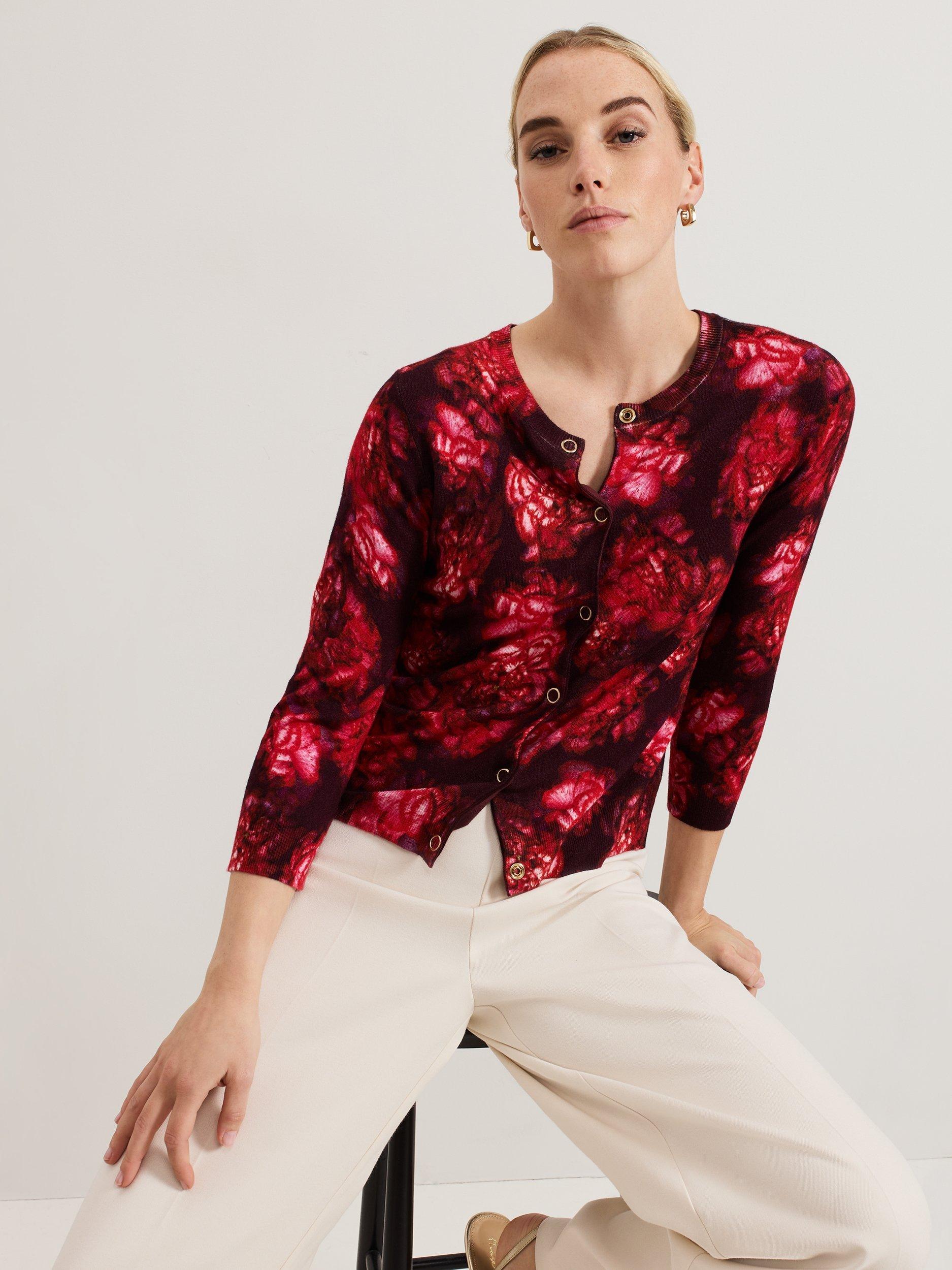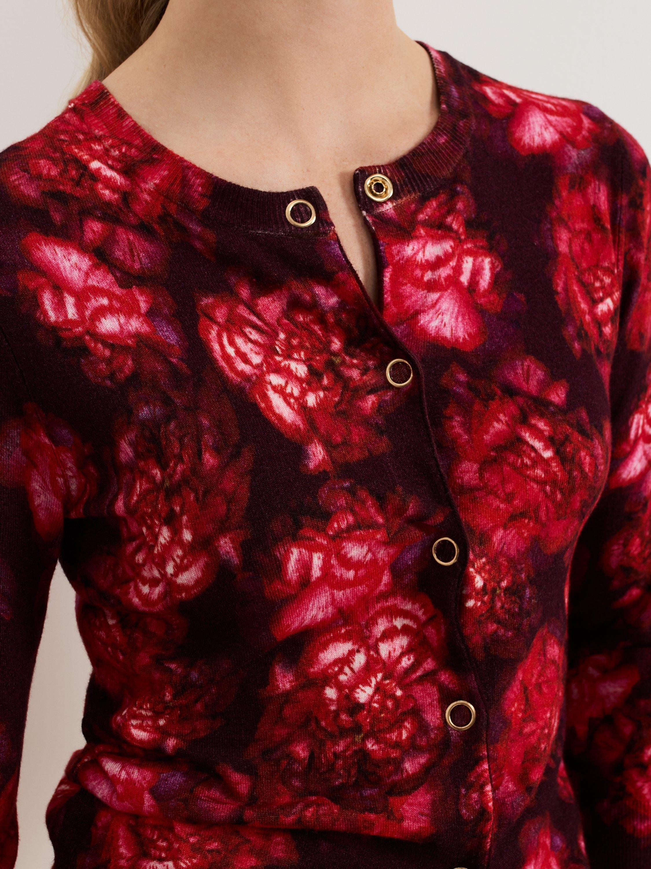 The Dani cardigan will bring a touch of feminine statement to all your outfits. With a stunning new in-house print, this cardigan is finished with gold popper buttons for a contemporary update. We wear ours with tailored trousers and flats for a work to weekend look.