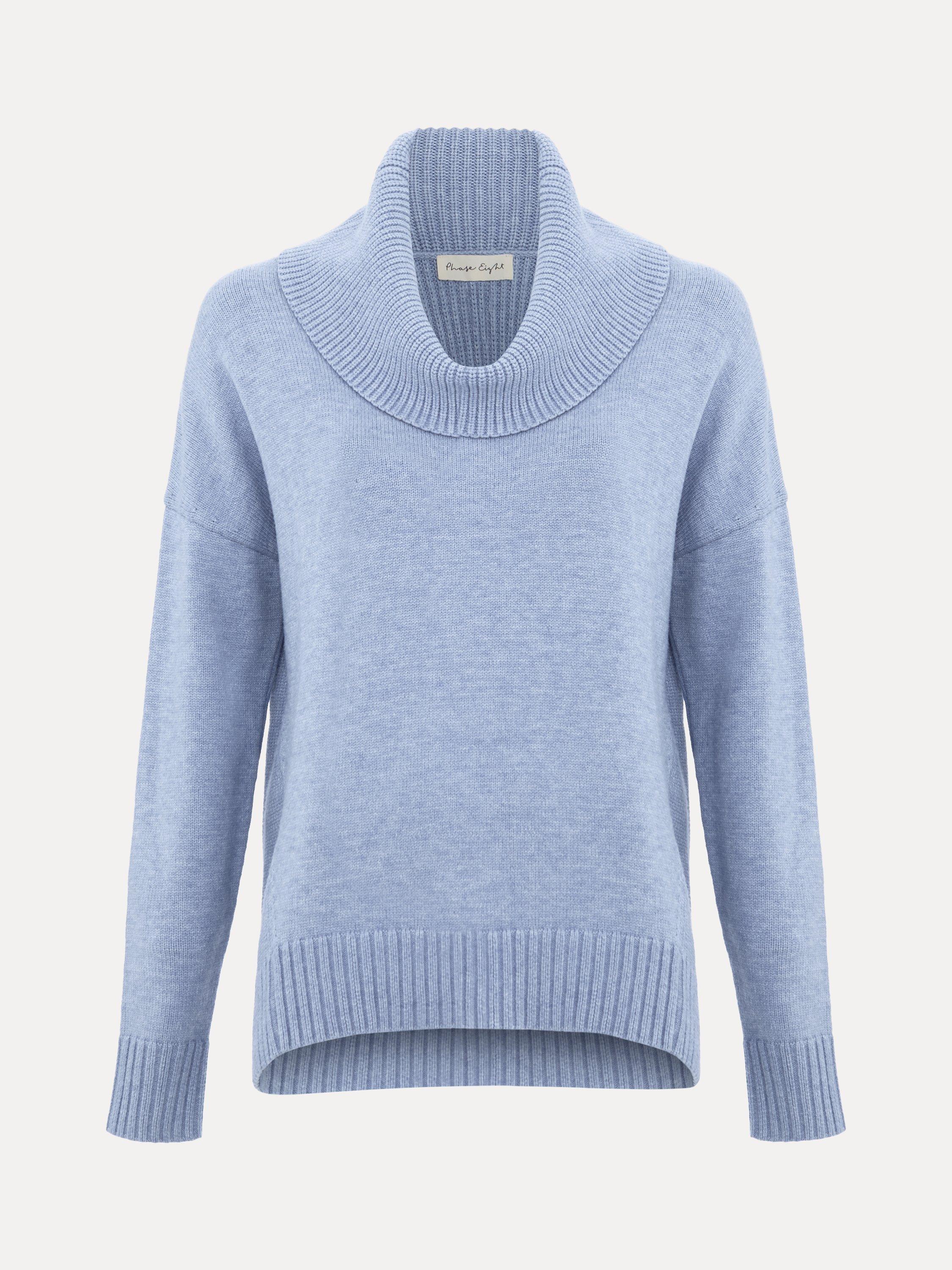 Phase EightDara Chunky Cowl Neck Jumper, Light Blue